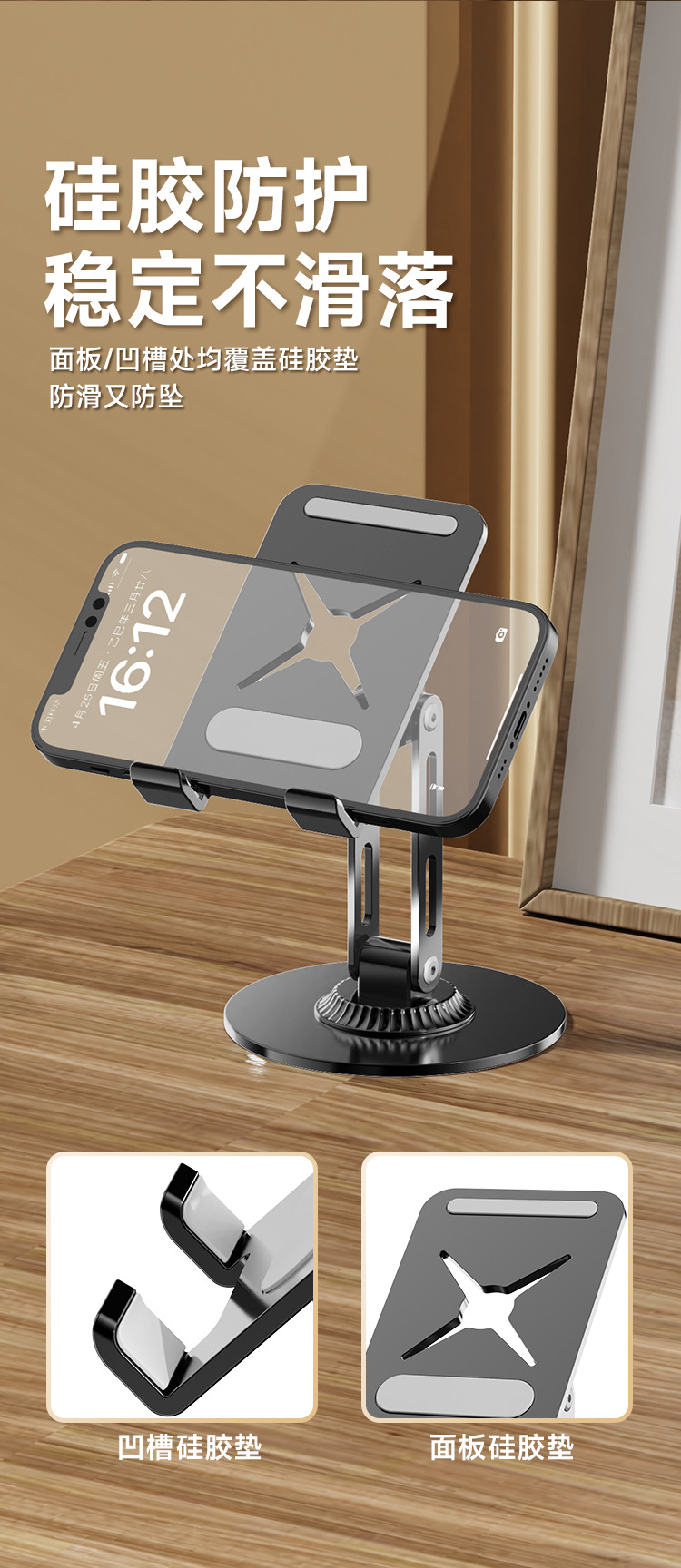 強化版 270g - シルバー [回転可能 + 二つ折り + 携帯電話やタブレット用ユニバーサル]