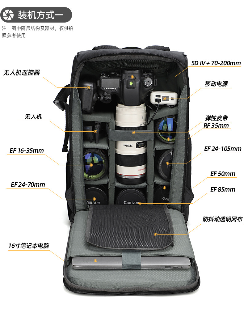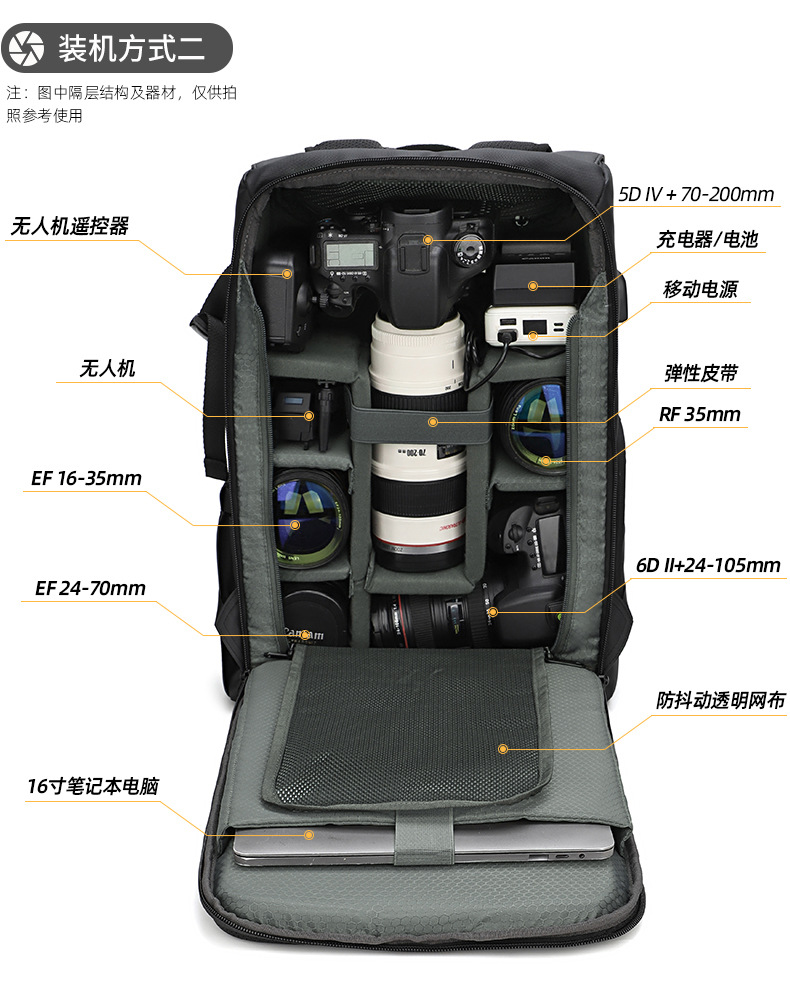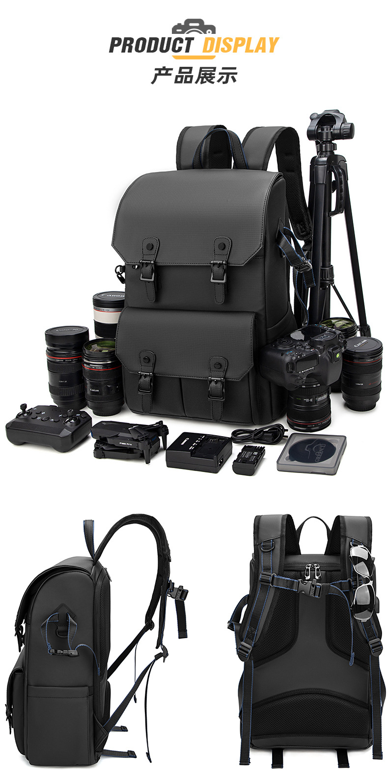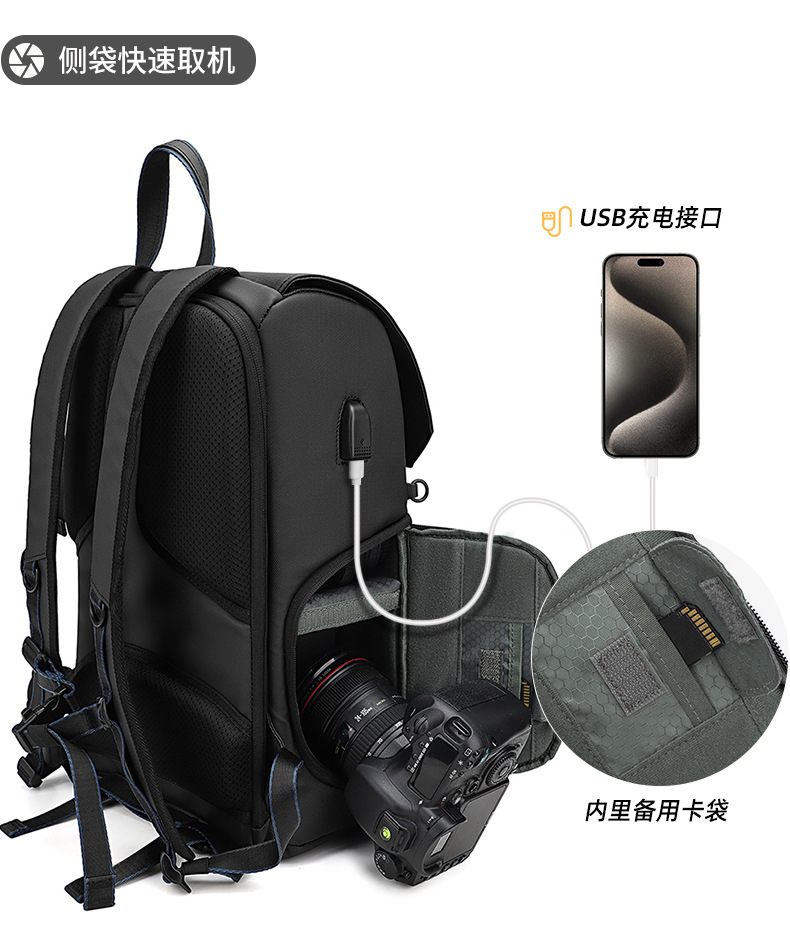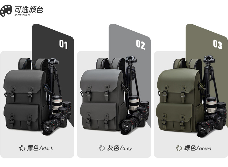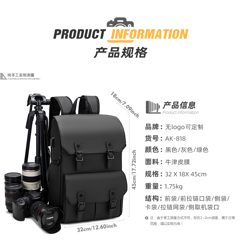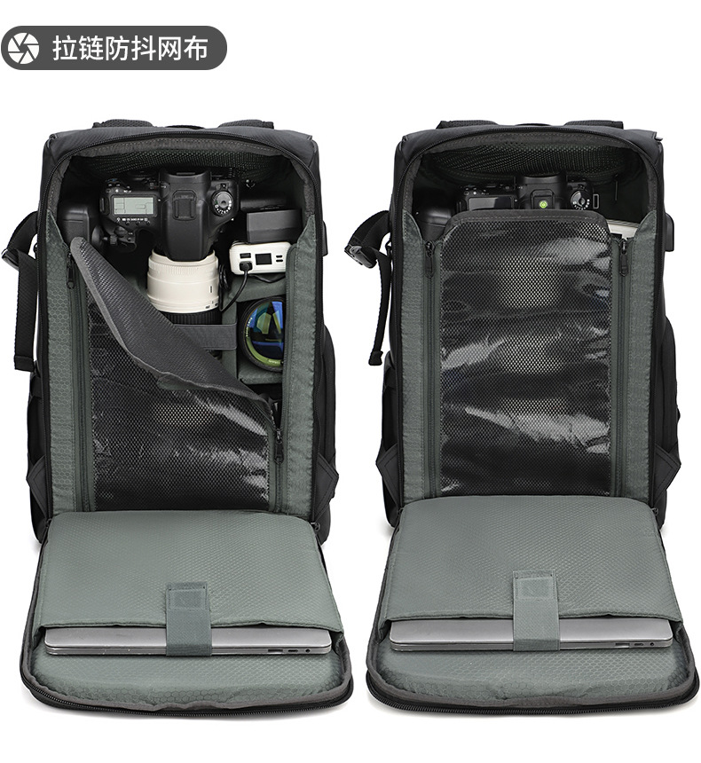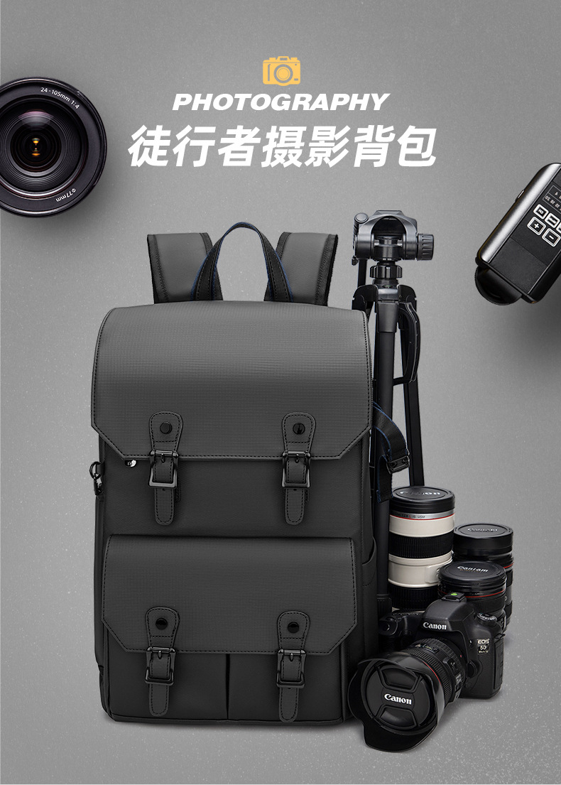 耐摩耗性のダブルショルダーカメラバッグ、防水、盗難防止、大容量、レザーフィルム素材、ドローンバッグ、オックスフォード生地のダブルショルダー写真撮影用バックパック