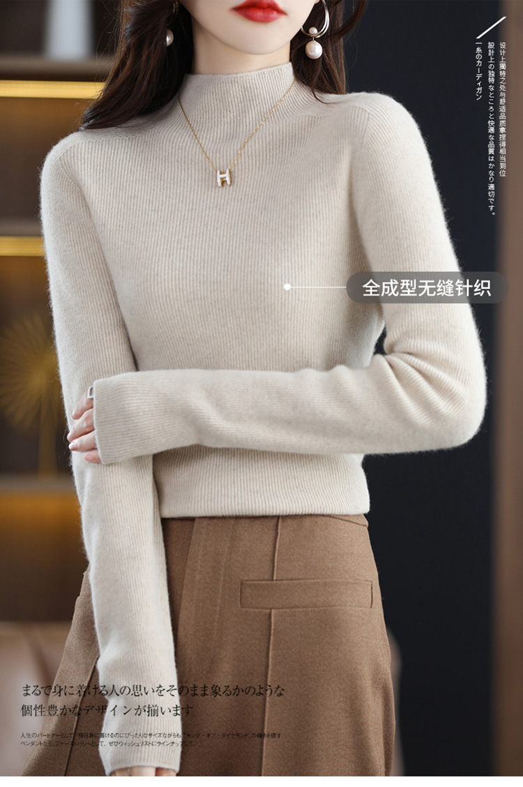 一線の成衣シームレス半高襟ウールセーター女性プルオーバーセーター
