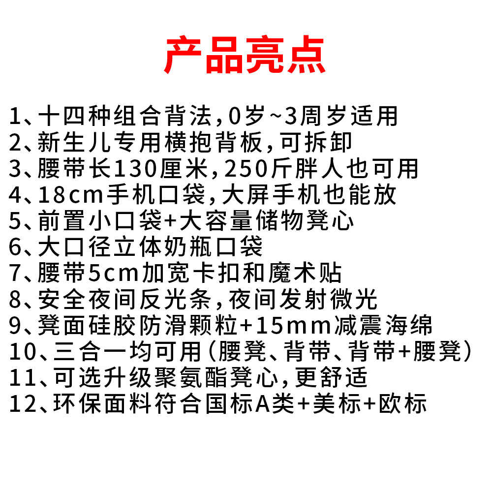 国境を越えた現貨販売のベビーキャリア、新生児を横抱き、前抱き、腰掛け、座りかせ、収納機能付き、多機能、メーカー直販