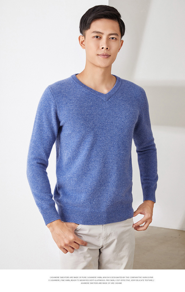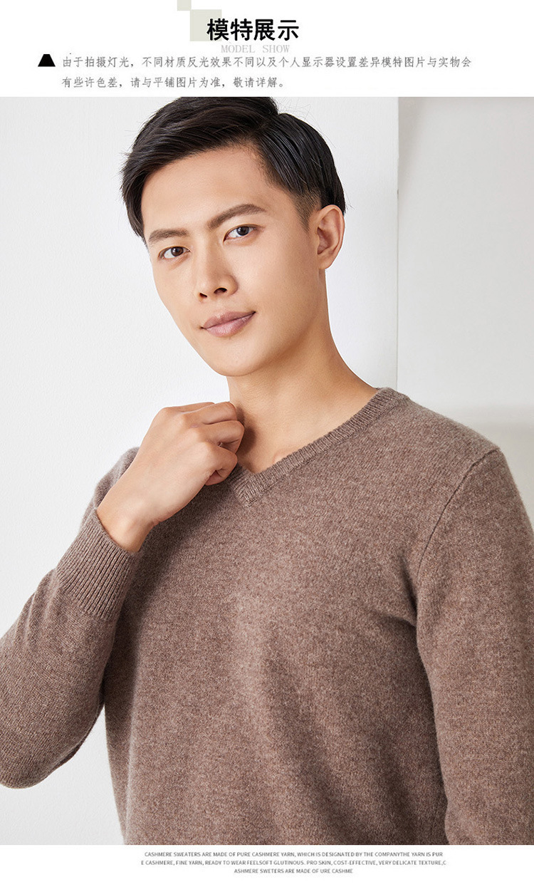 2024新型vネック純色セーター男性ビジネスプルオーバー