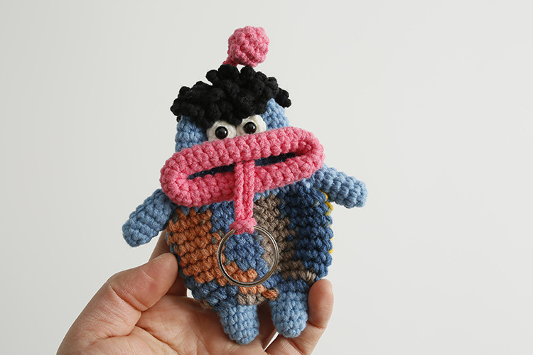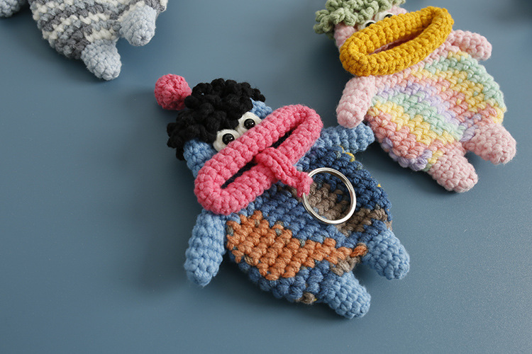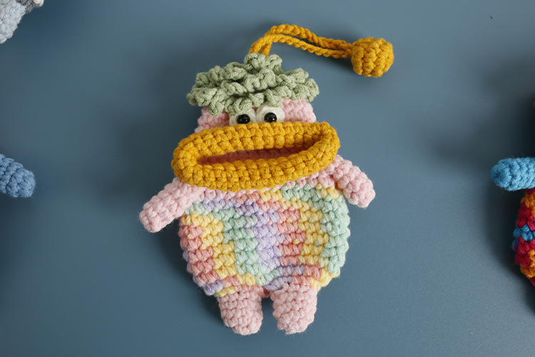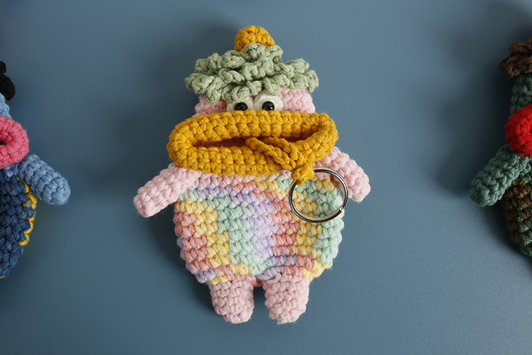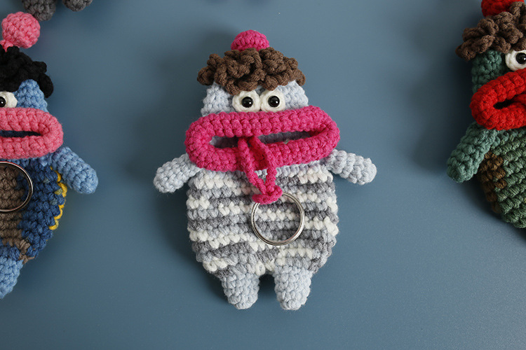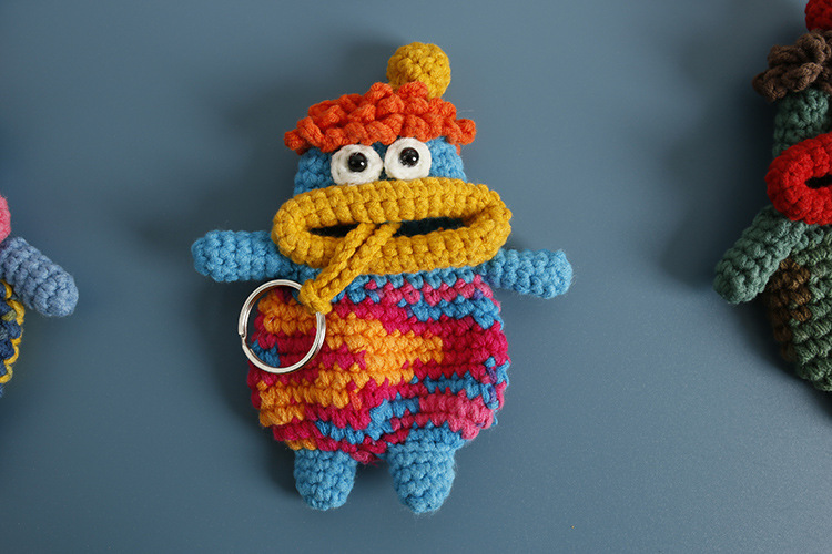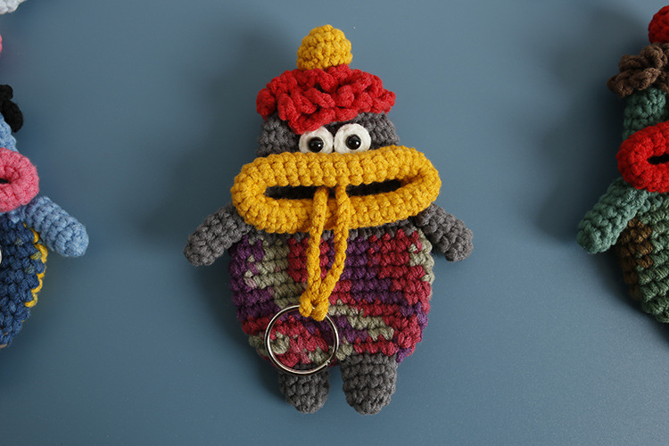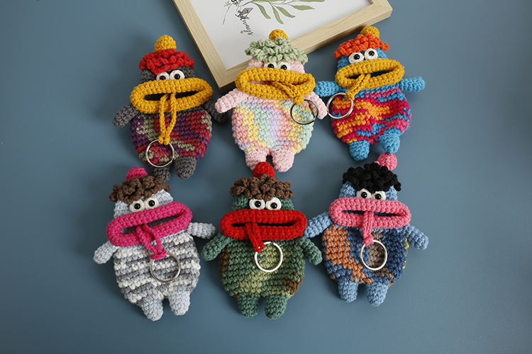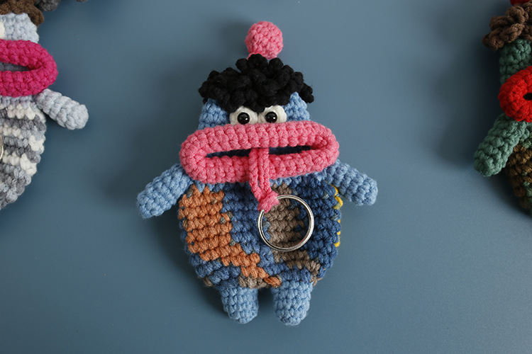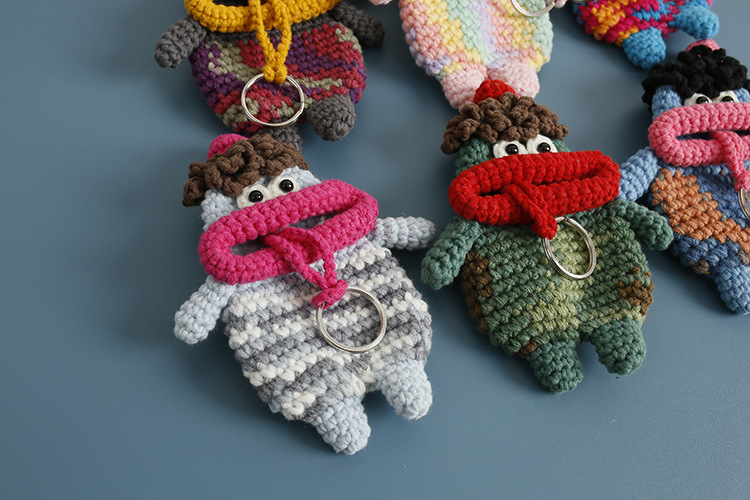 創意的な手編みのおかしなキーホルダーのネットの赤いソーセージの口の毛糸のかぎ針は鍵のカバーのフックの完成品を引き出します。