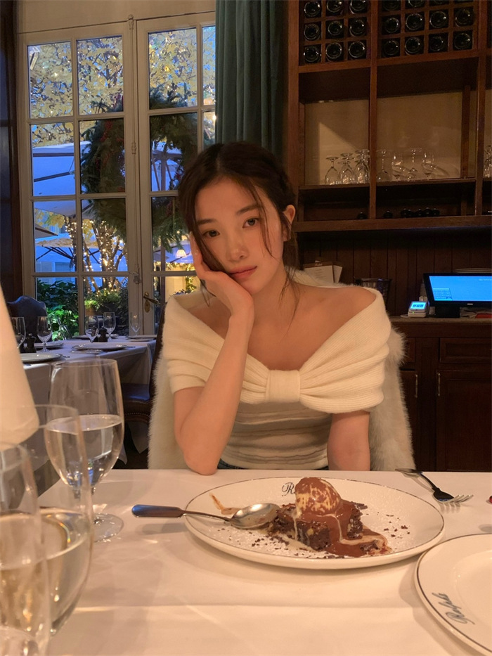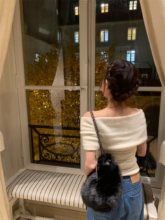 韩国the bar*net 年末约会氛围感 蝴蝶结一字肩 针织衫