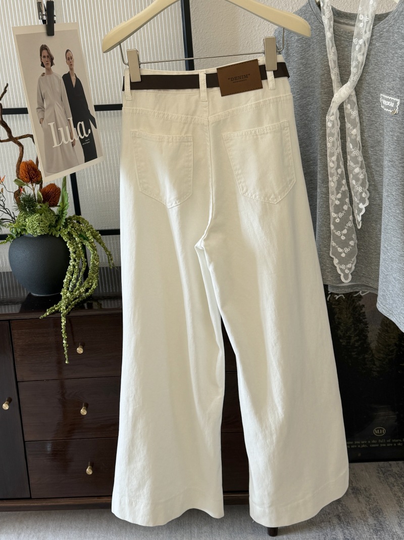 レトロな薄い青の9分のジーパンの女性のゆったりしているストレートなズボンはやせています。