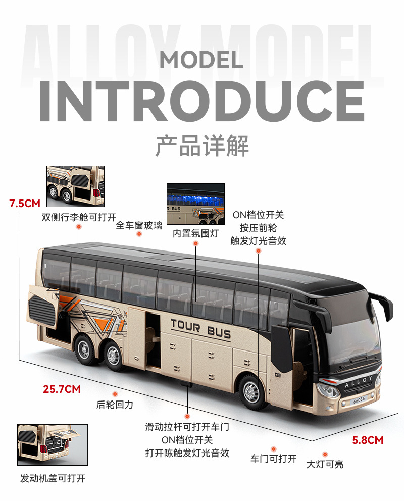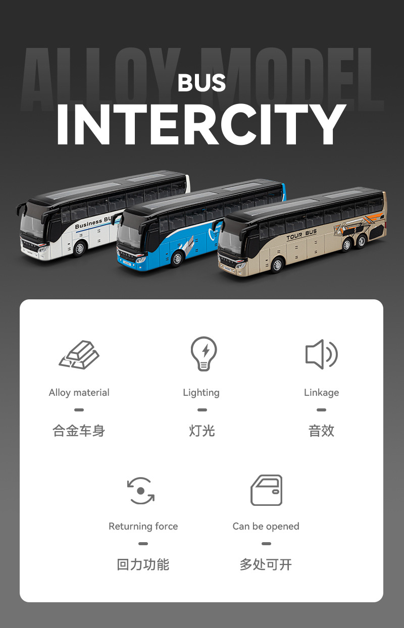 ビジネスバス豪華空港バスシミュレーション合金モデルバスバス玩具少年オープン