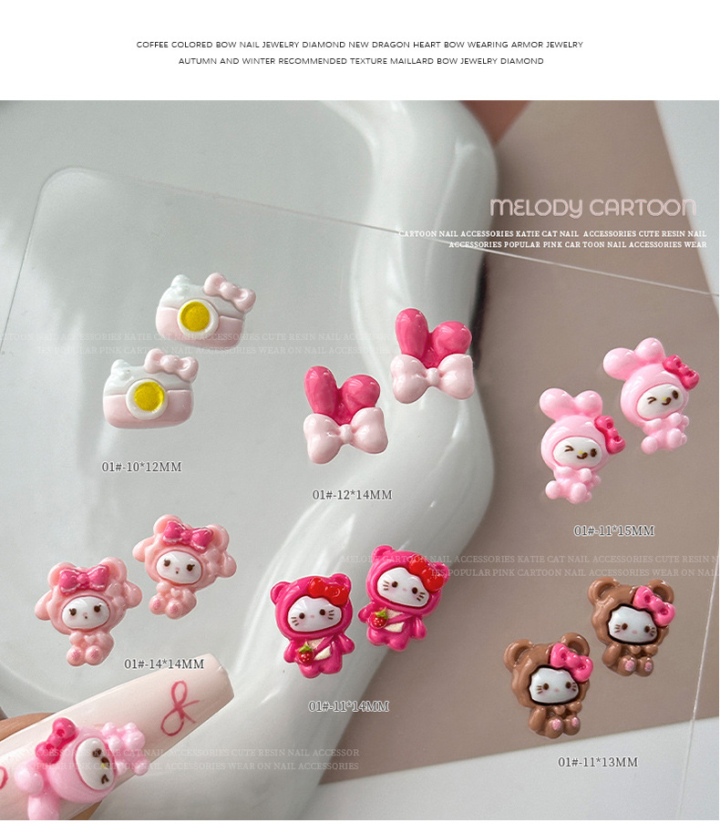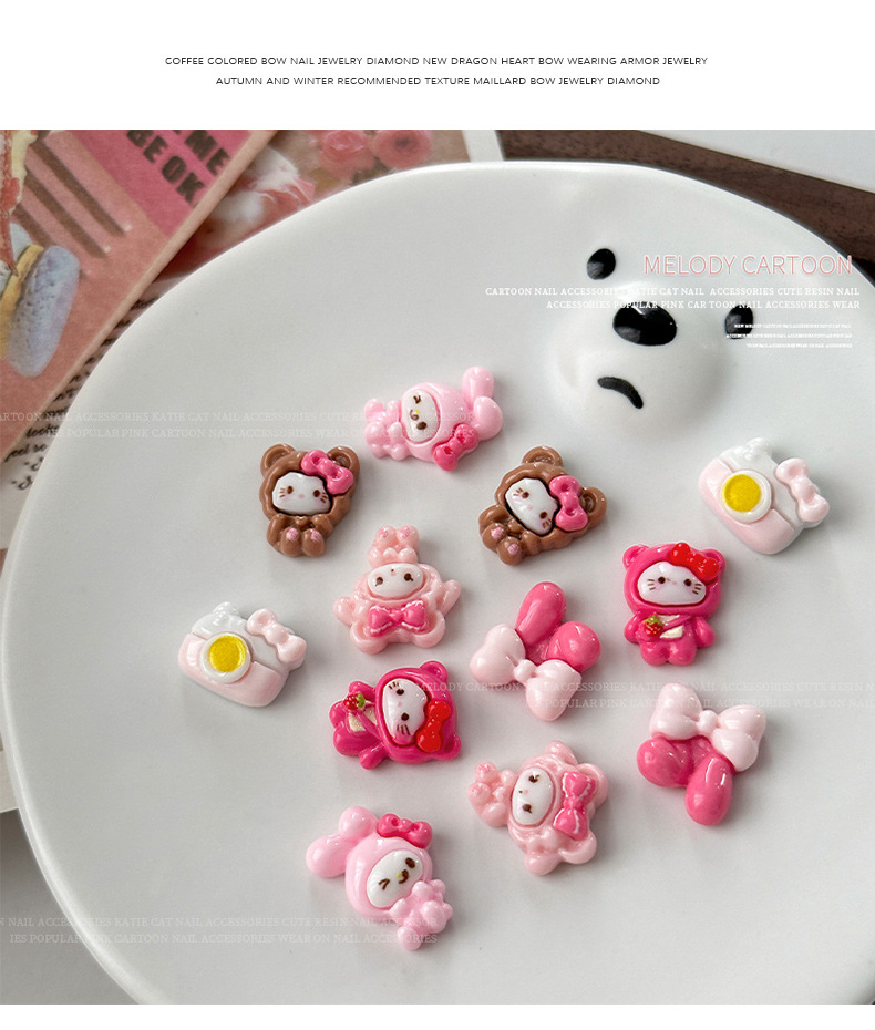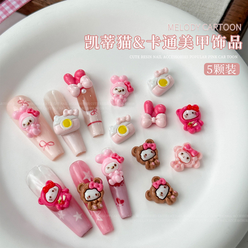 KT & 美楽ティ漫画ネイルアクセサリーかわいい立体熊カメラ美楽ティdiy樹脂着用甲アクセサリー