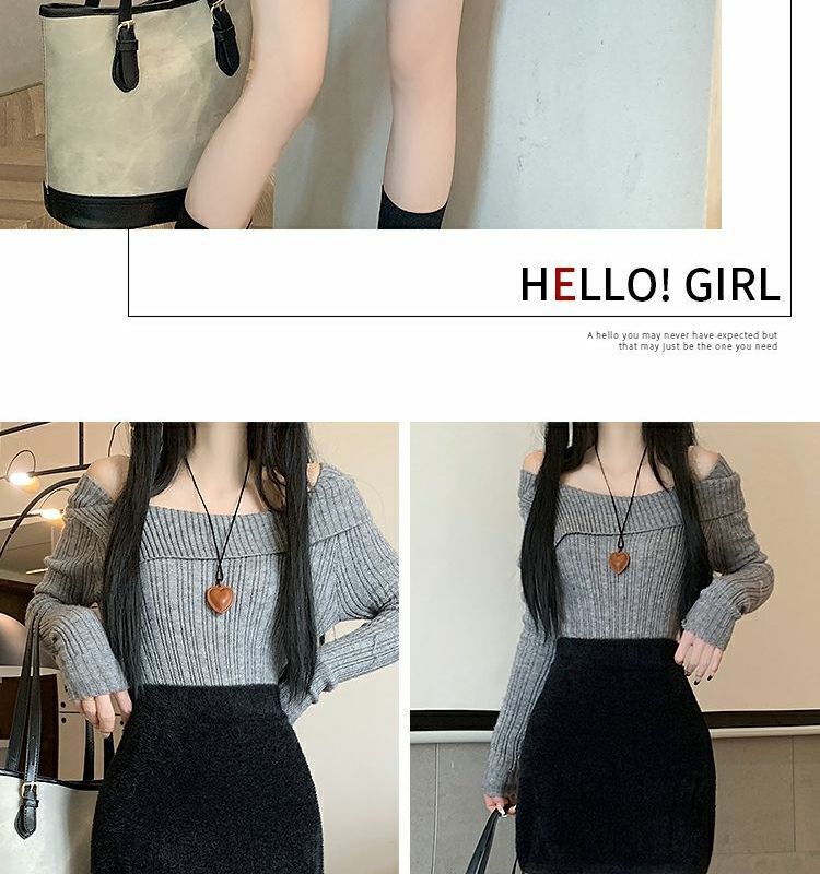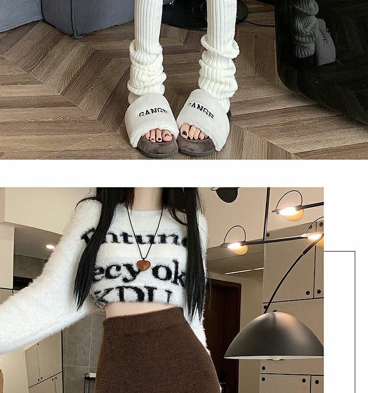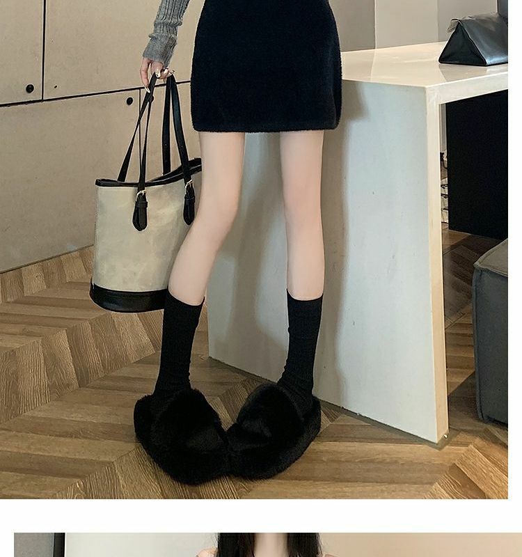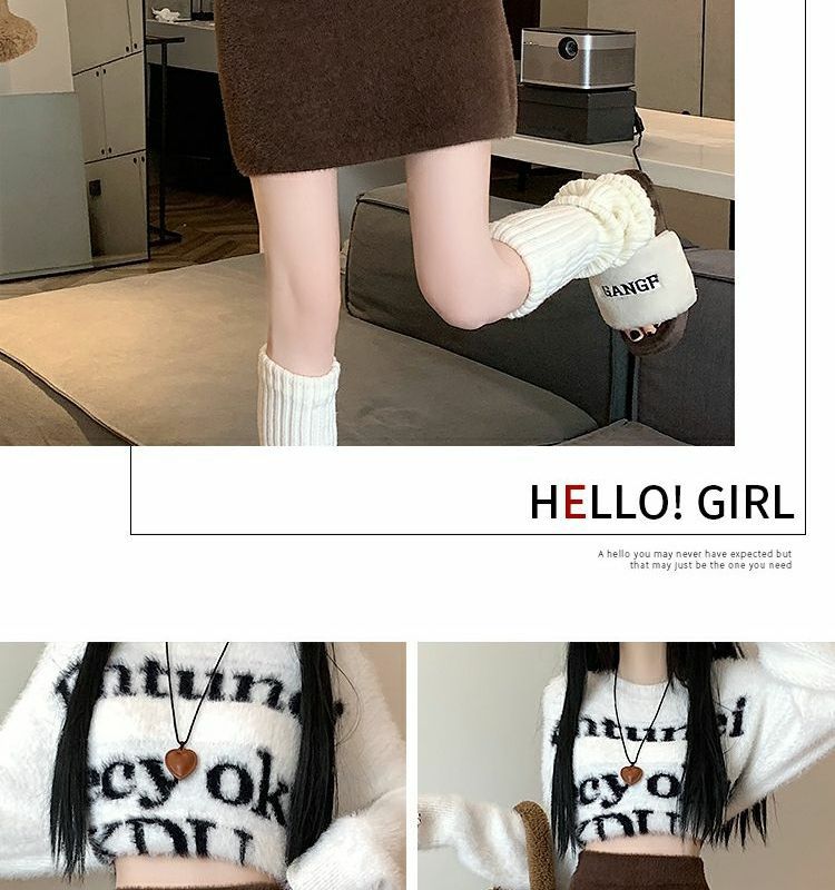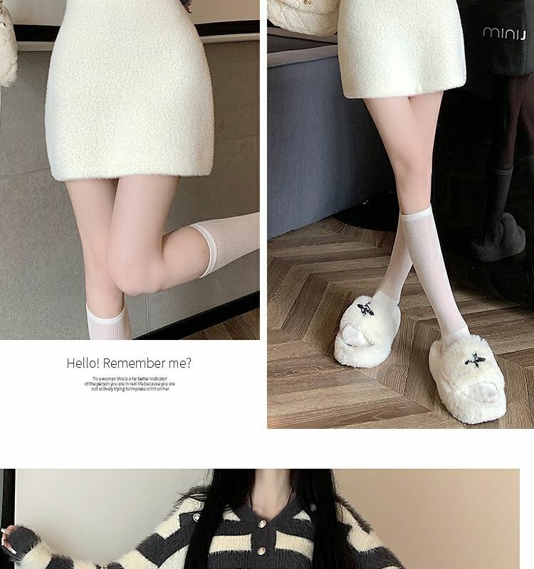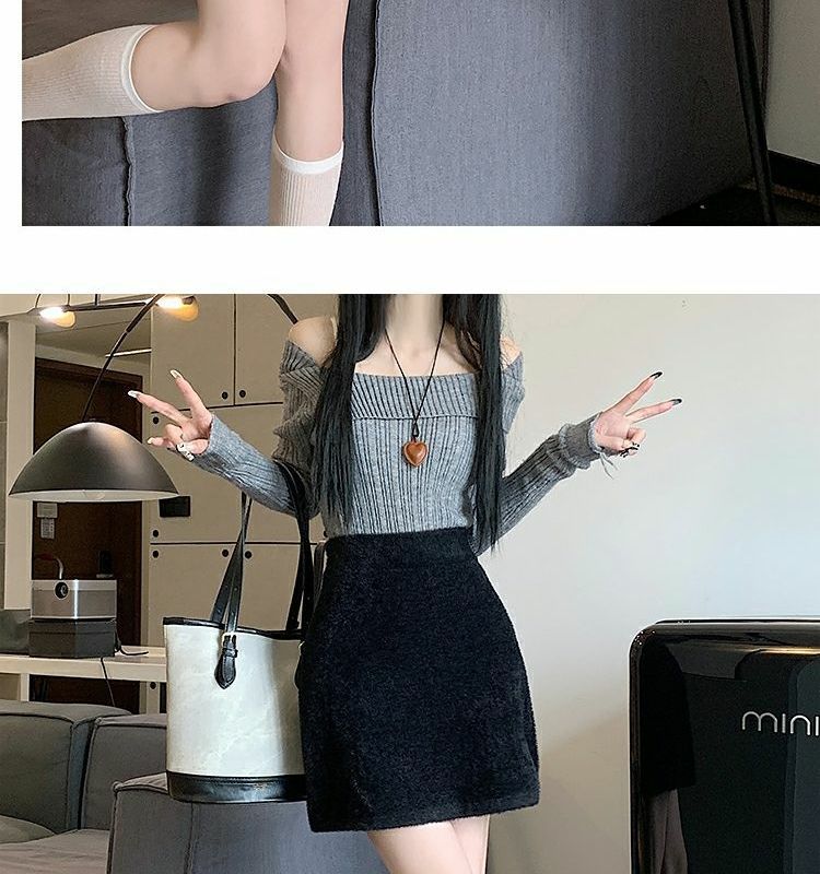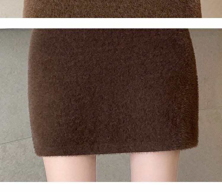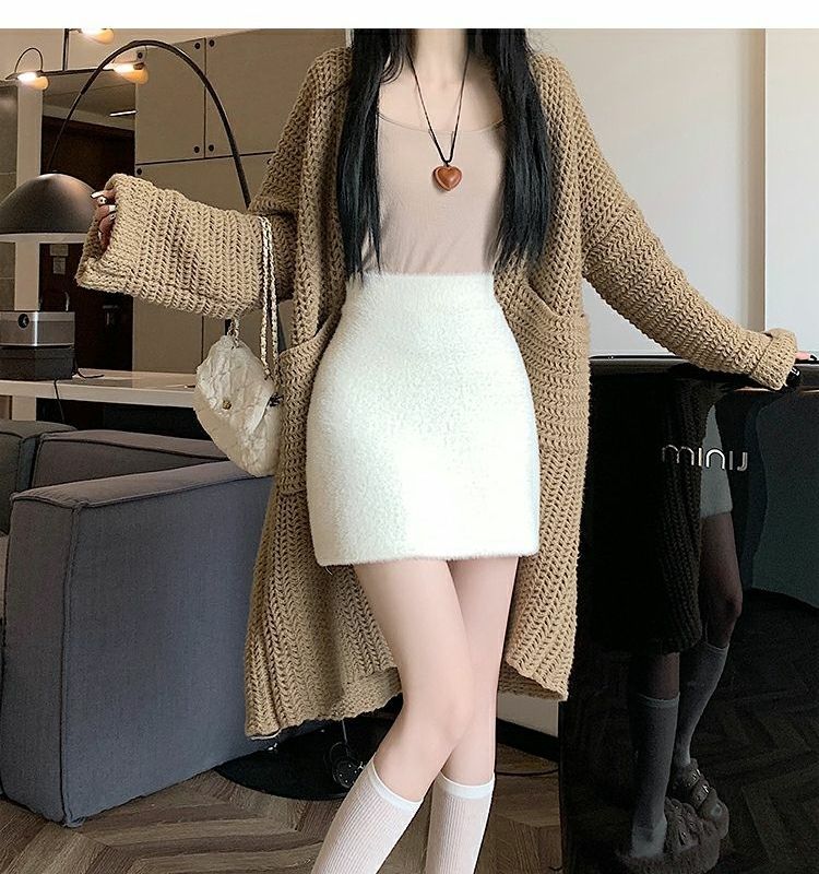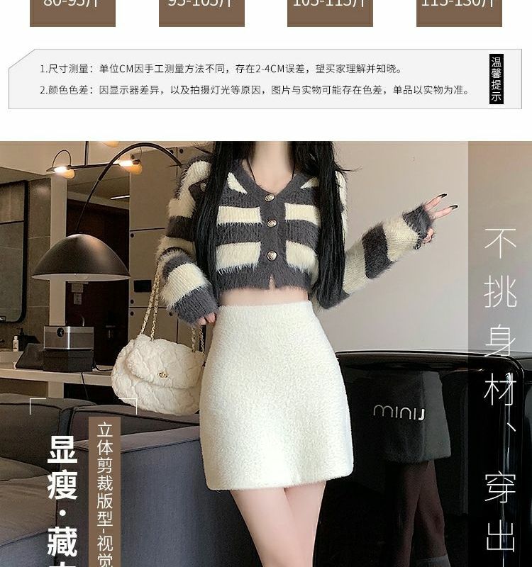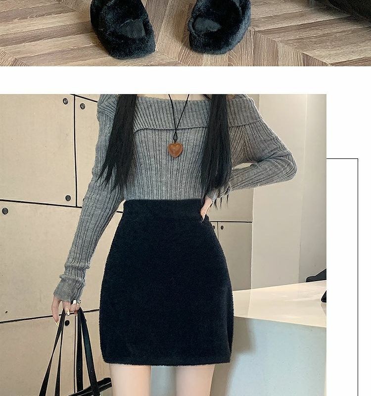冬の白いスカートの半身のスカートの女性の秋冬の2024の新型の高い腰の包みの尻のニットのスカートの小さい背のぬいぐるみのスカート