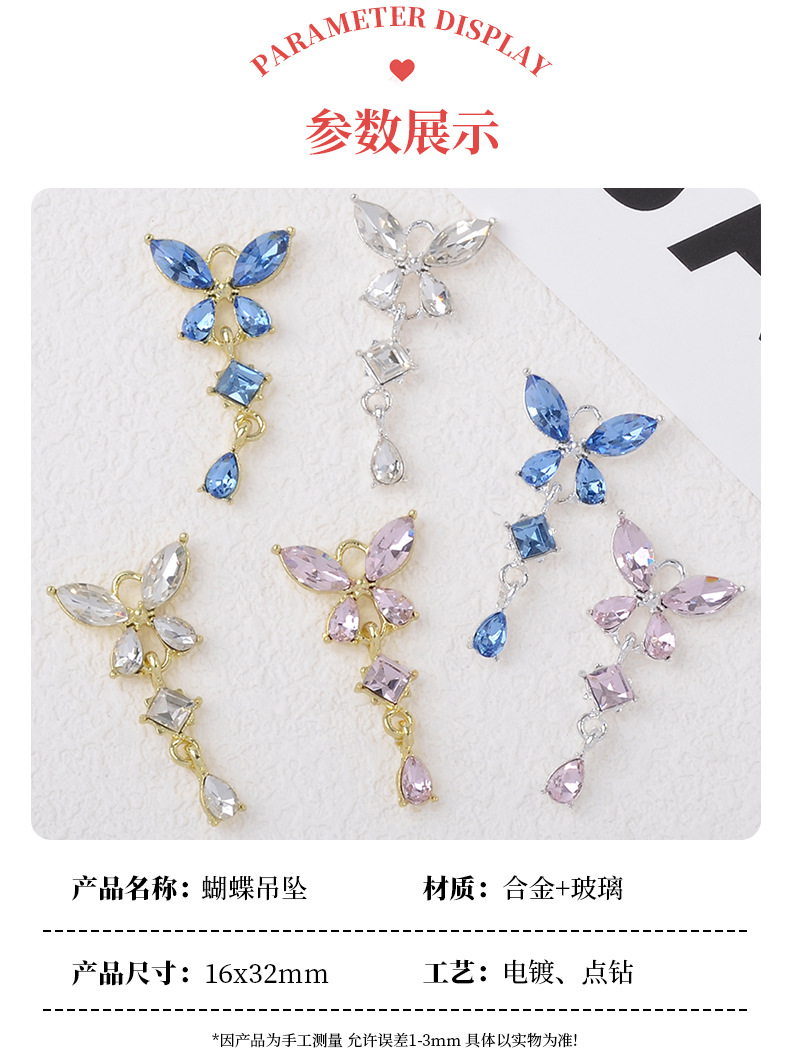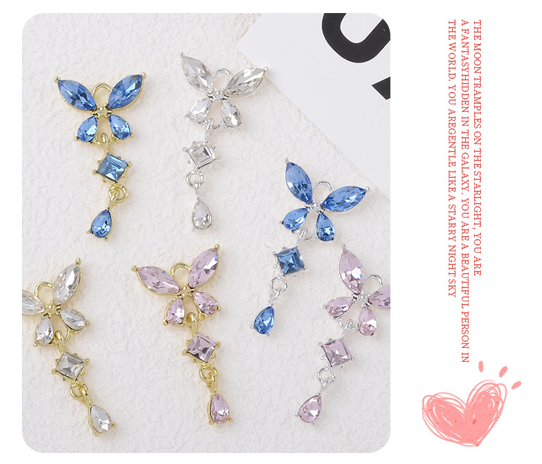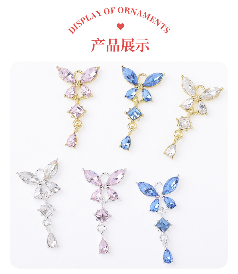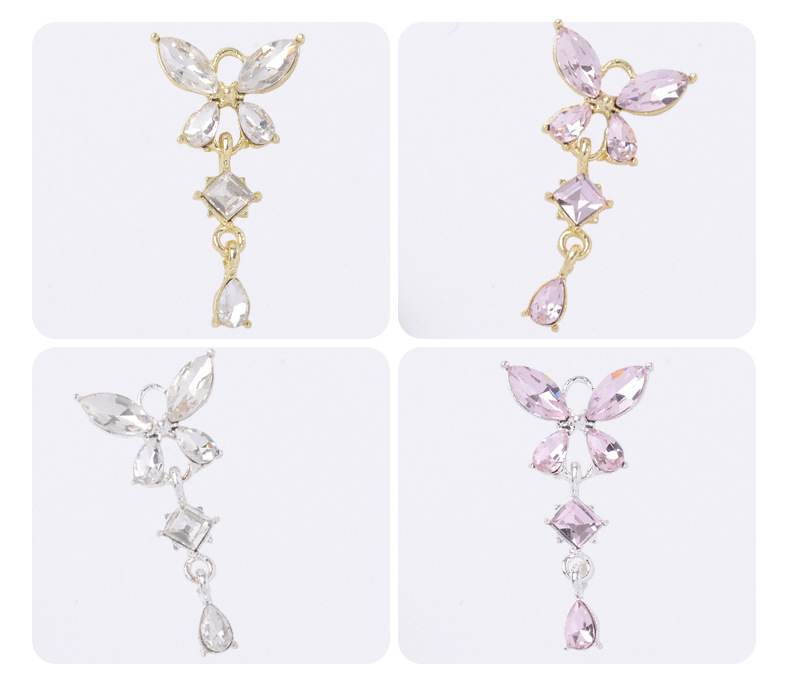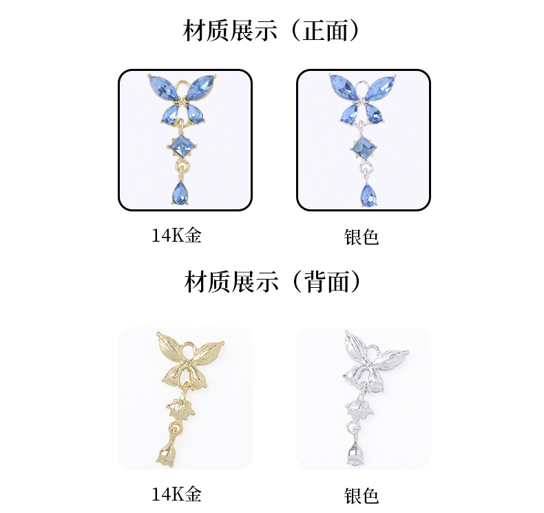 漢服古風髪飾りジルコン四弁大蝶水滴ペンダントdiyブレスレットイヤリングヘアピンアクセサリー部品