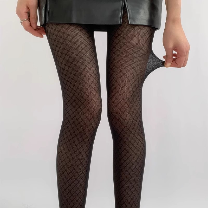 黒の細い靴下の黒い糸のダイヤモンドの格子のレギンスの春と秋の美脚の薄いタイプのストッキングの女性のストッキングはやせてセクシーです。