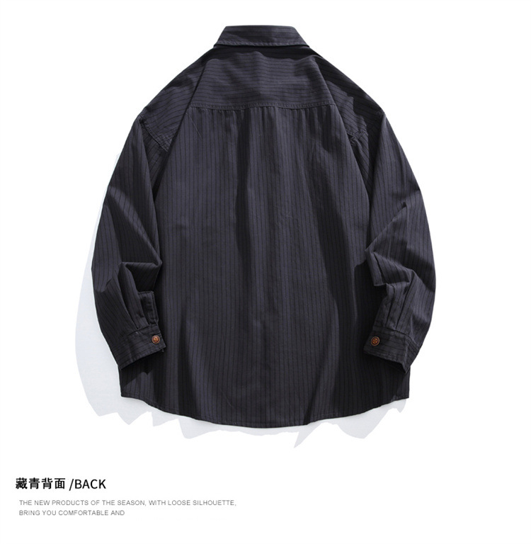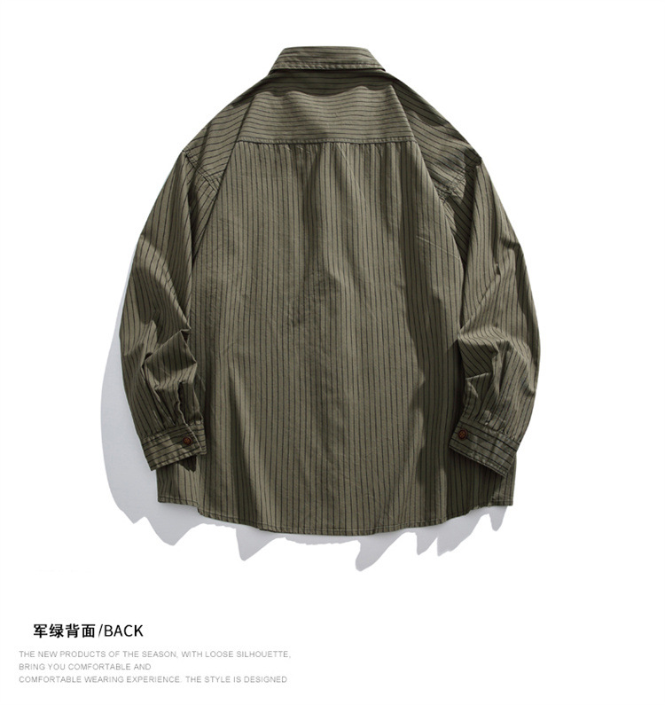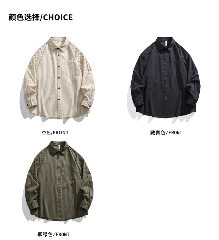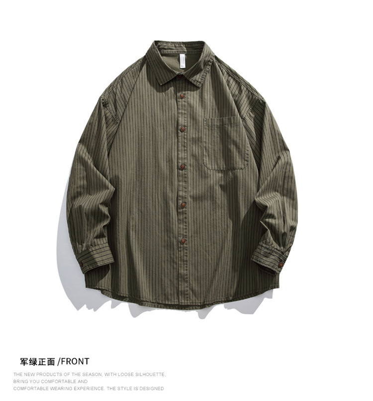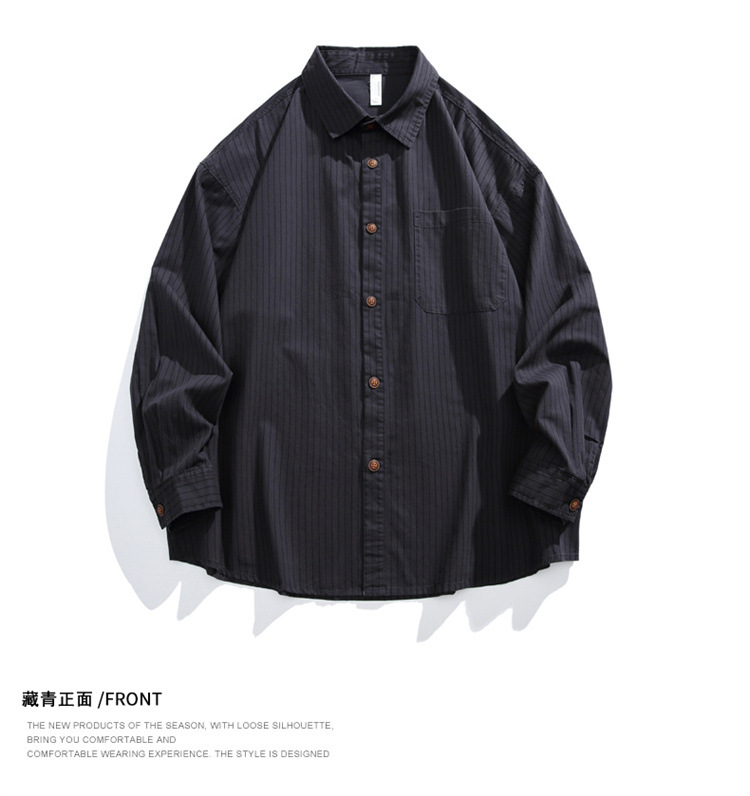 2025春秋新作 純綿ウォッシュドストライプシャツ メンズ ゆったりカジュアル長袖シャツ 工場直販