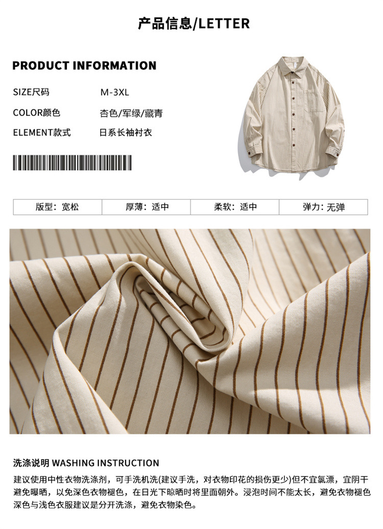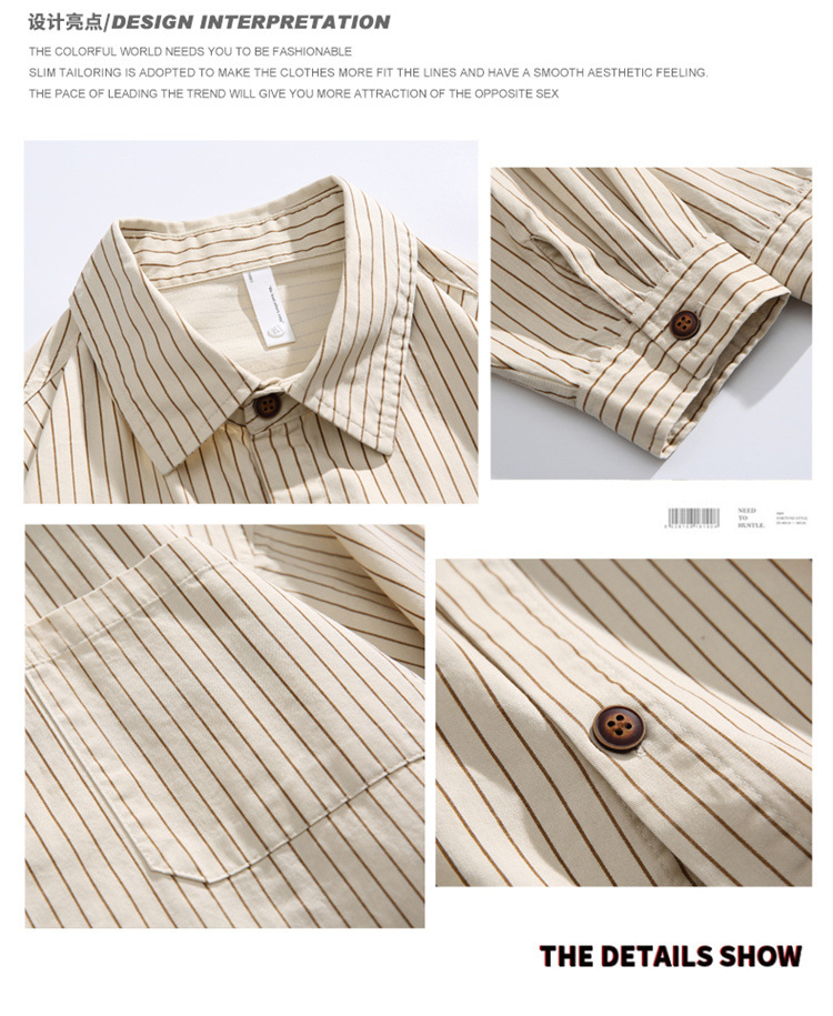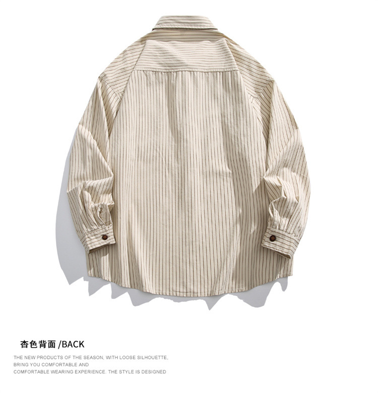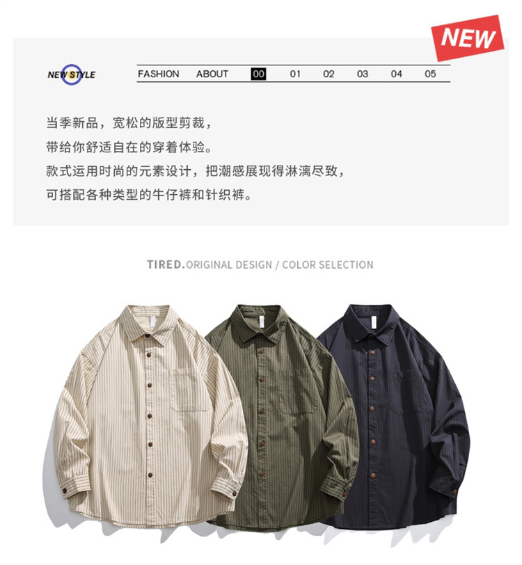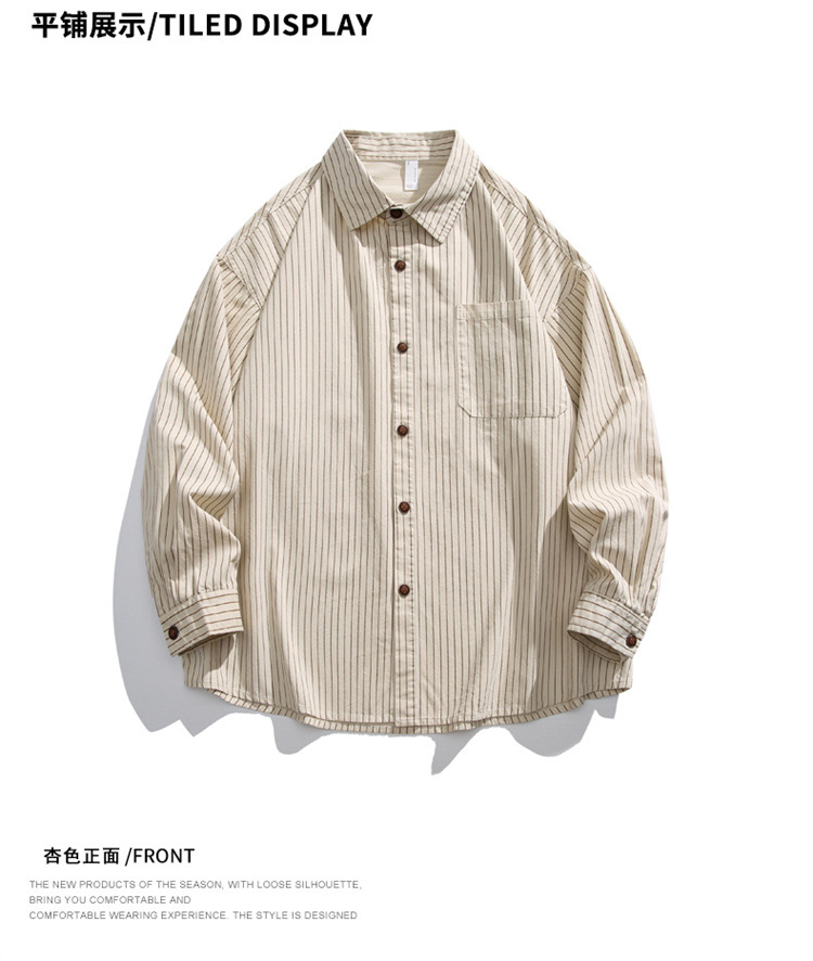 2025春秋新作 純綿ウォッシュドストライプシャツ メンズ ゆったりカジュアル長袖シャツ 工場直販