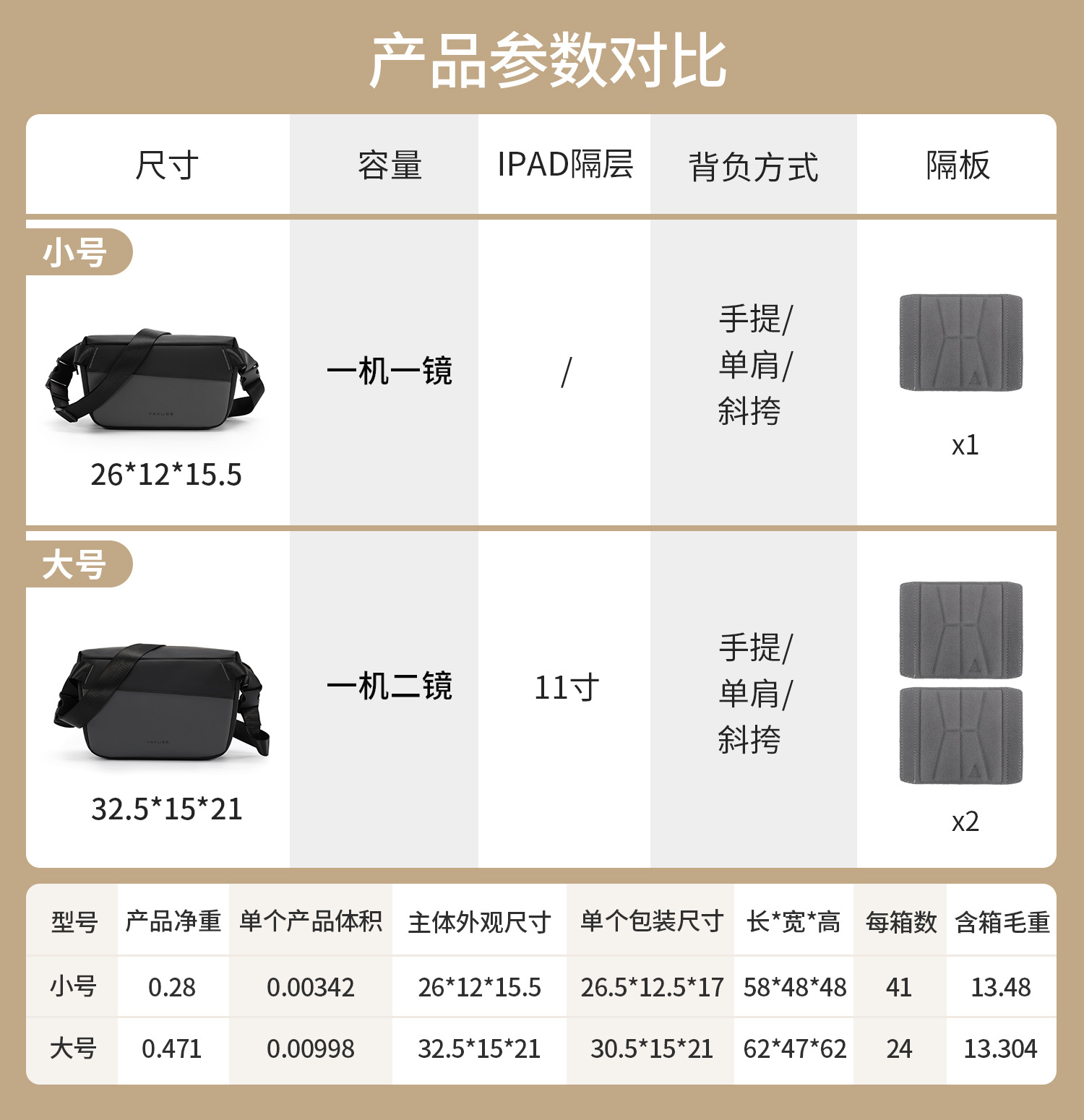 Sサイズ(カメラ1台、ミラー1枚/カメラ1台+防水生地+開閉式ショルダーストラップ+1パックで多用途に使えます),Lサイズ(1台のマシン、2つのミラー+防水生地+開閉可能なショルダーストラップ+多目的バッグ+ 11inch個のiPadコンパートメント)