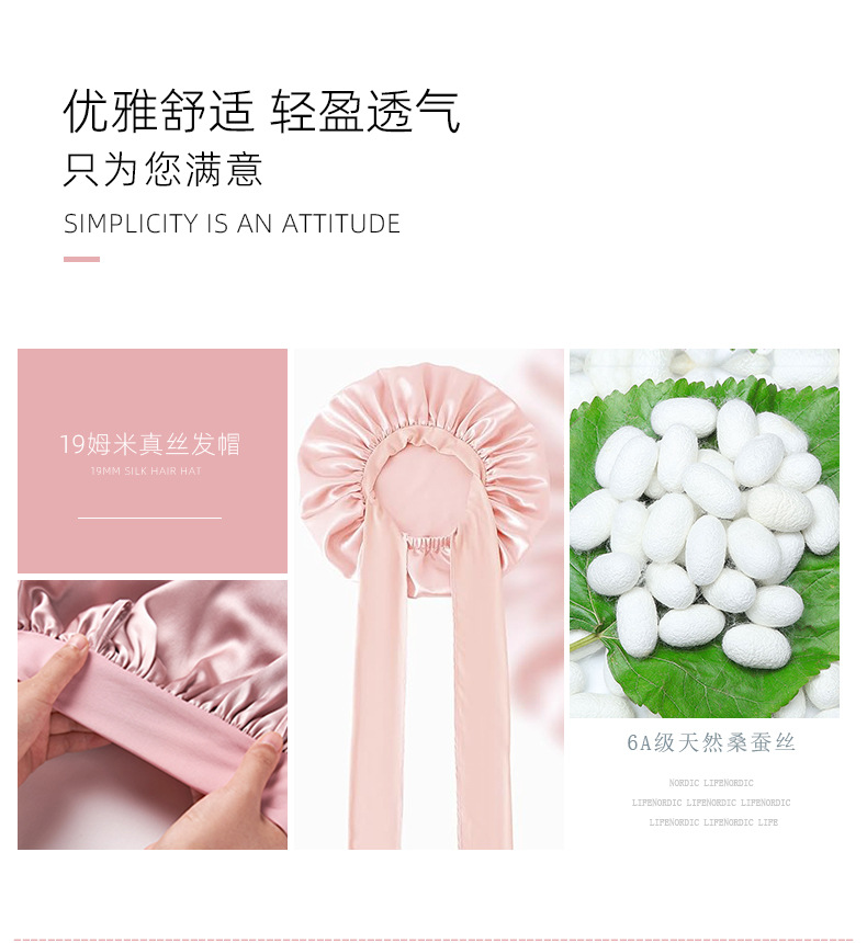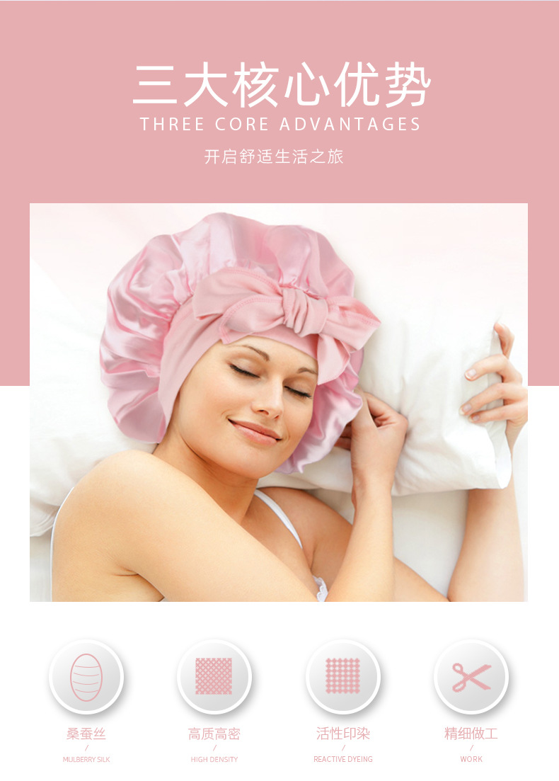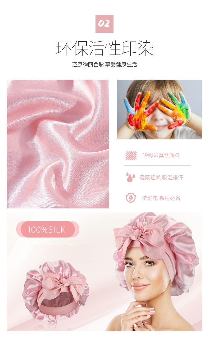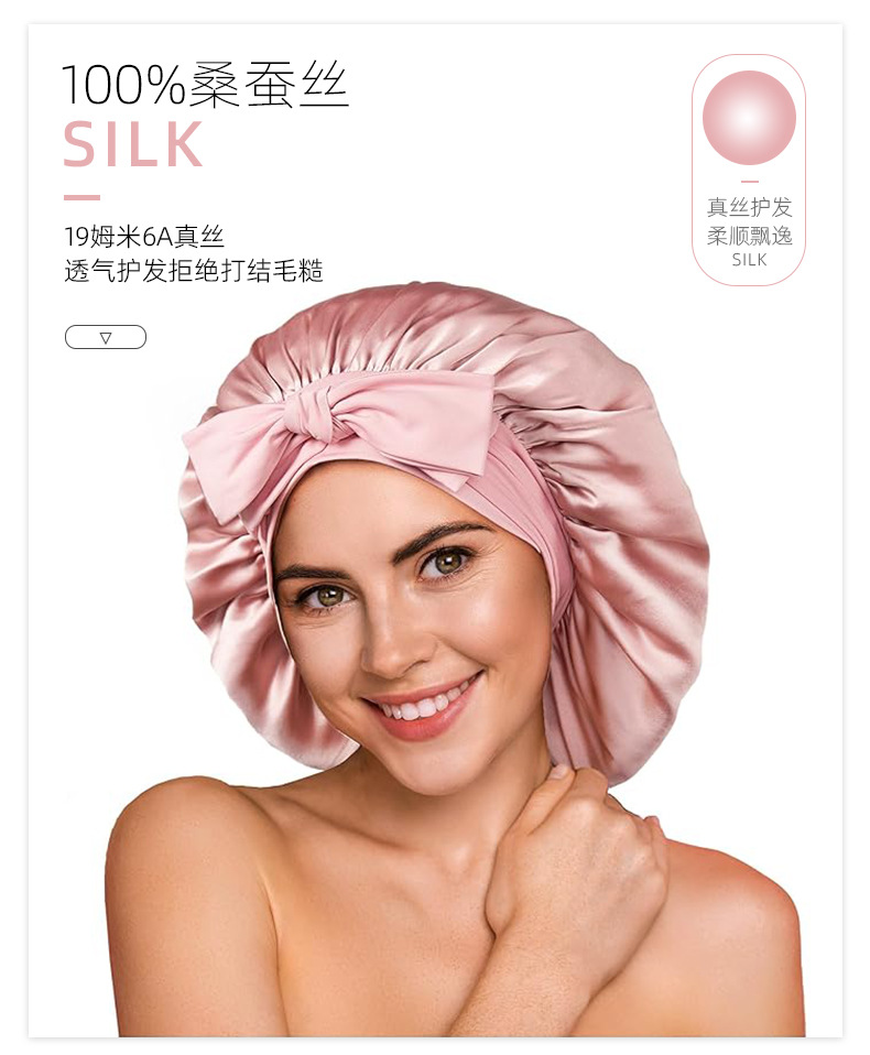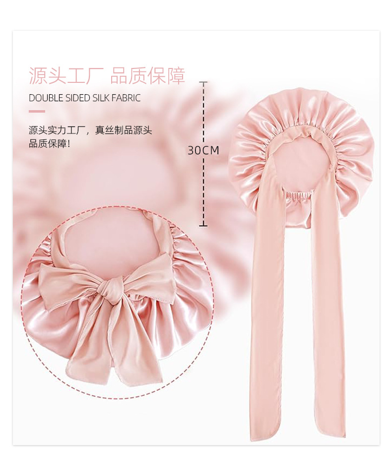 シンプルなマルベリーシルククレープサテンヘアケアつば広リボン調節可能な弾性大型シルクナイトキャップ女性の新しい帽子