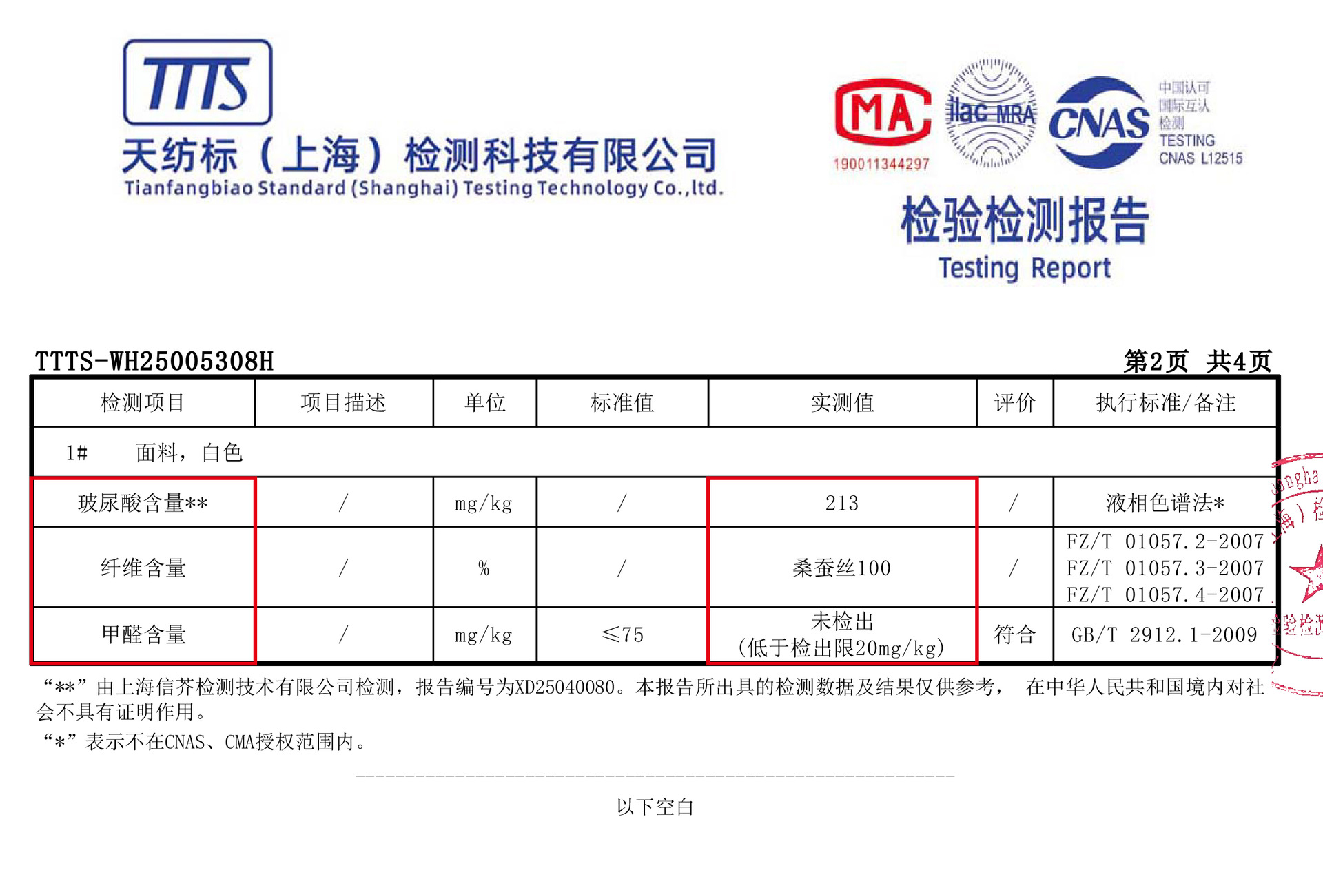 主な生地成分の含有量