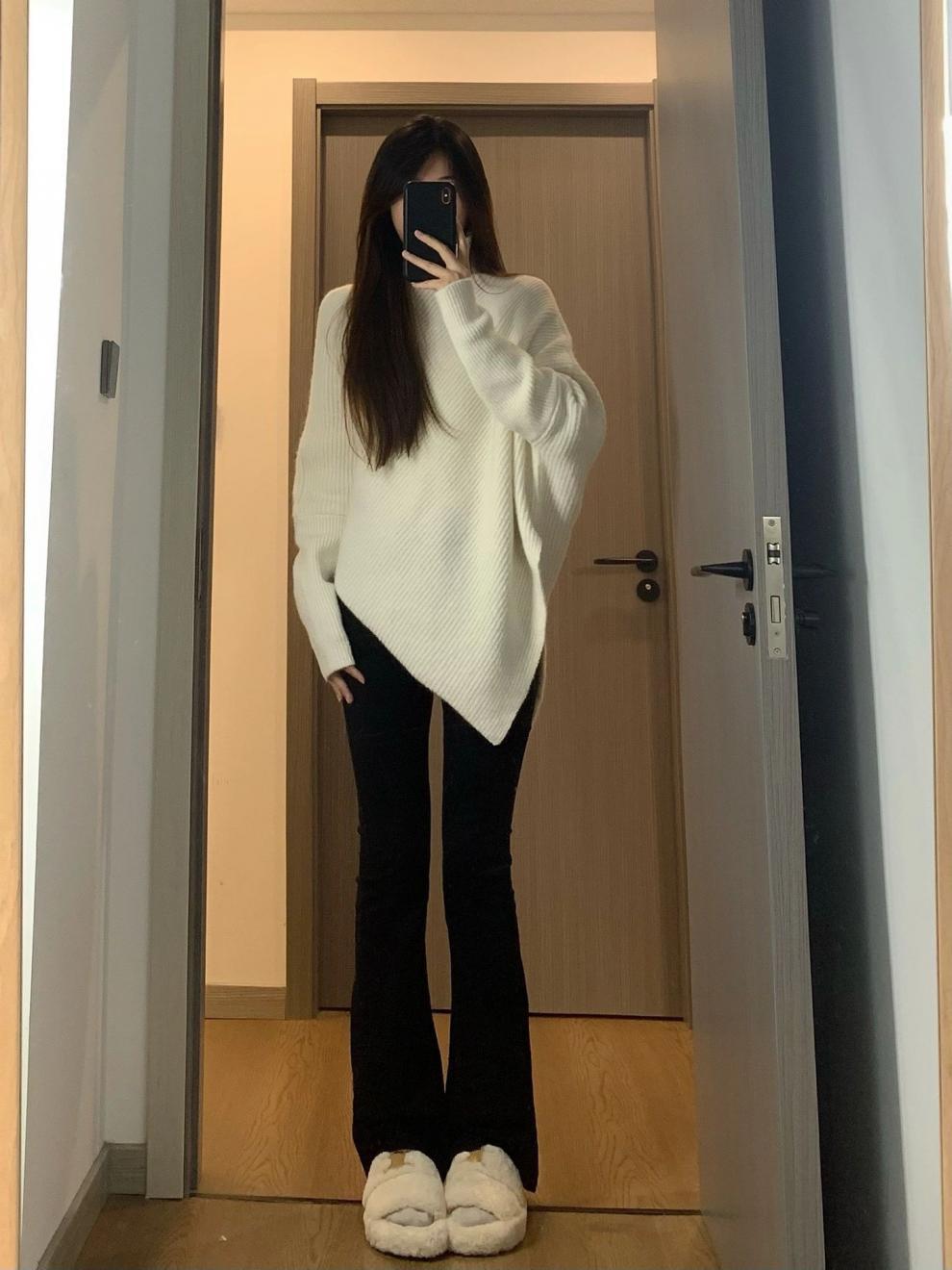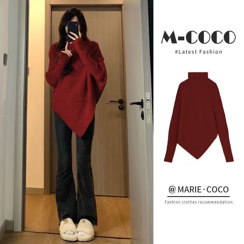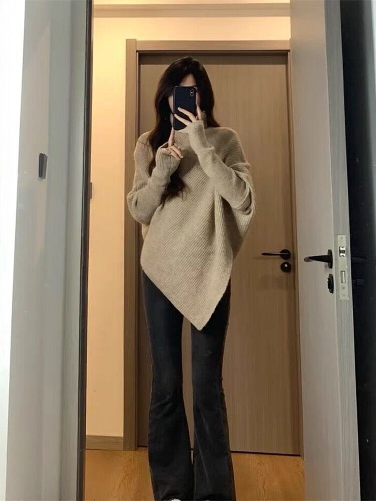 怠惰な風の不規則な高襟セーター2点セット春秋冬高級感塩系軽熟気質ミルク系着