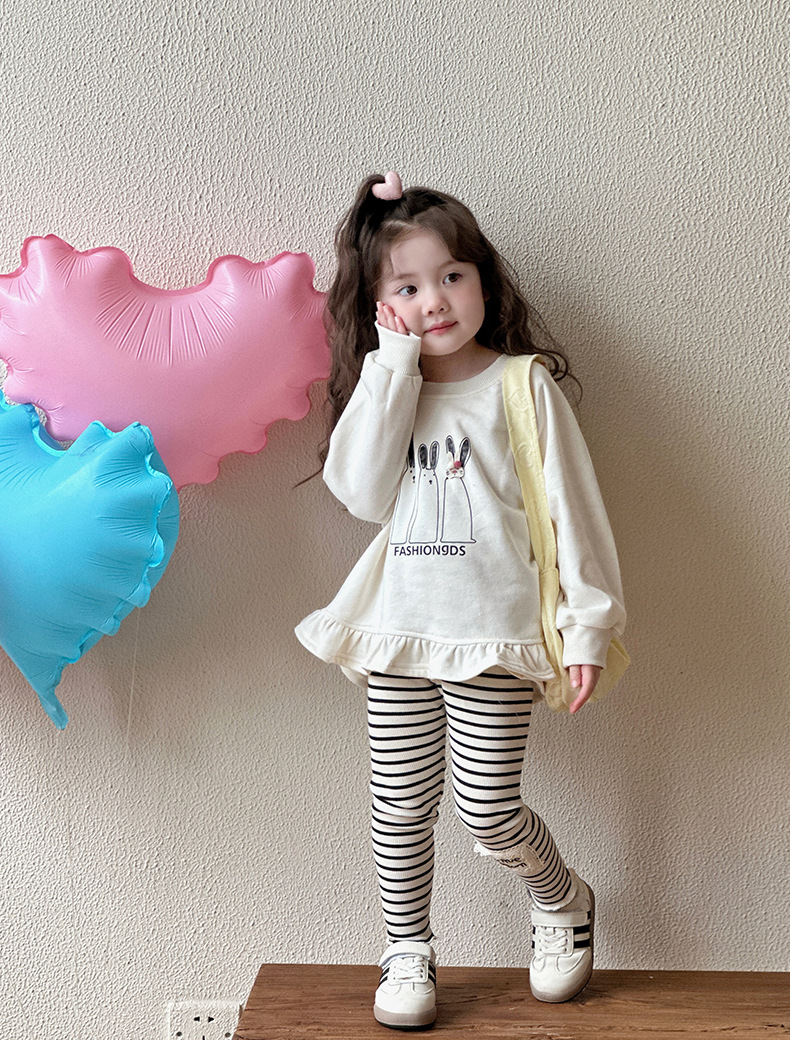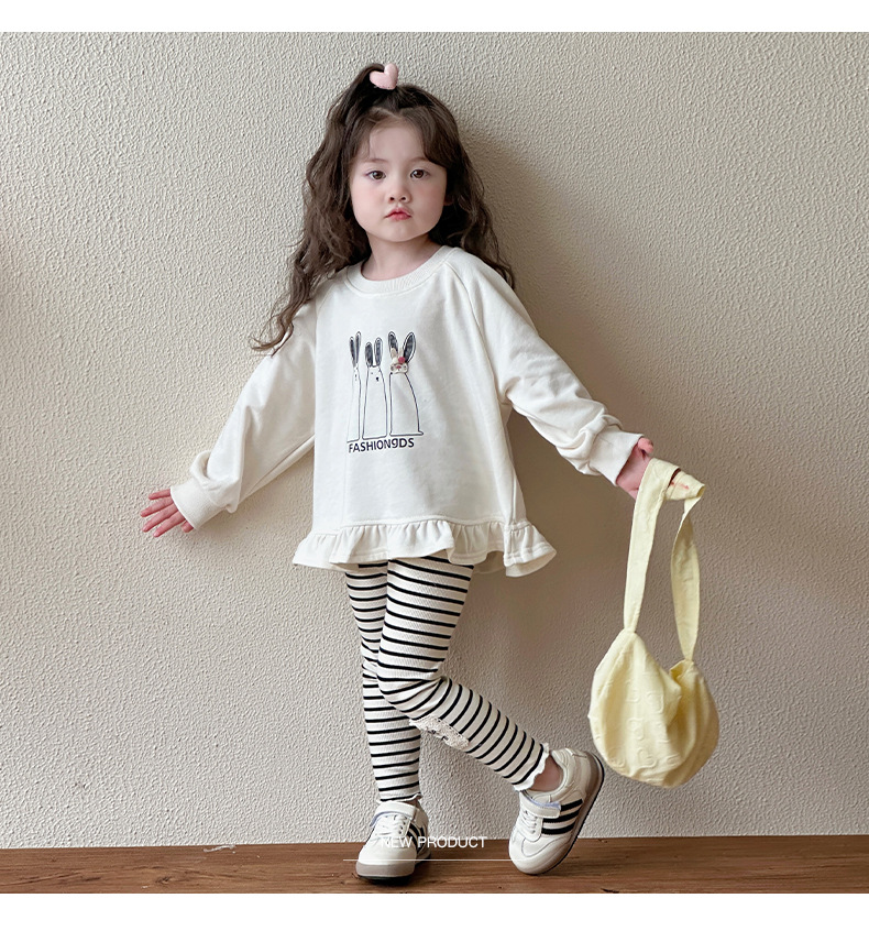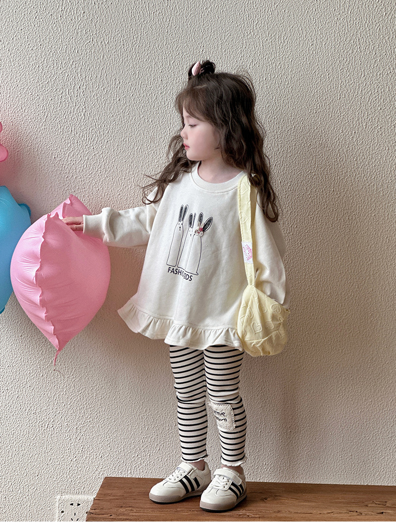 オフホワイトのスウェットシャツ,ストライプレギンス