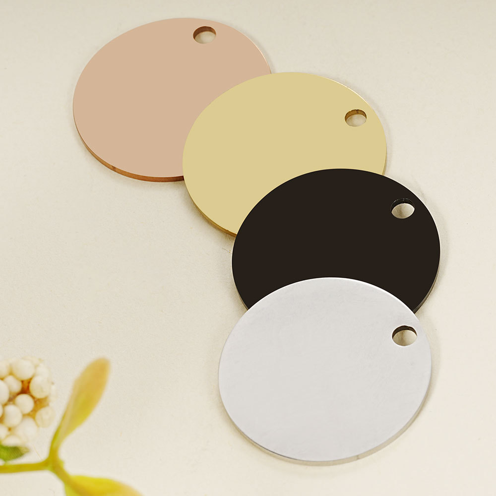 国境を越えた欧米のステンレスの円形の犬の札は字のペットの札の電気めっきのペンダントの猫の札のキーホルダーの部品をなくします。