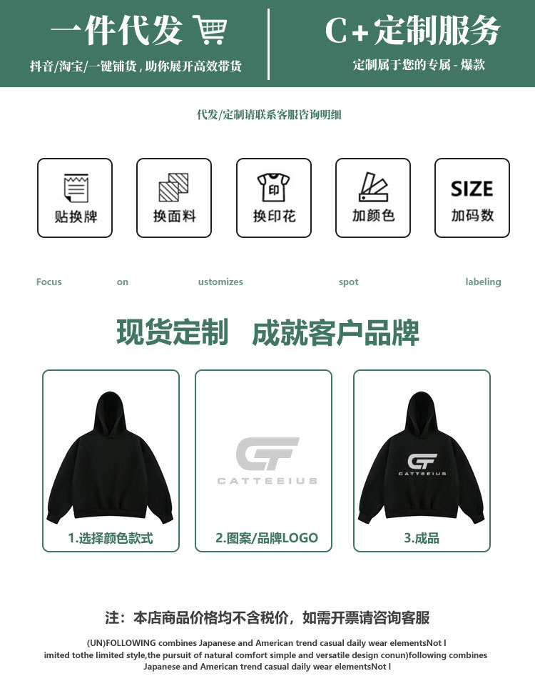 CATTEE新モデル420g重ポンドアメリカフード付きパーカー男性春と秋のcleanfitシルエットフードコート
