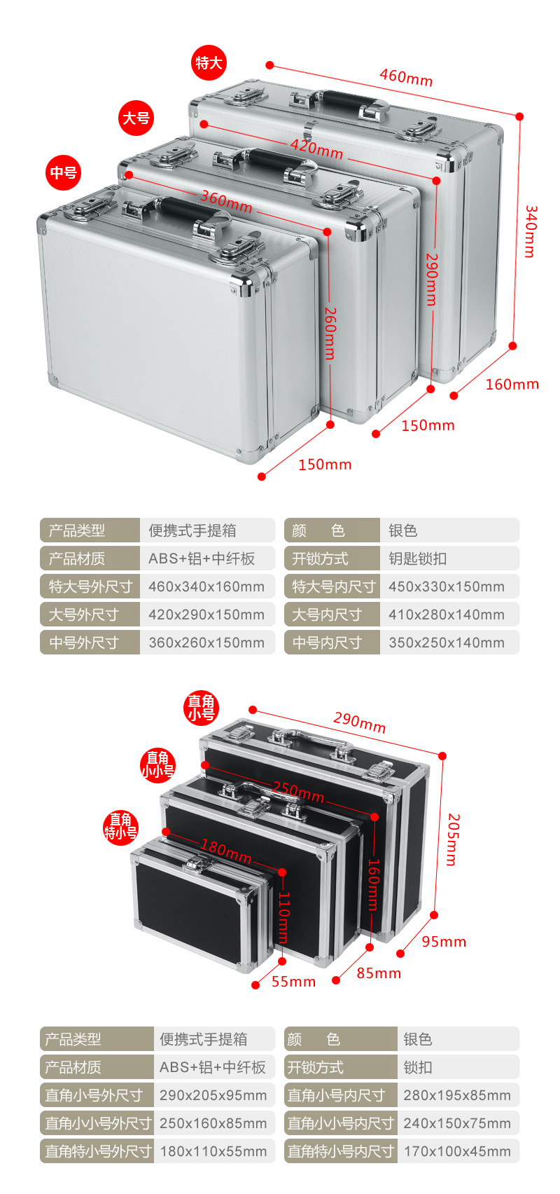 アルミ合金ポータブルツールボックスファイル収納ボックス計器機器保護ボックスアルミ合金ボックス製品ディスプレイアルミボックス