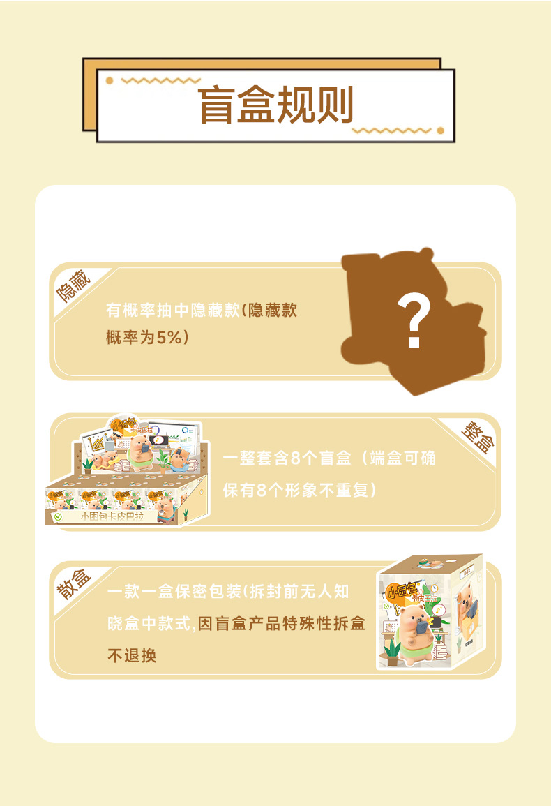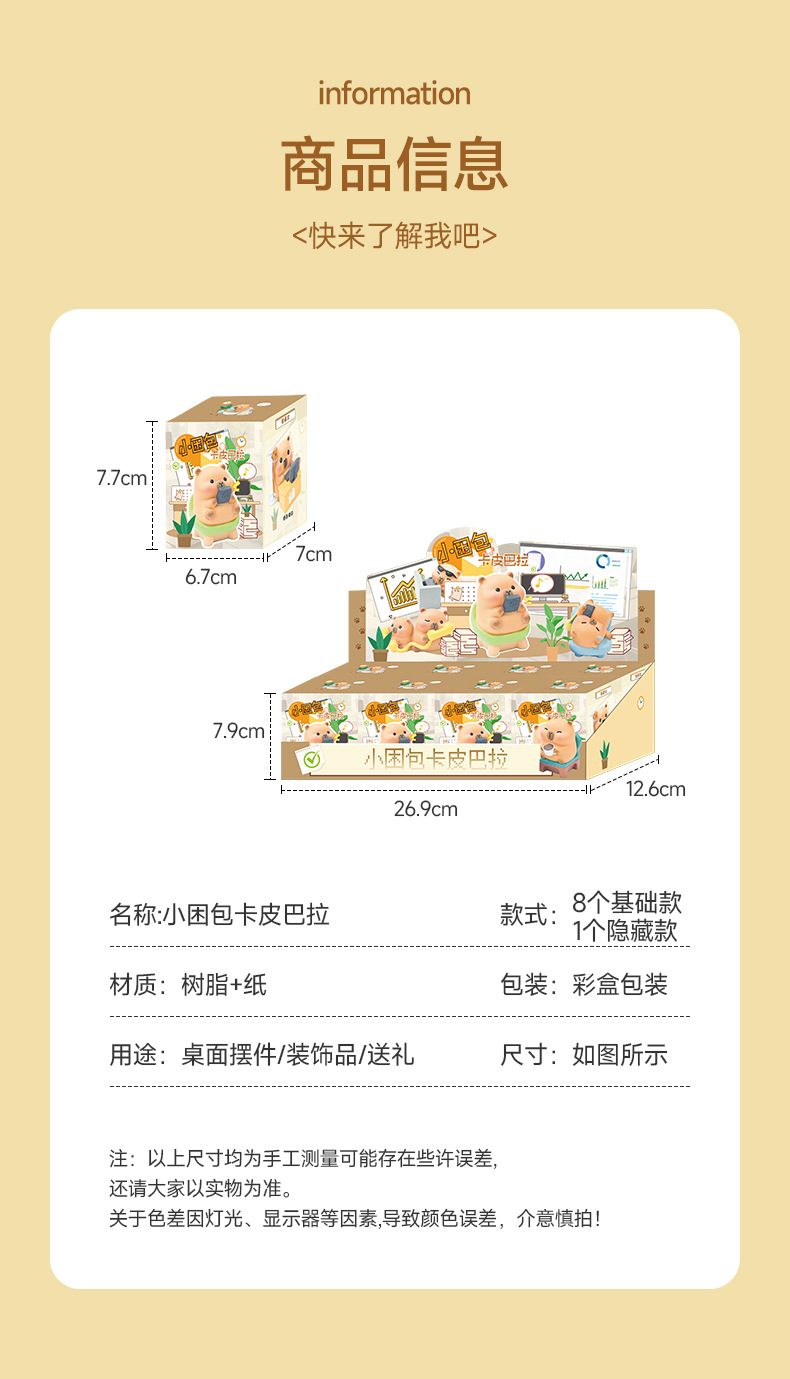 【商品名称】1040-295小困包卡皮巴拉盲盒【商品材质】树脂