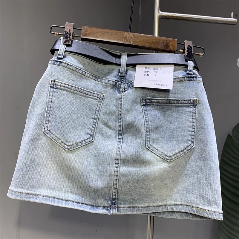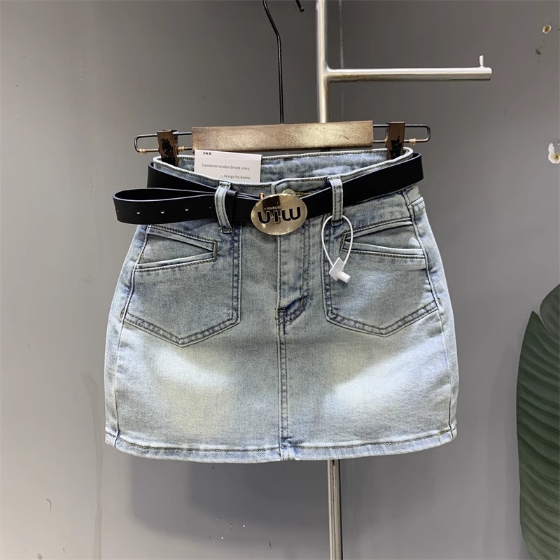 浅青春秋ファッション洋気減齢A字半身包尻スカート小柄高腰顕痩せデニムスカート女
