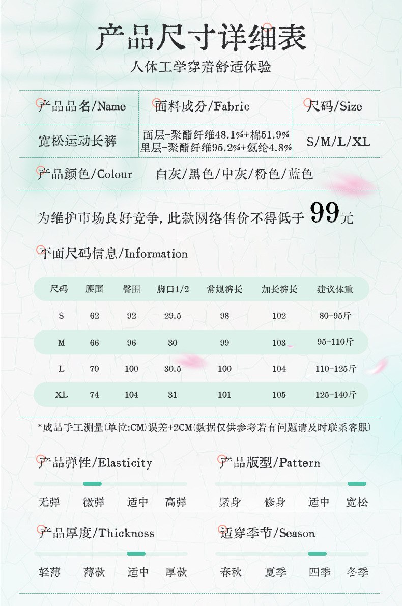 S( 40-47.5kg ),M( 47.5-55kg ),L( 55-62.5kg ),XL( 62.5-70kg )