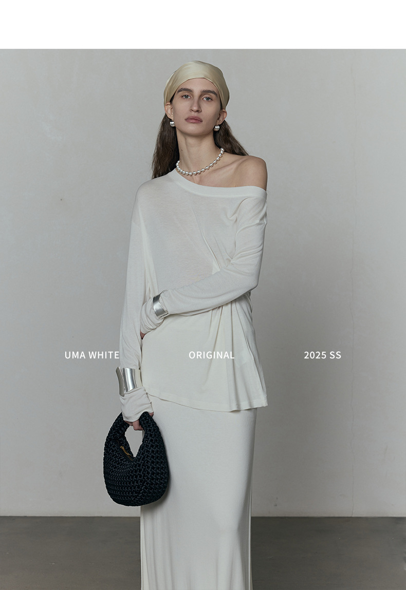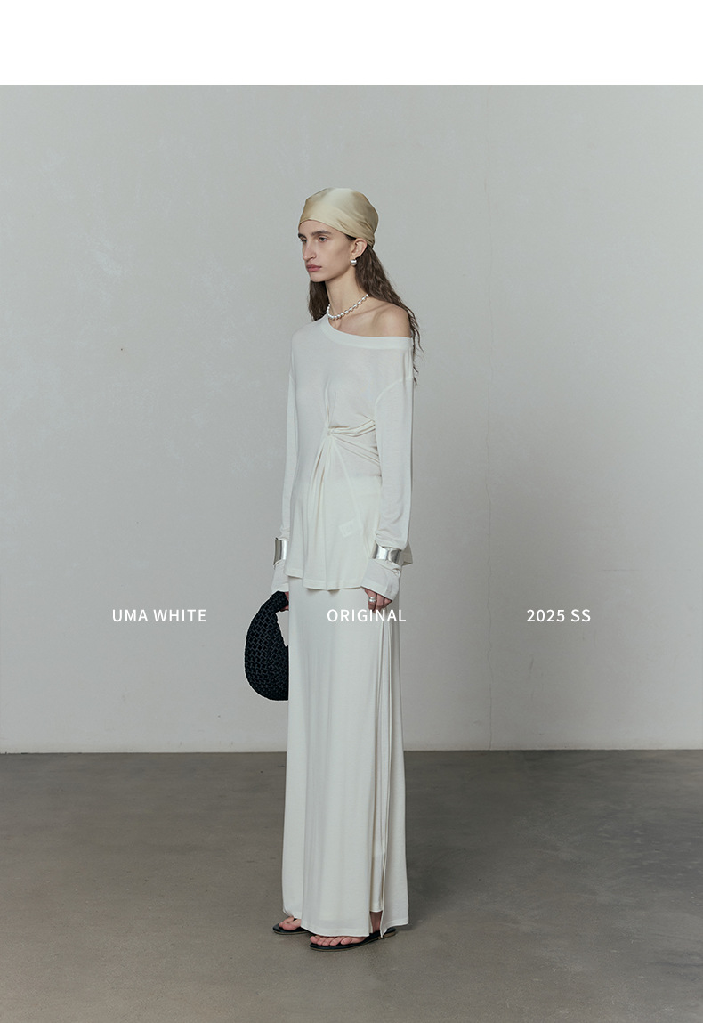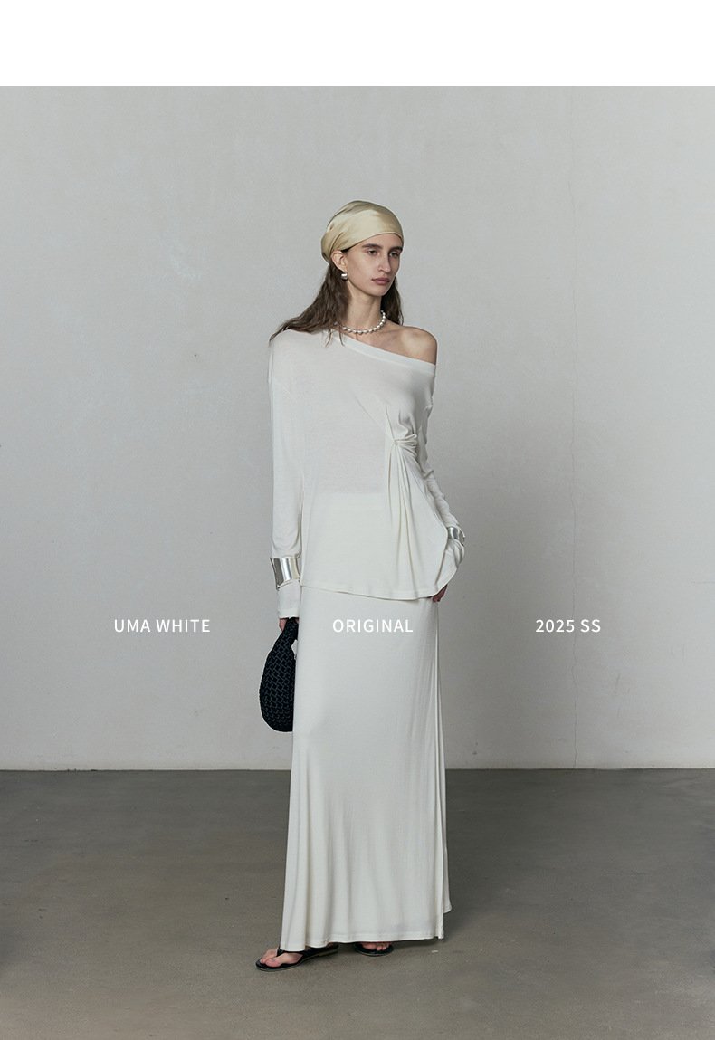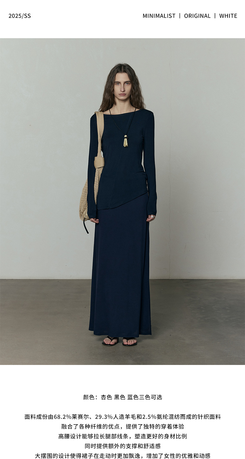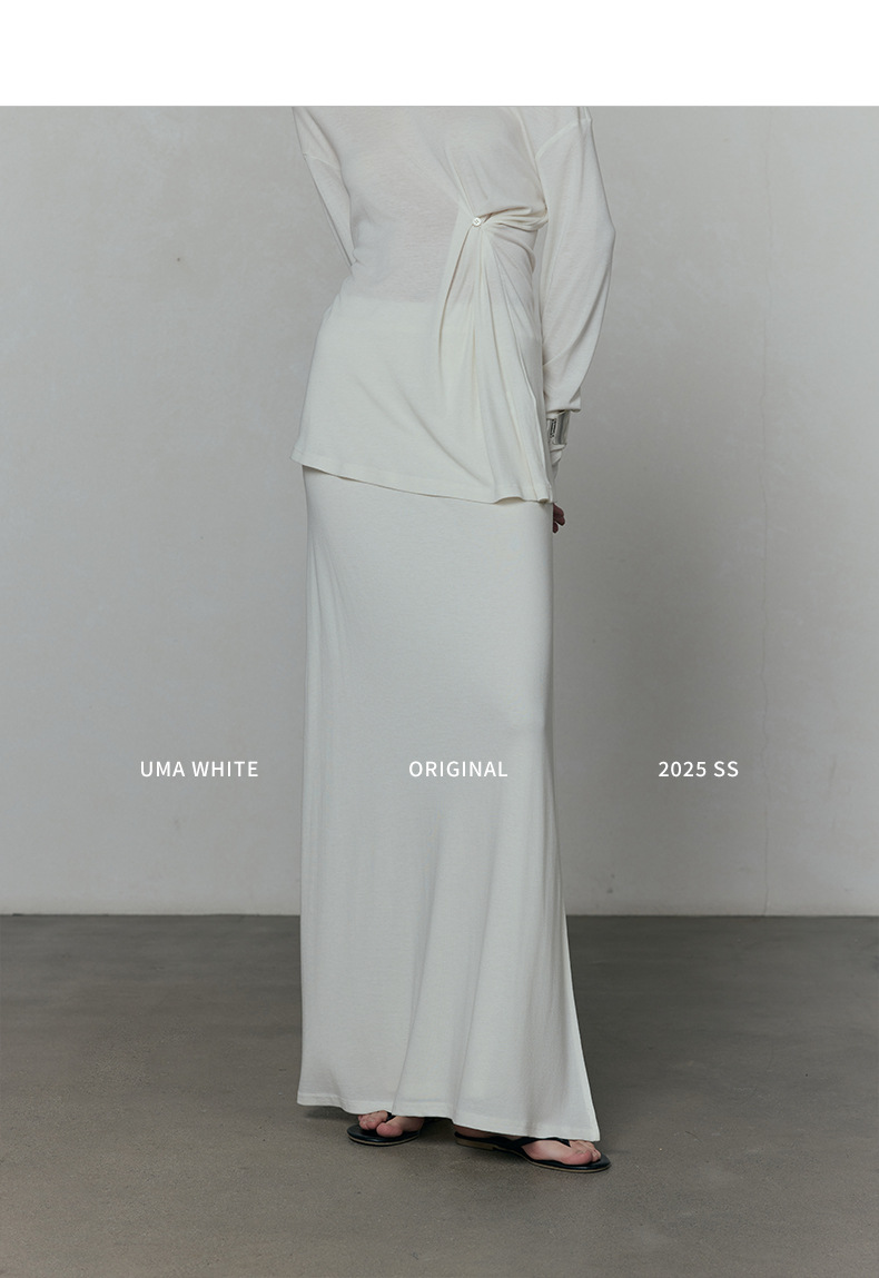 広州十三行婦人服UMA白ストール2025夏の新作スカート女性のテンセルハイウエストロングスカート