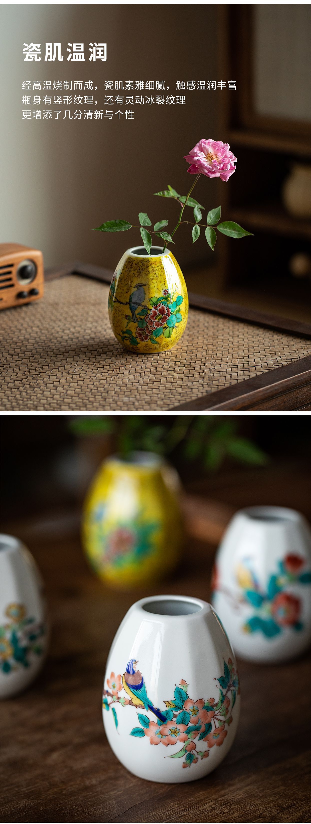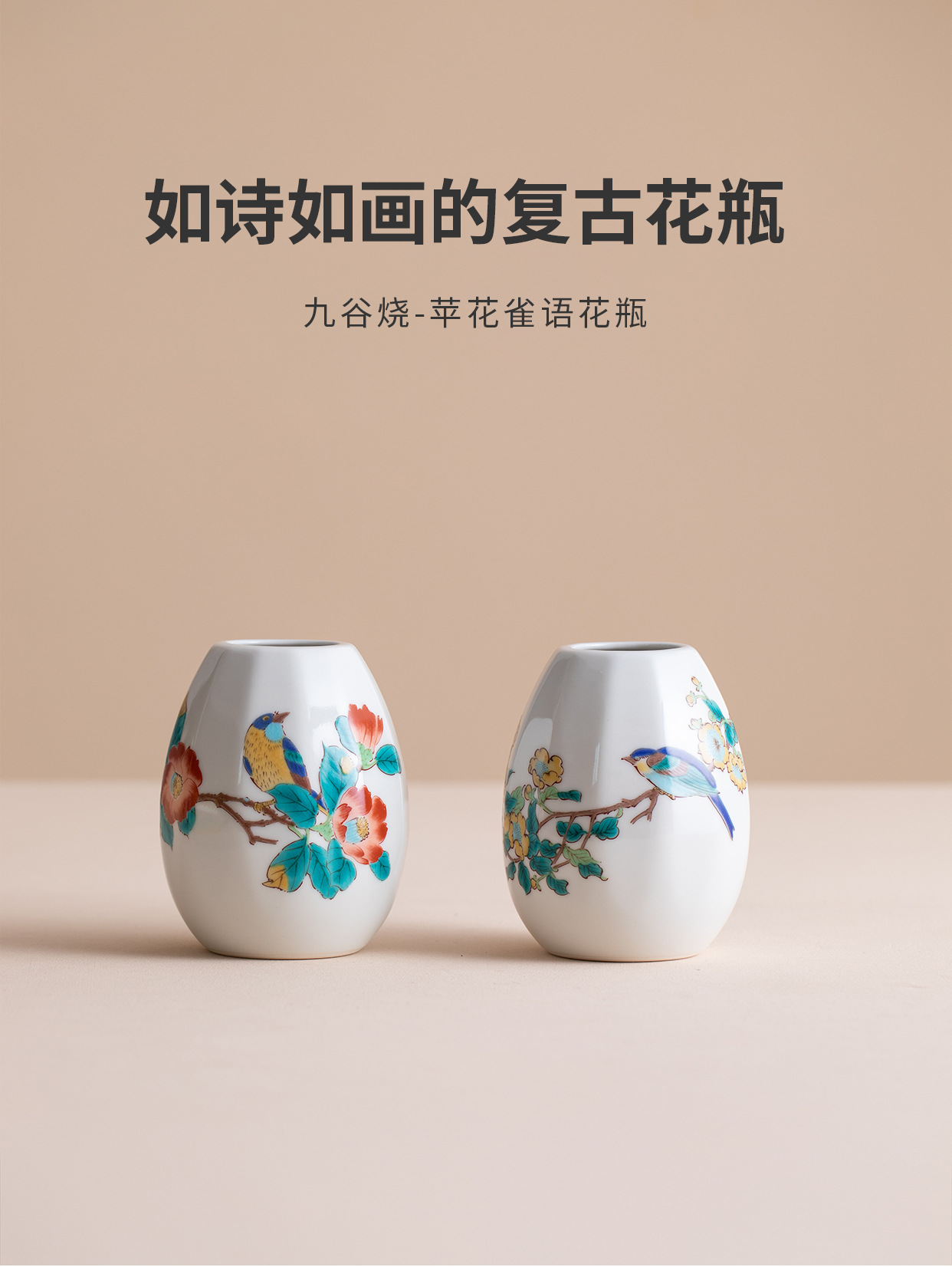 公式規格品日本輸入九谷焼花卉動物模様置物玄関装飾品手作り陶磁器花瓶