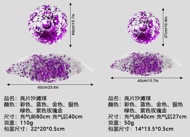品名:亮片沙滩球、六色球、四色球、足球