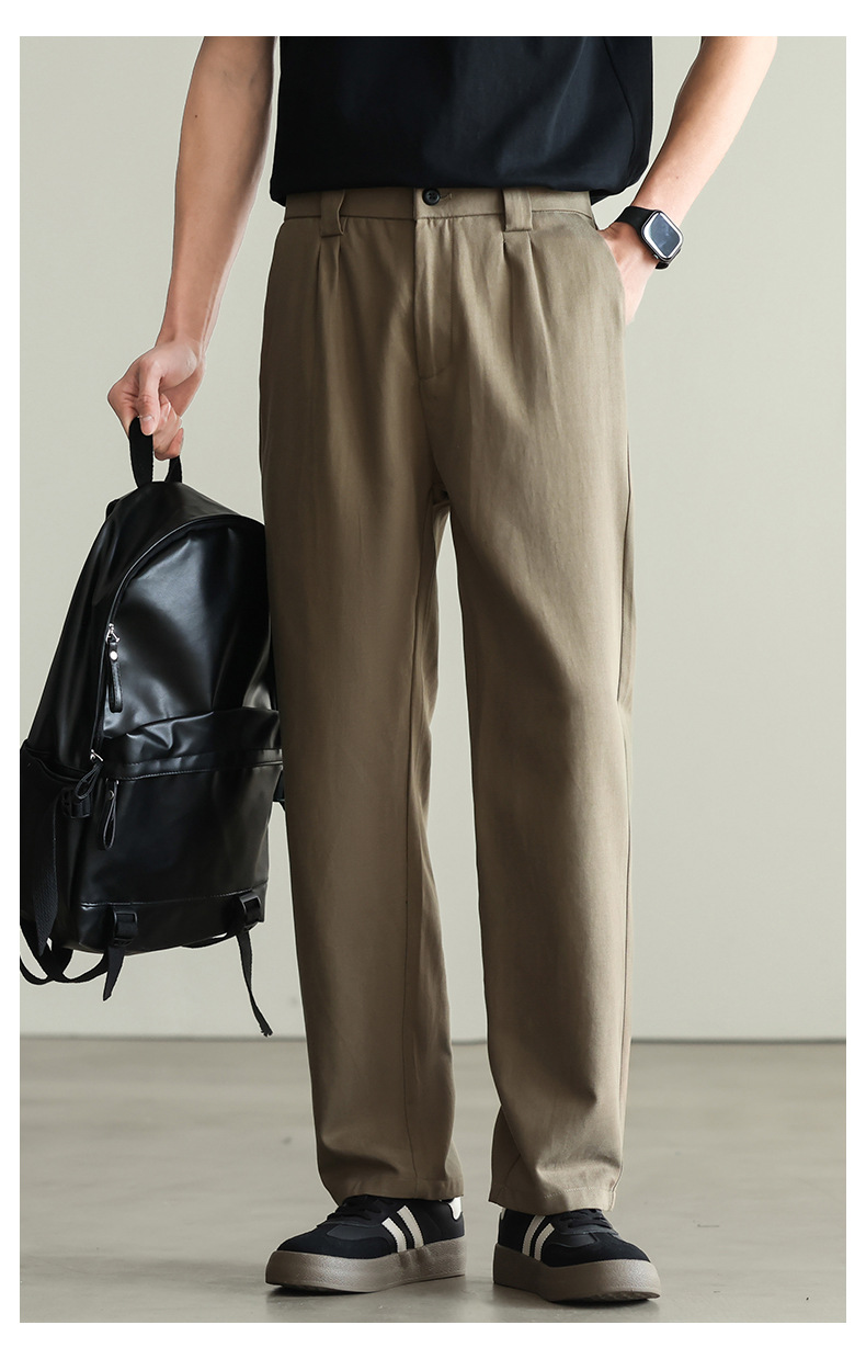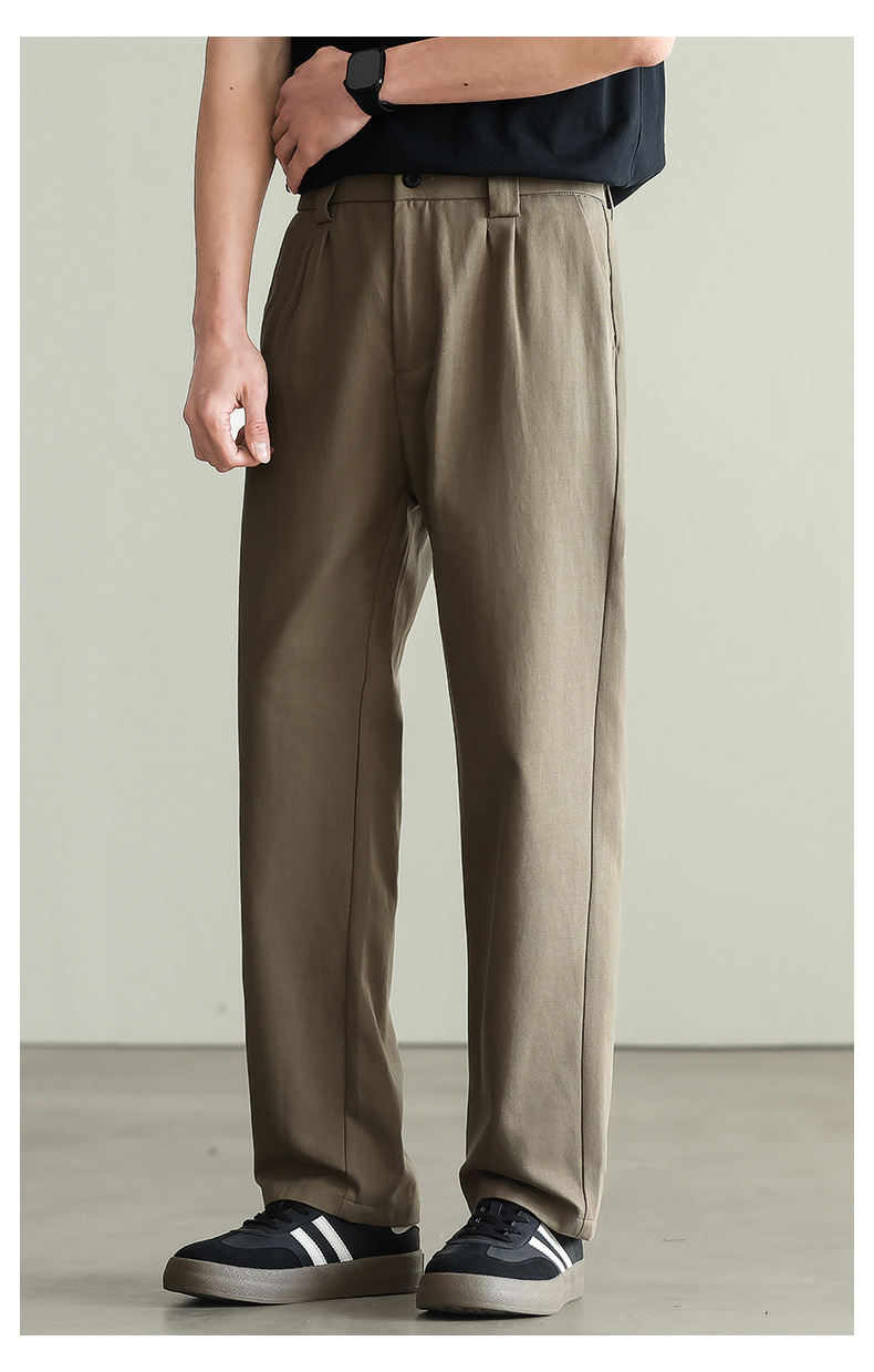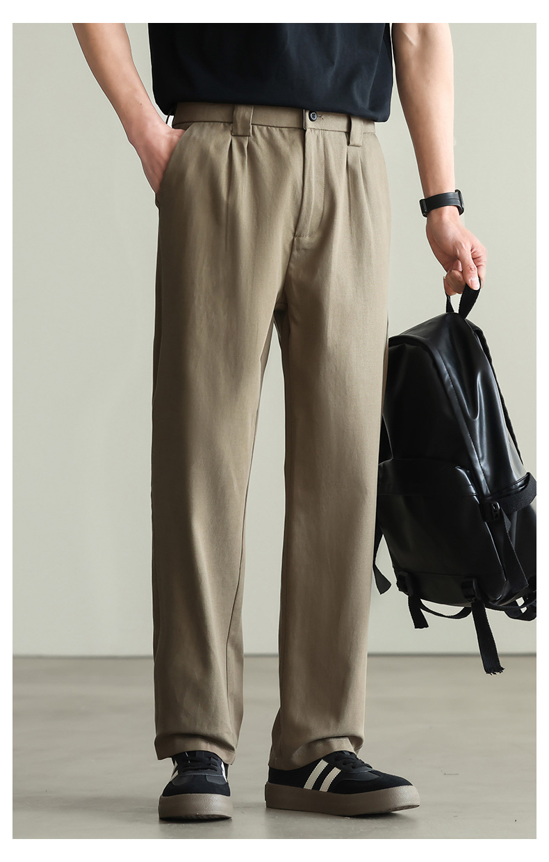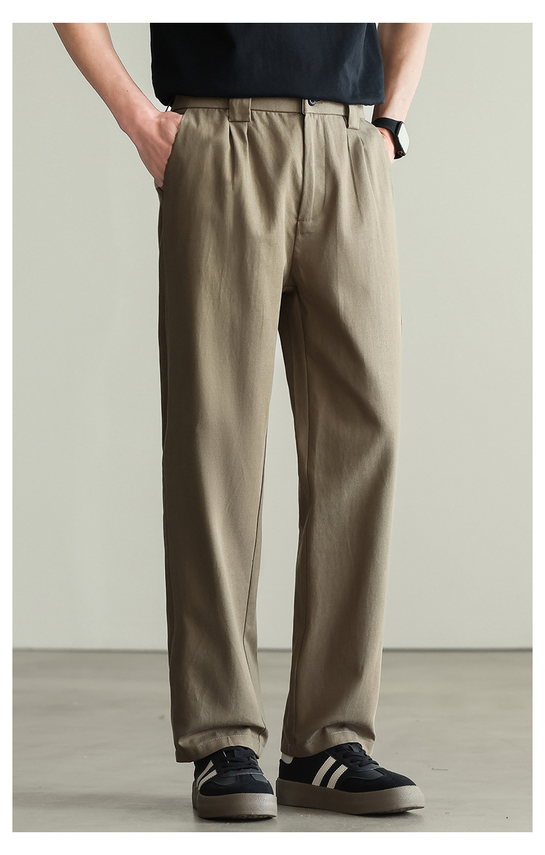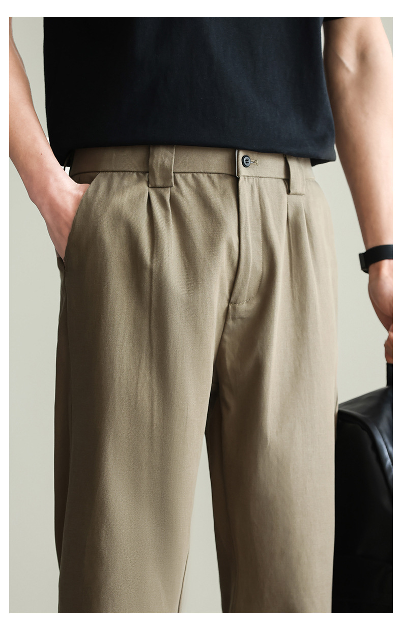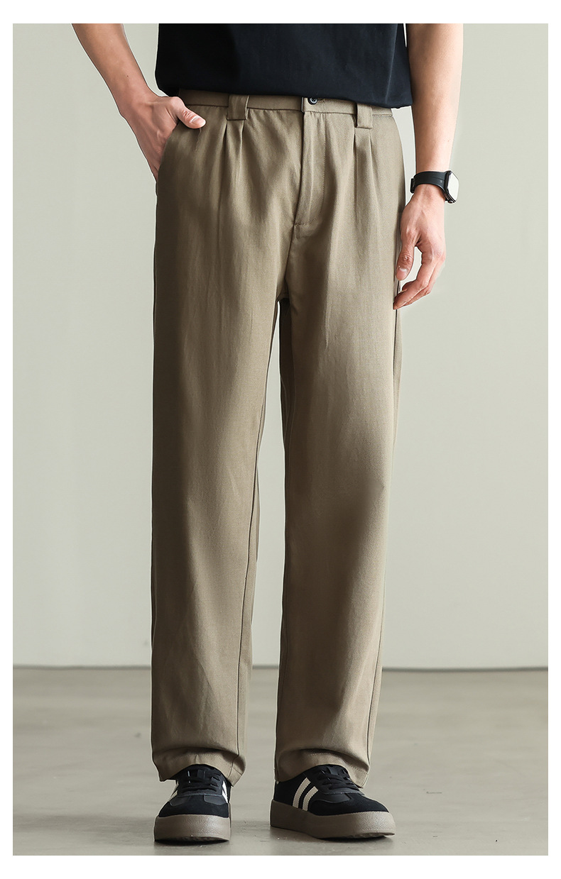 【リヨセル・テンセル&コットン】ドレープ感のあるストレートカジュアルパンツ メンズ 2026春 通勤 カーキ色 ワイドパンツ