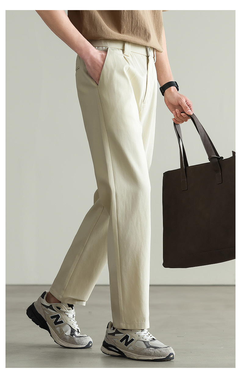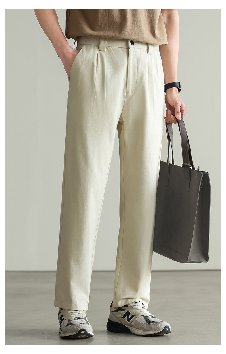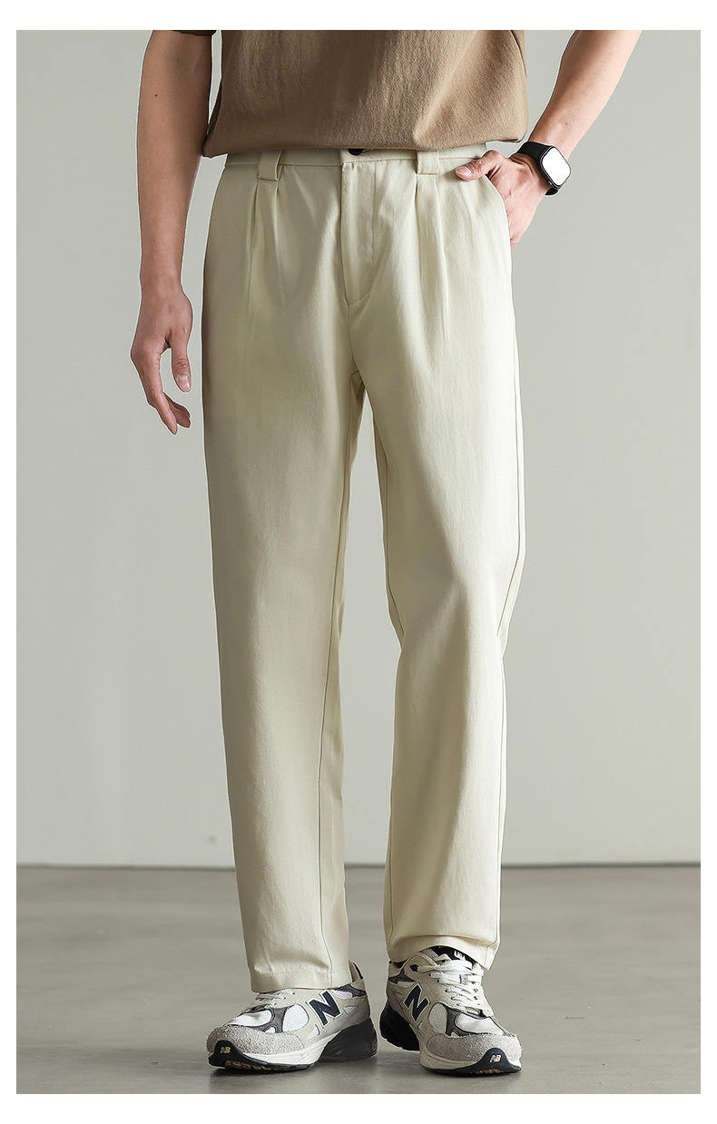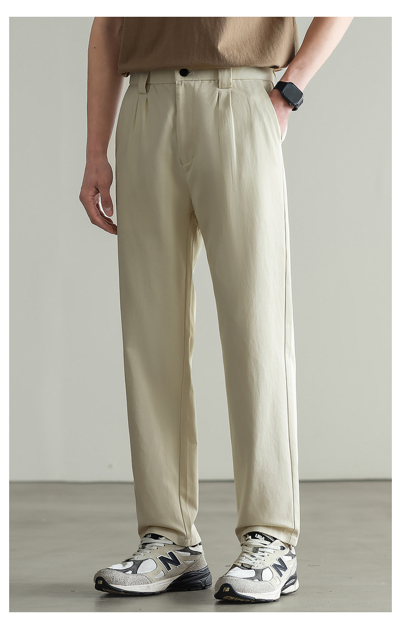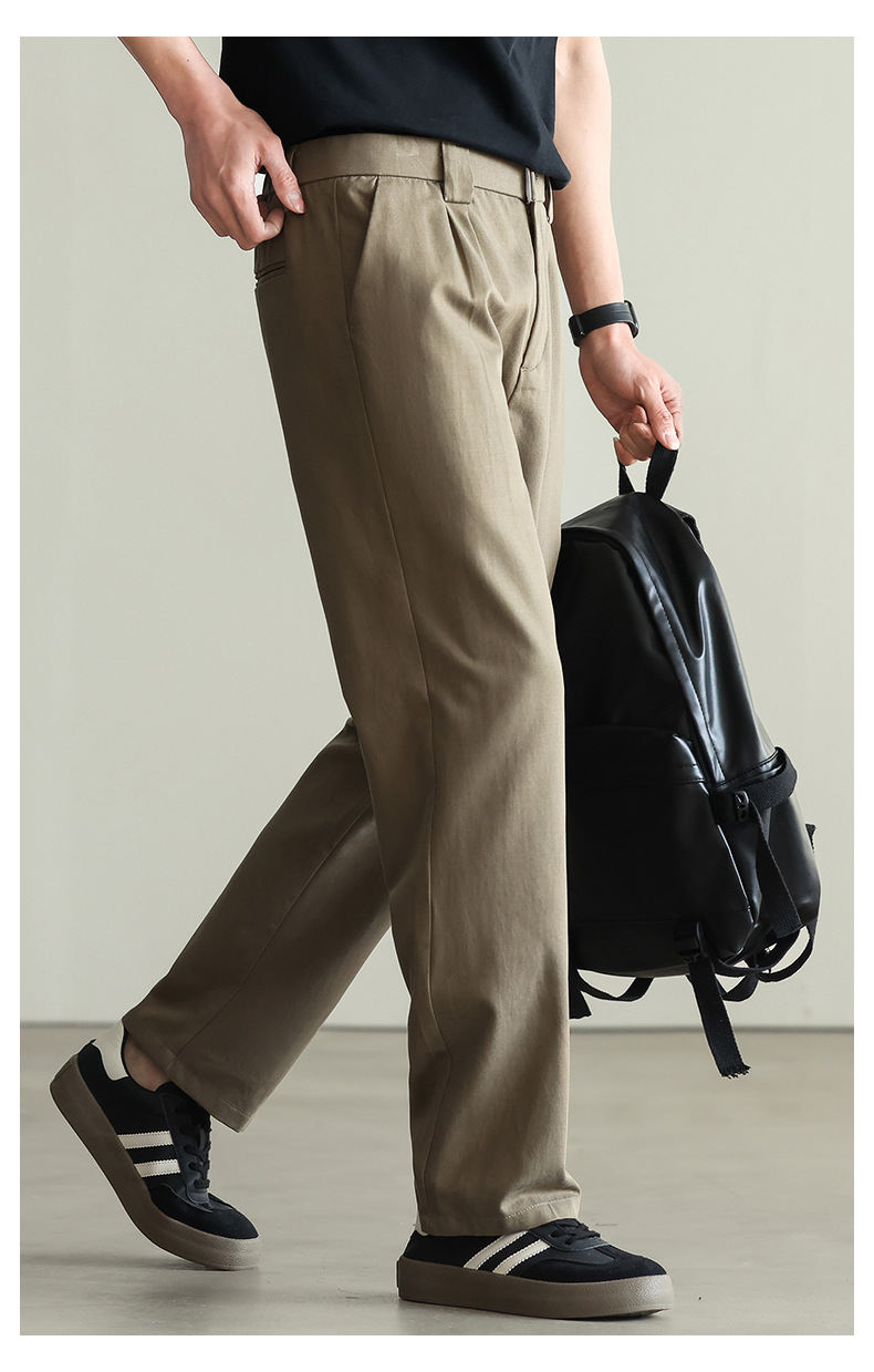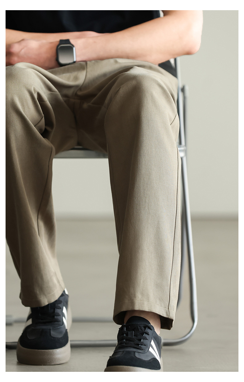 【リヨセル・テンセル&コットン】ドレープ感のあるストレートカジュアルパンツ メンズ 2026春 通勤 カーキ色 ワイドパンツ