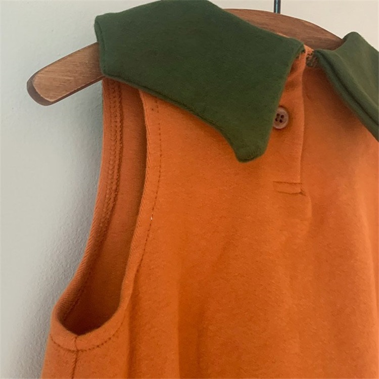 INSタイプの子供服男女赤ちゃん乳幼児かぼちゃノースリーブワンピース帽子付き