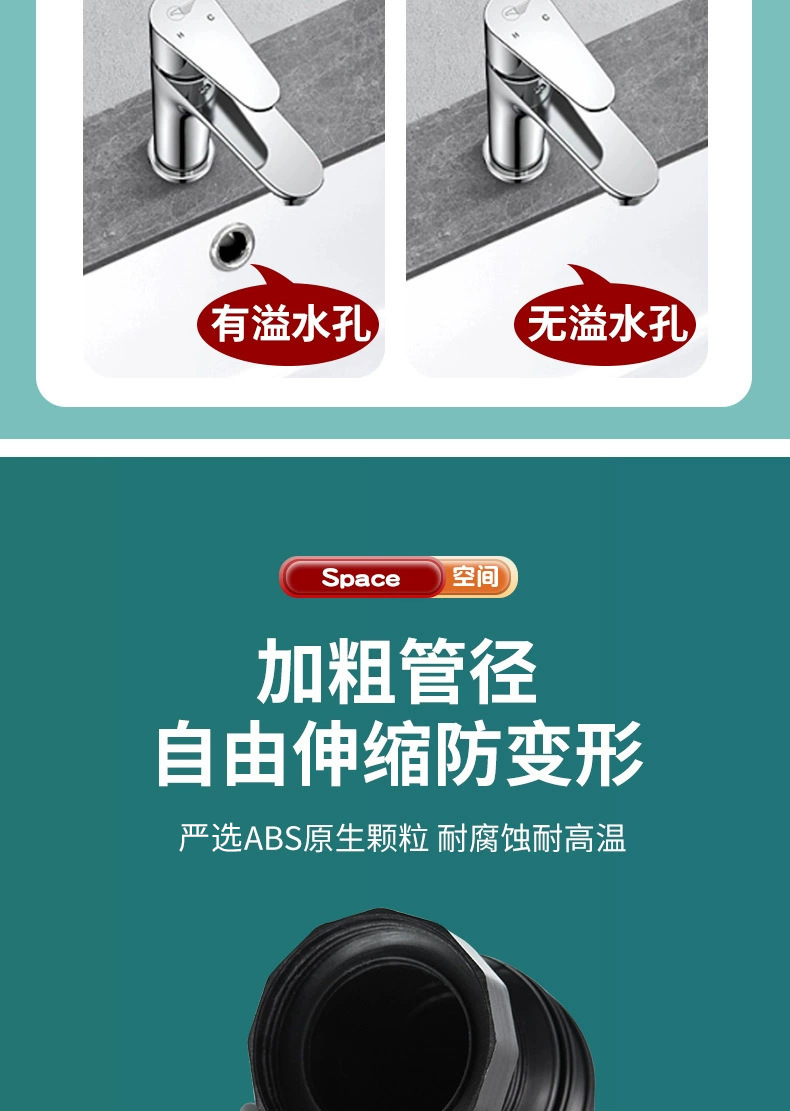 洗面器の下の水道管の臭い防止の神器の洗面器の下の水の洗面器のホースの排水の部品の横の縦の列の双用