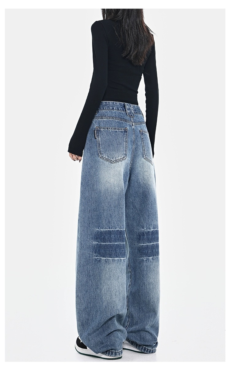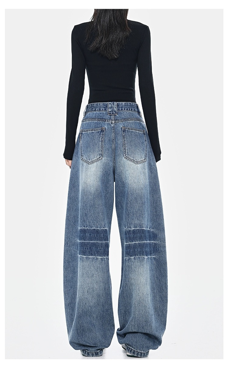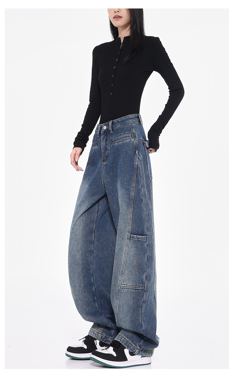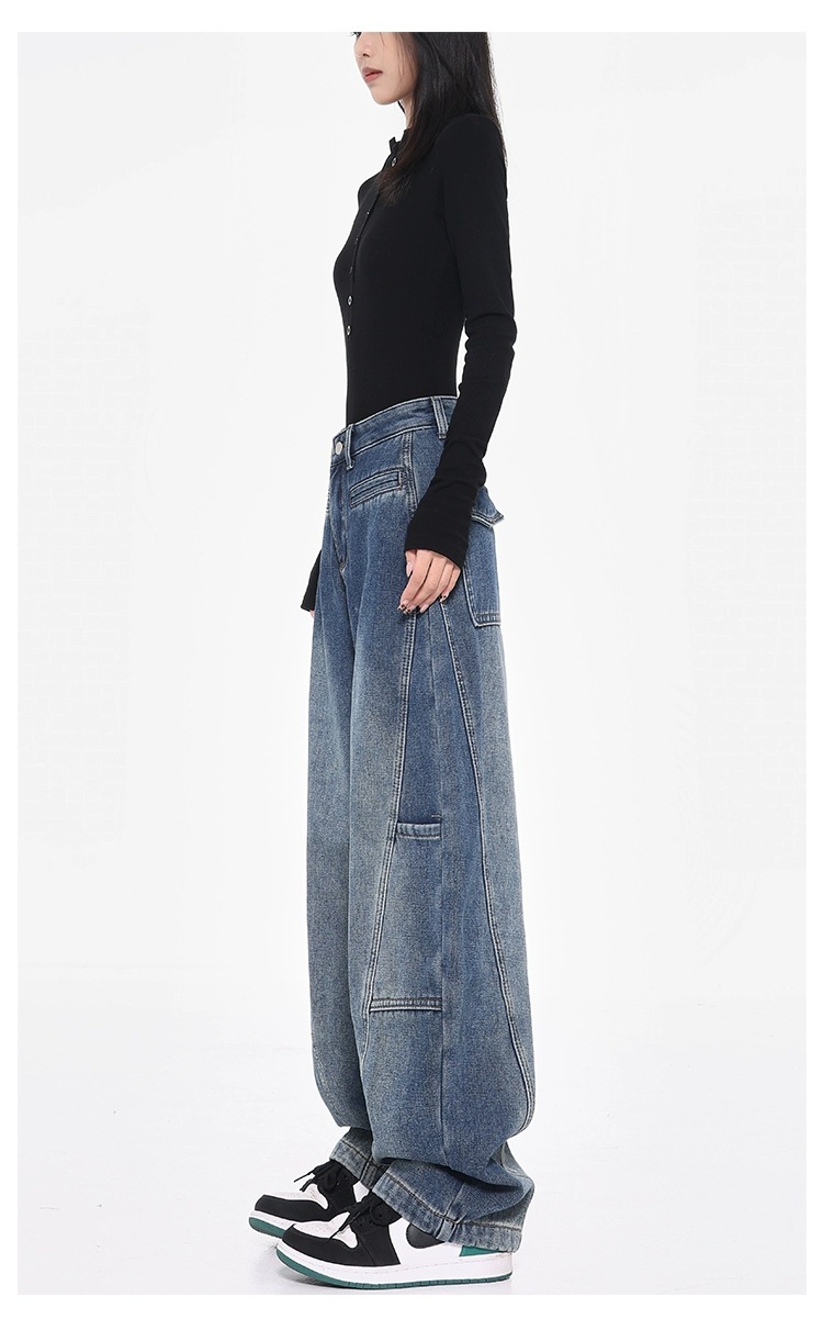 KEN STUDIOレトロ工装ジーパン女性春新作ワイドパンツ曲げナイフパンツバナナズボンモップズボン