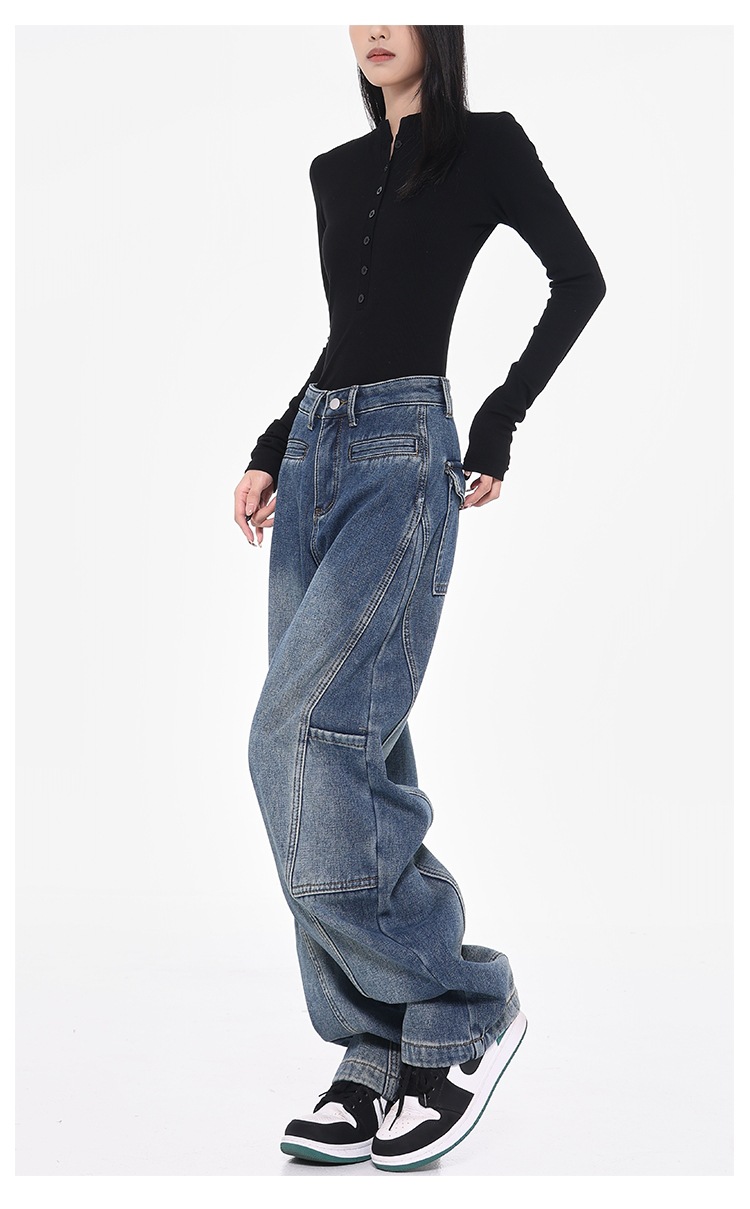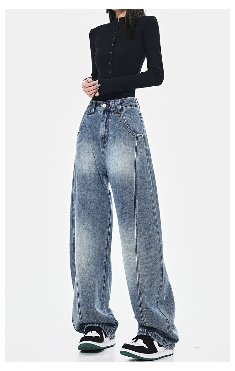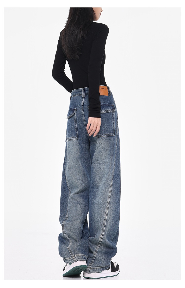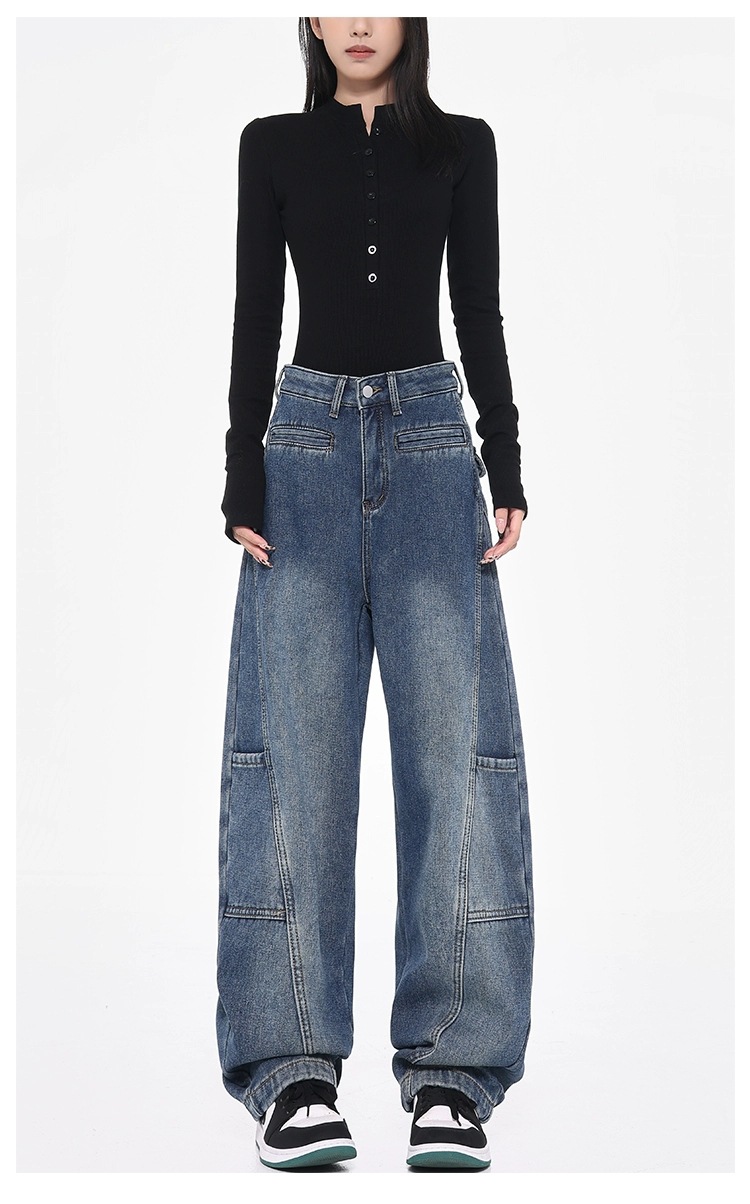 KEN STUDIOレトロ工装ジーパン女性春新作ワイドパンツ曲げナイフパンツバナナズボンモップズボン