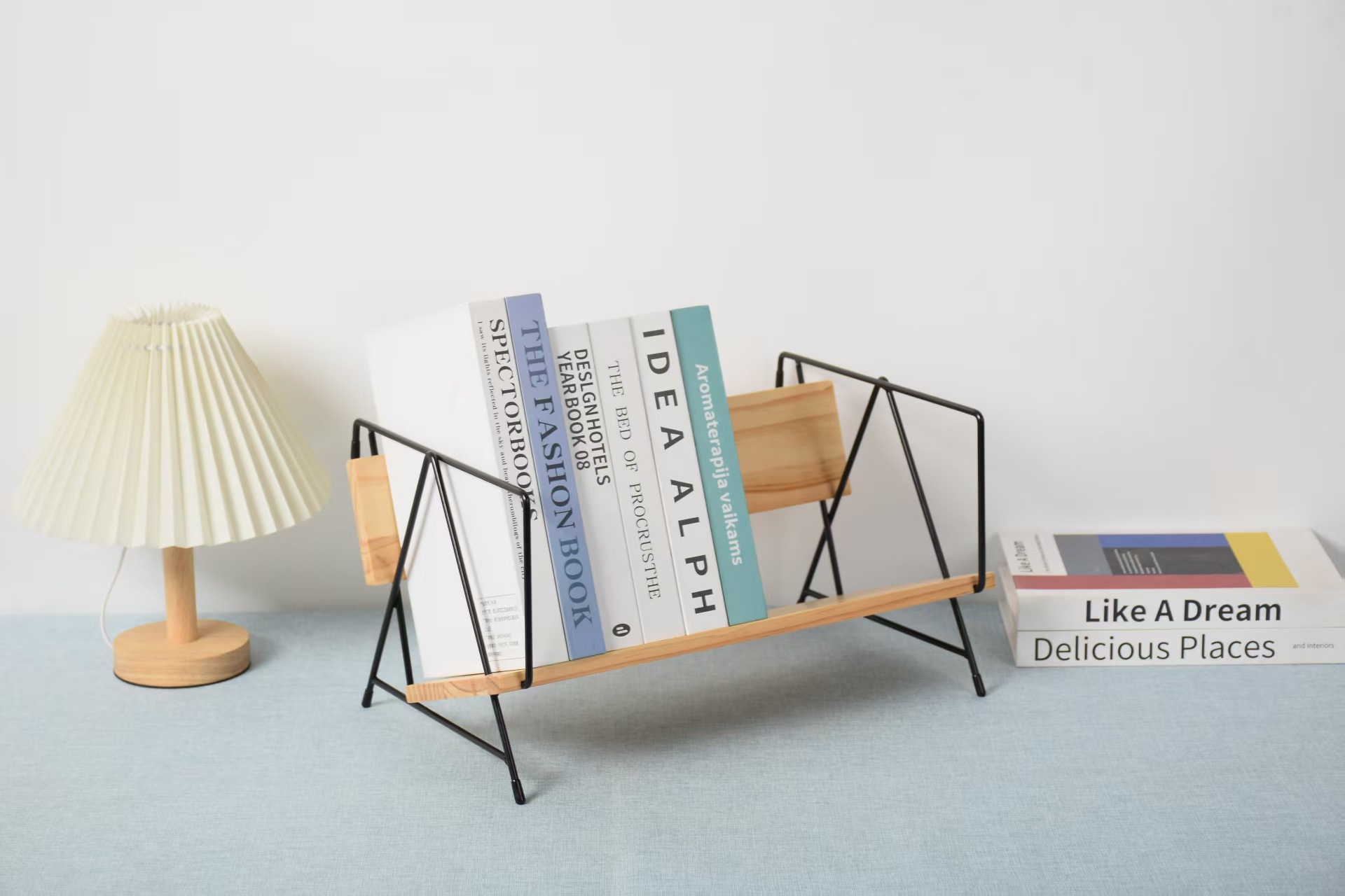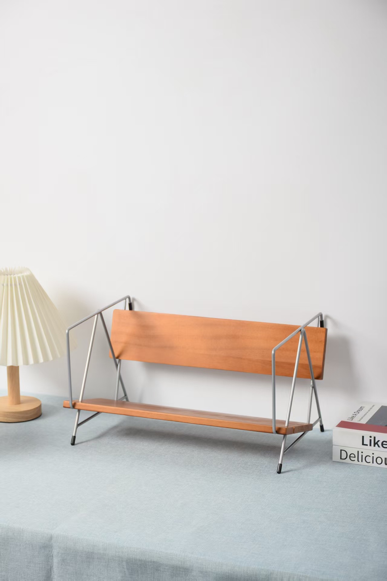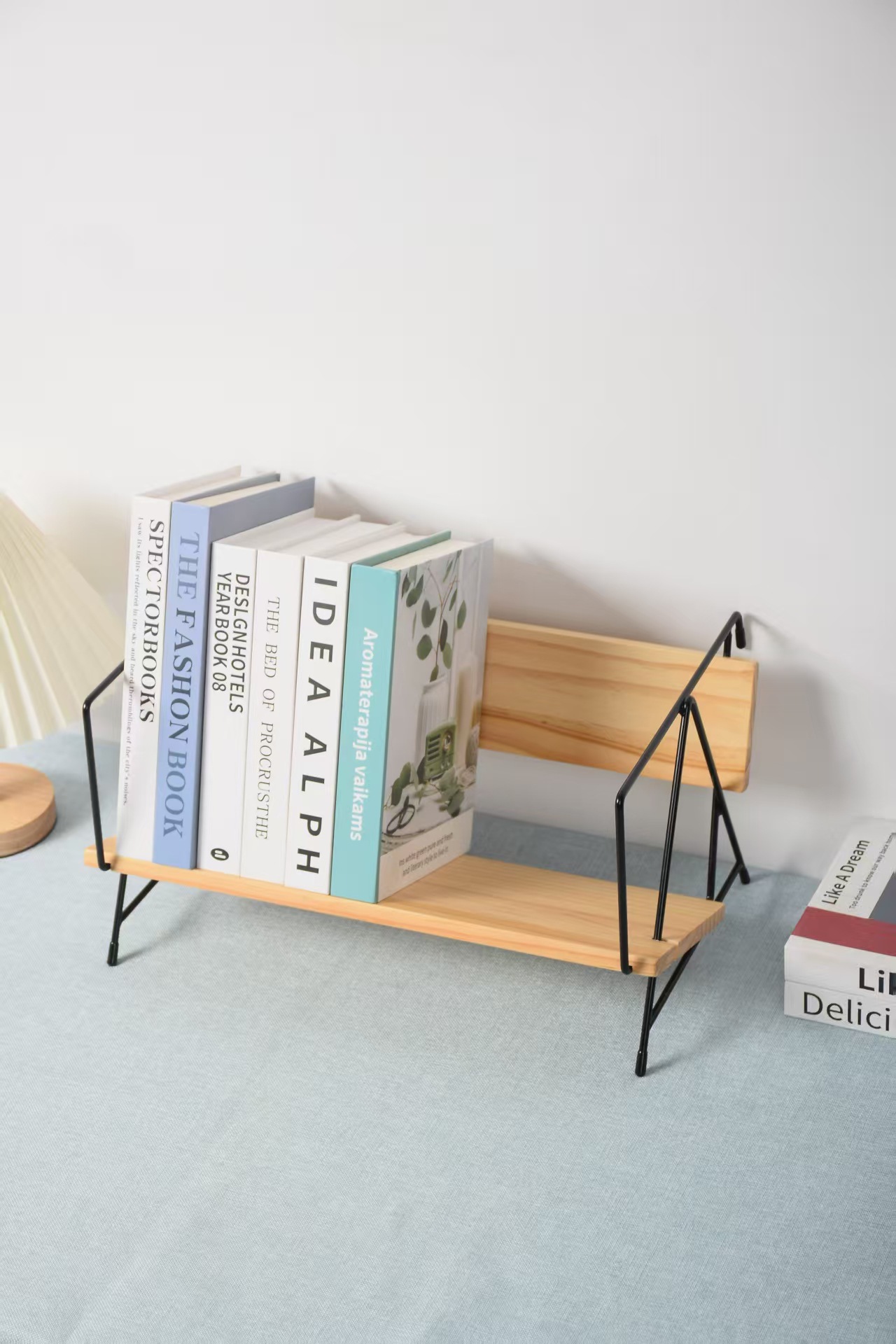 新しい木のデスクトップの本棚の創意書は家庭用喫茶店のカウンターの収納棚の書籍雑誌の小さい本棚を立てます。