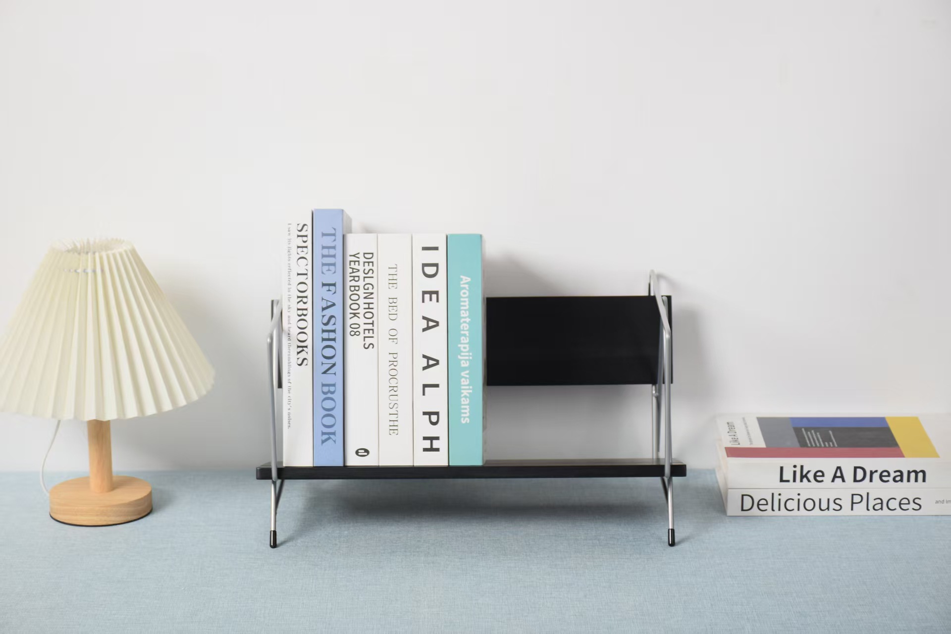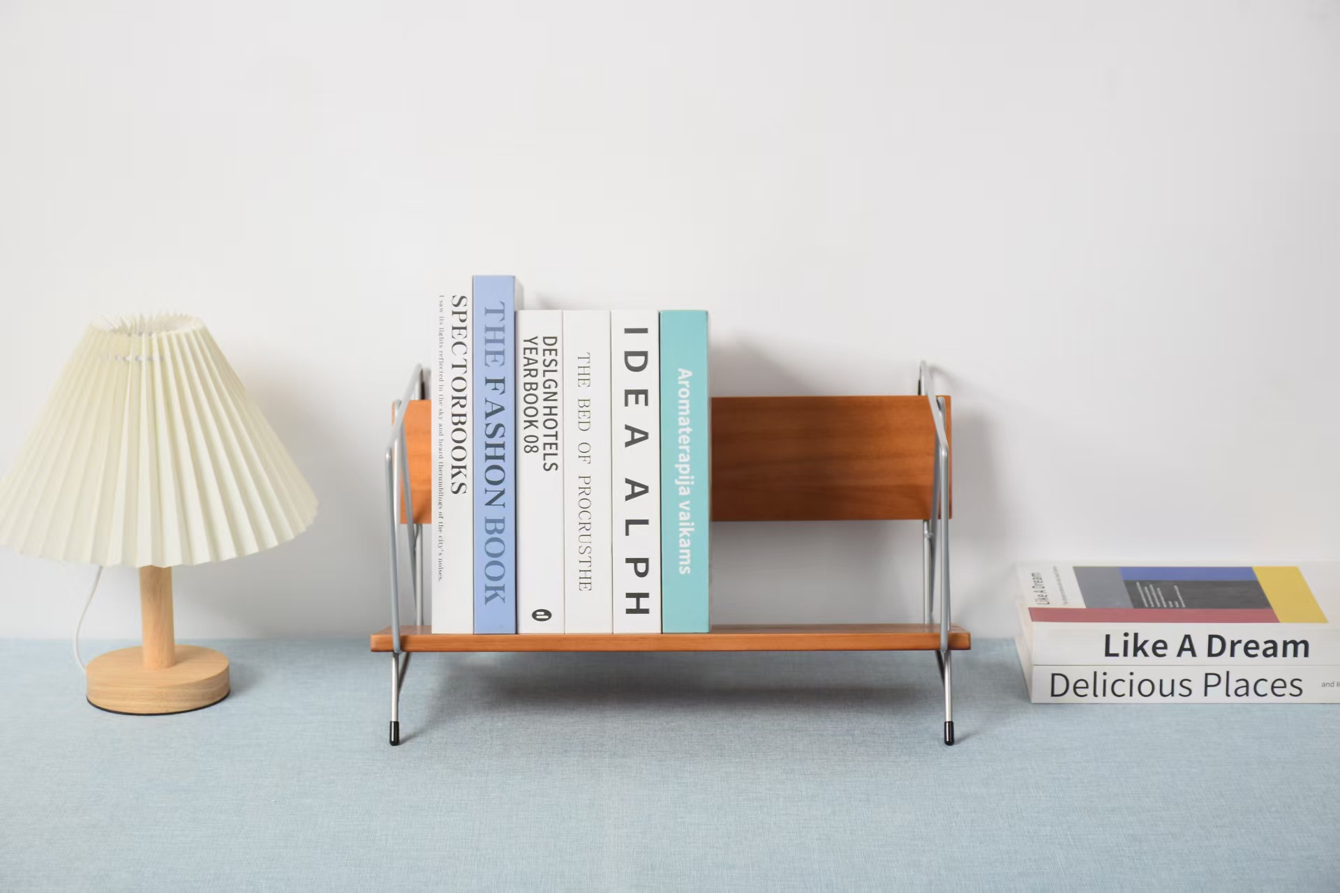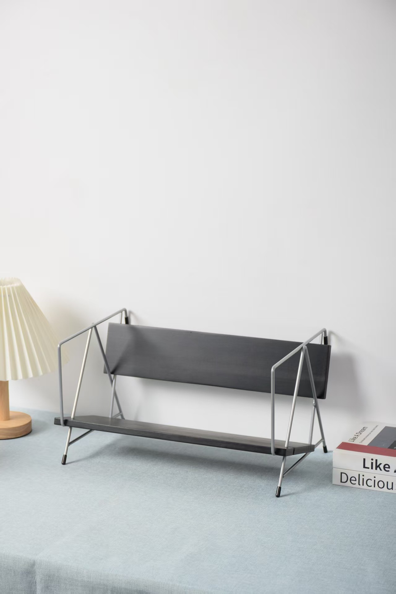 新しい木のデスクトップの本棚の創意書は家庭用喫茶店のカウンターの収納棚の書籍雑誌の小さい本棚を立てます。