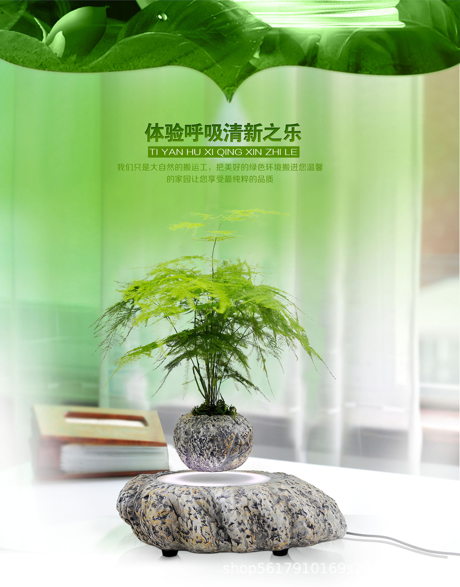 磁気浮上式植木鉢、回転式グリーン、リビングルームの装飾品、工芸品、植物盆栽、卸売、金のなる木