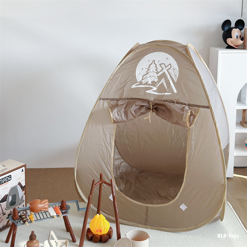 国境を越えた子供たちがキャンプをしているテントの炊飯食器室内の屋外キャンプを探検して虫を捕るバーベキューゲーム屋