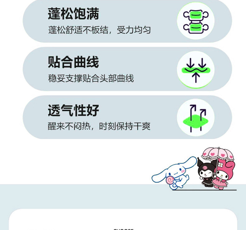 サンリオ涼感枕幼稚園枕芯漫画枕芯子供昼寝枕は取り外し可能な赤ちゃん枕芯