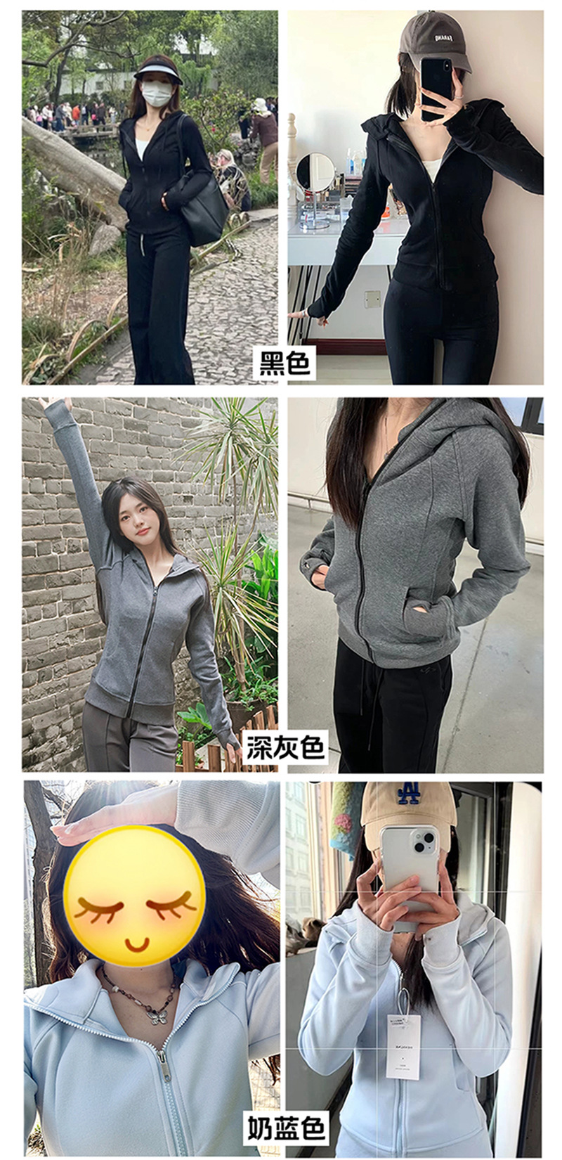 LULU fend スリムフィットスウェットシャツ レディース カジュアル ラフ フード付き ヨガジャケット 春用 裏起毛 保温トップス scuba