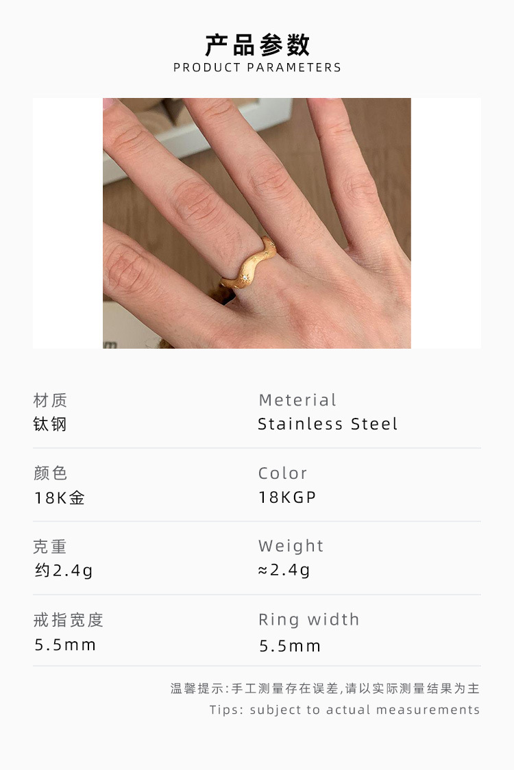 レトロな金色の線引きの波の指輪の女性の軽豪華な八星の芒の小さい大衆のデザイン感の指環のチタン鋼は色を落とさないで飾ります。