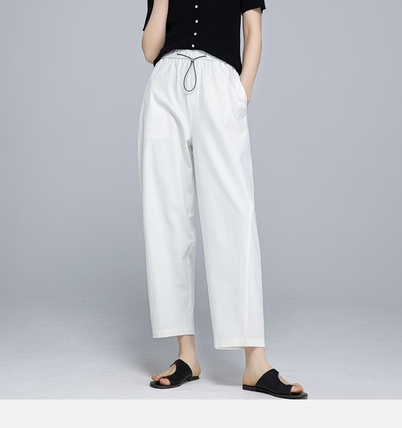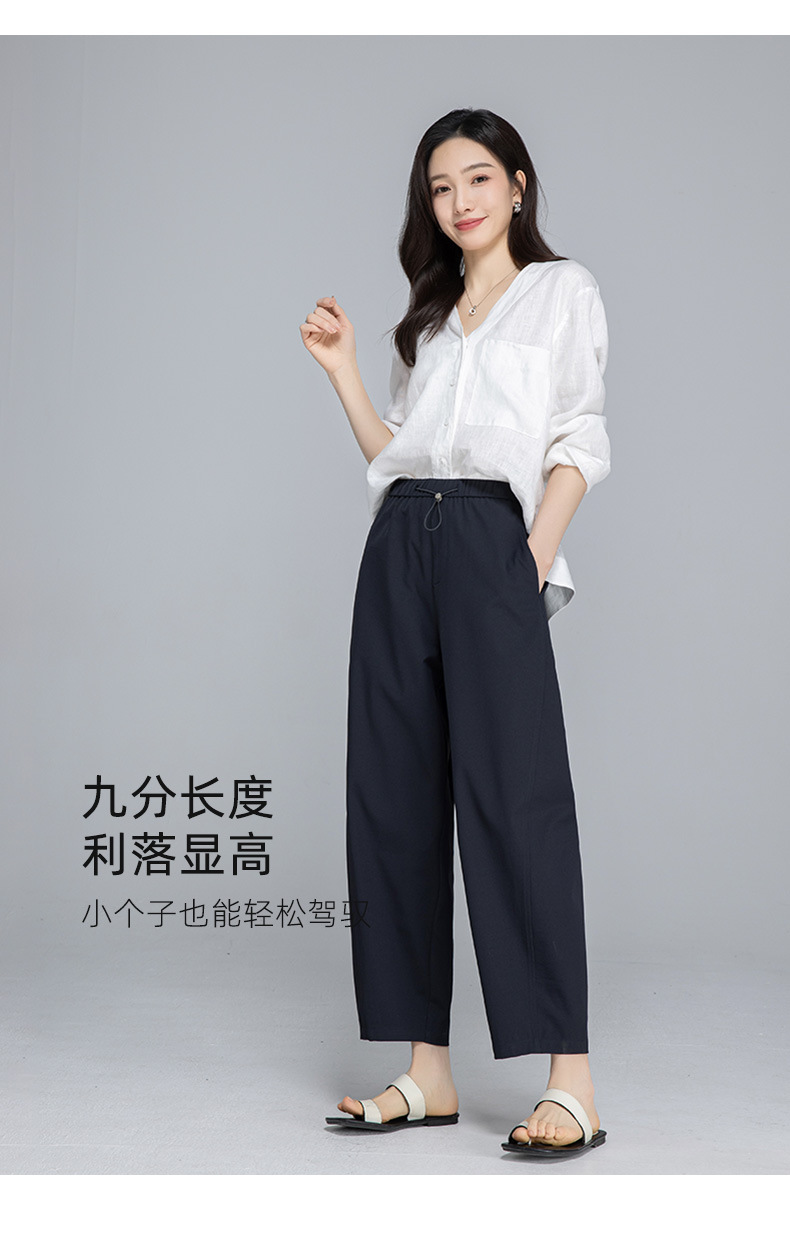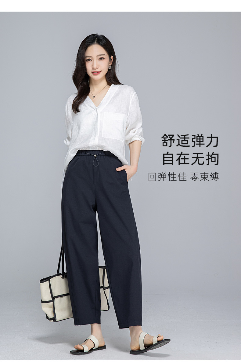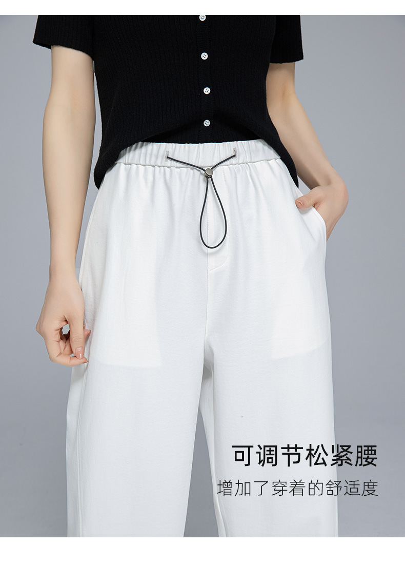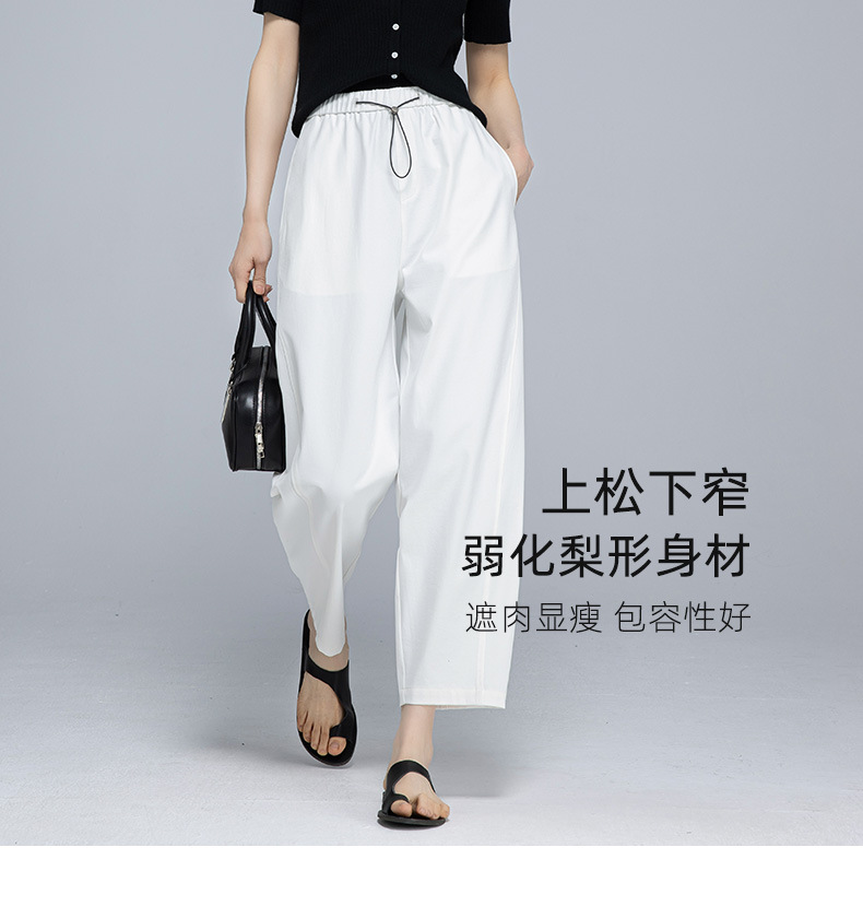 鑫閣チベット青カジュアルパンツ女2024新作夏の白いひもがカジュアルな9分のおばあさんのズボンの風船のズボンを緩めます。