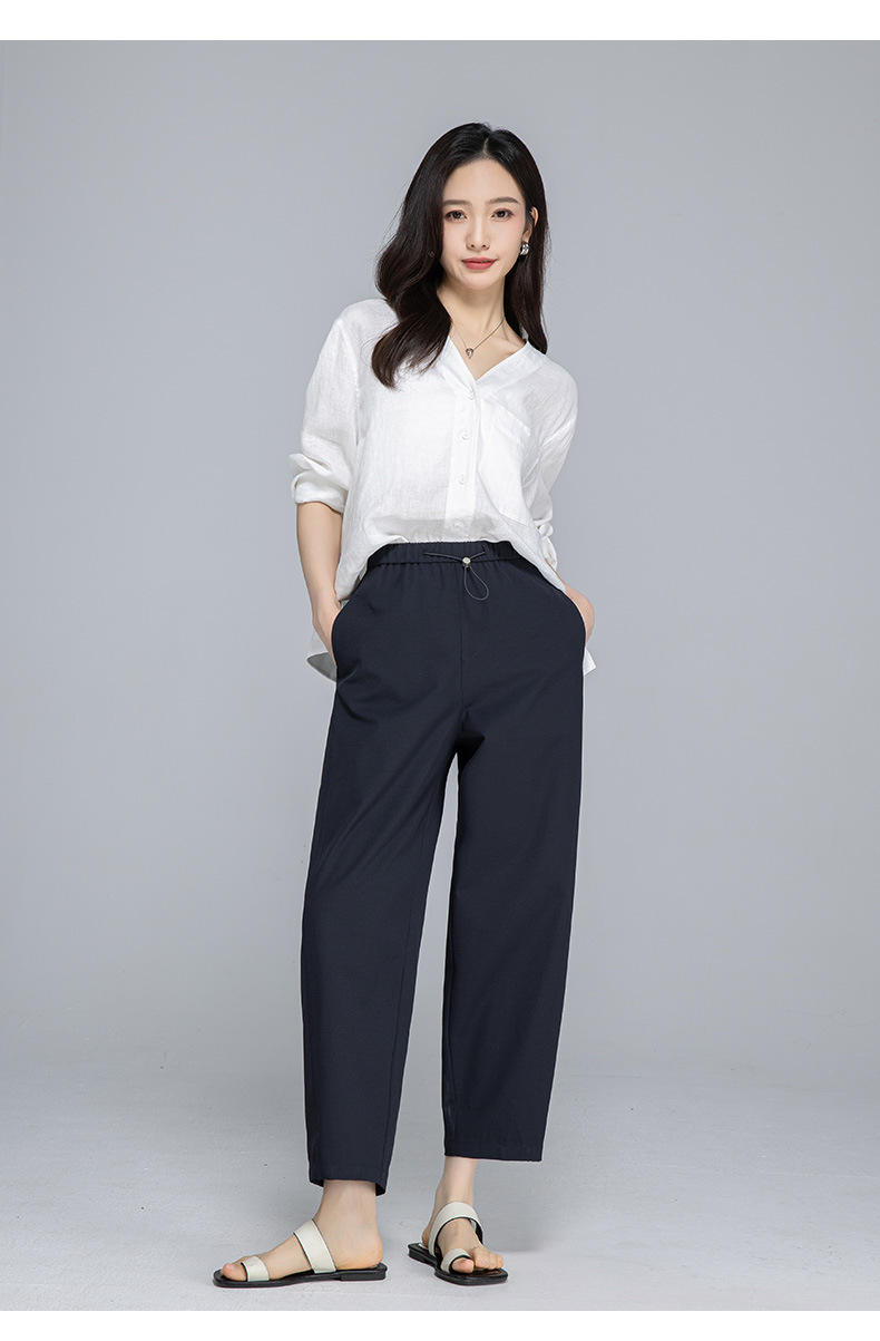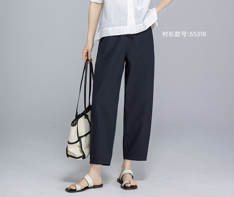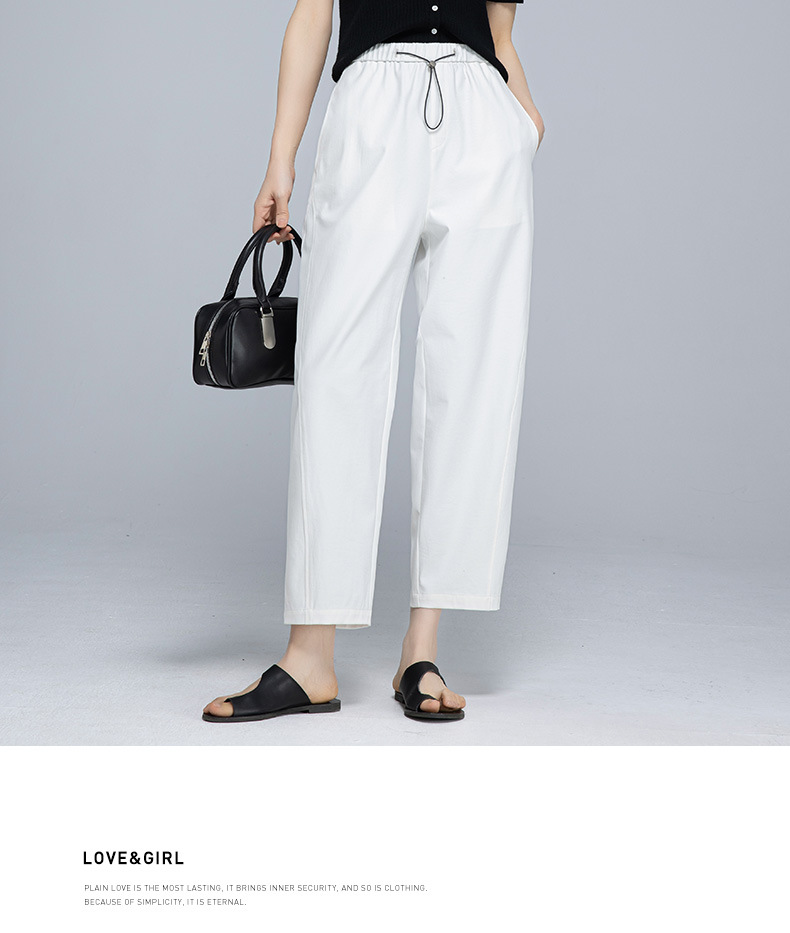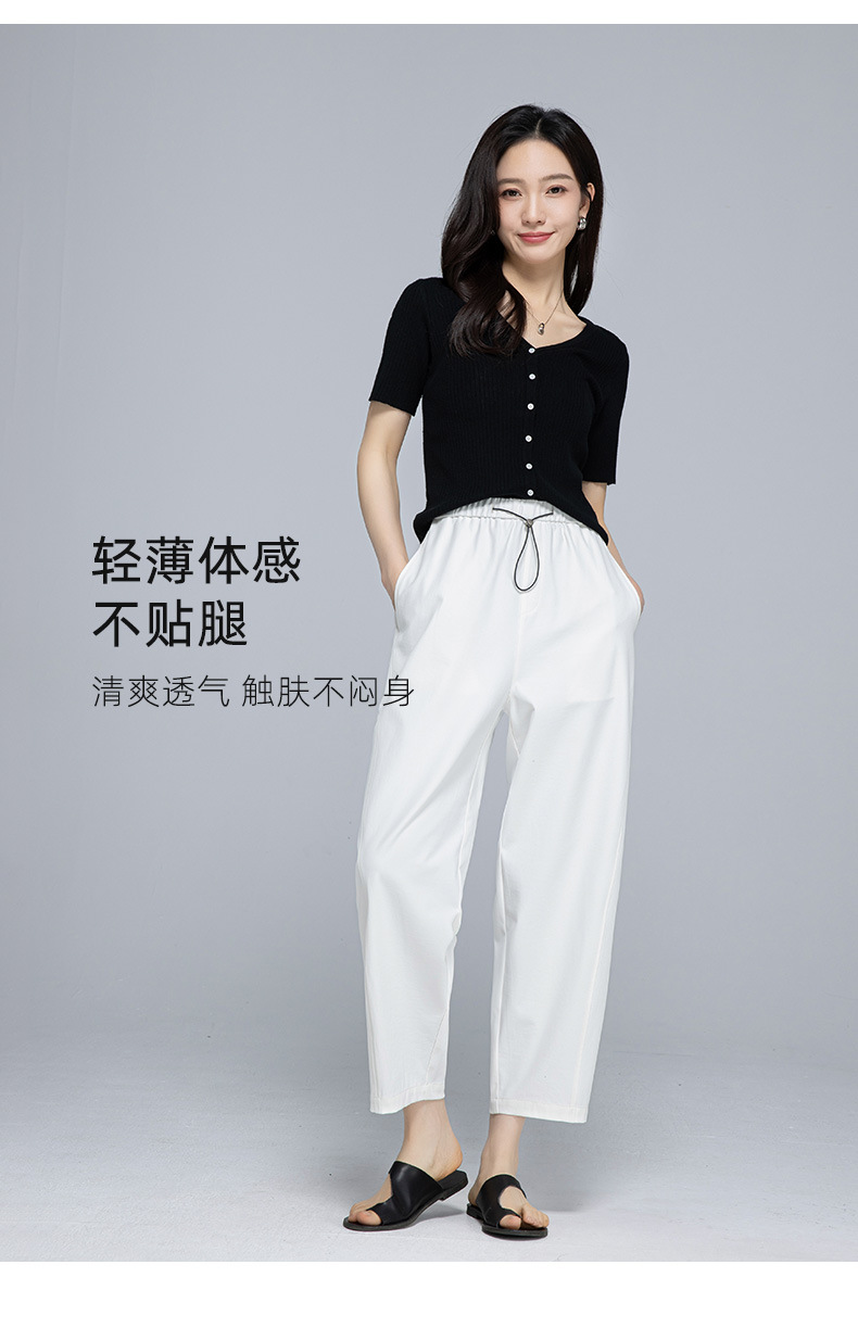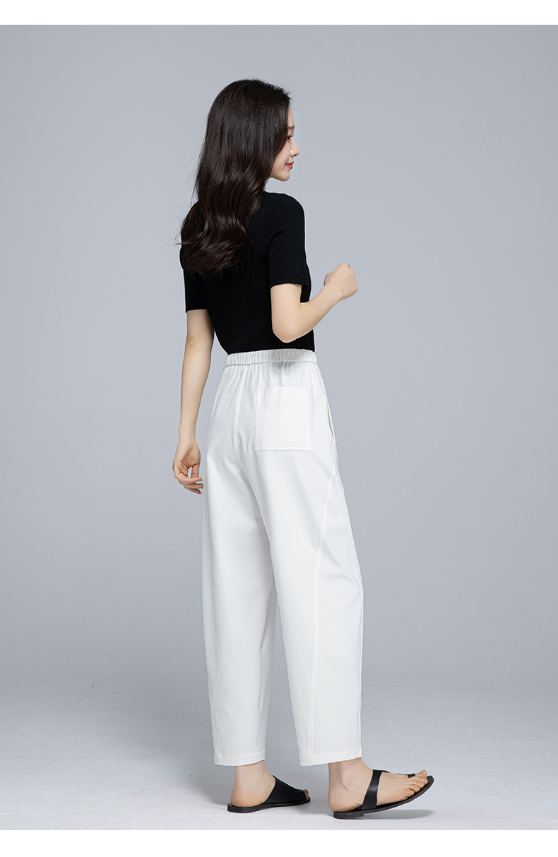 鑫閣チベット青カジュアルパンツ女2024新作夏の白いひもがカジュアルな9分のおばあさんのズボンの風船のズボンを緩めます。