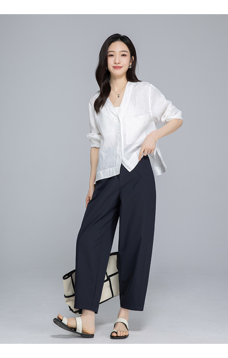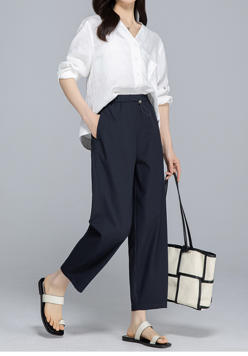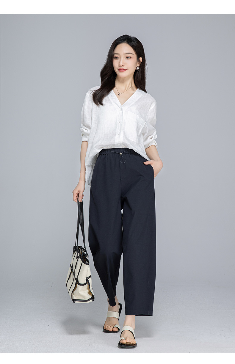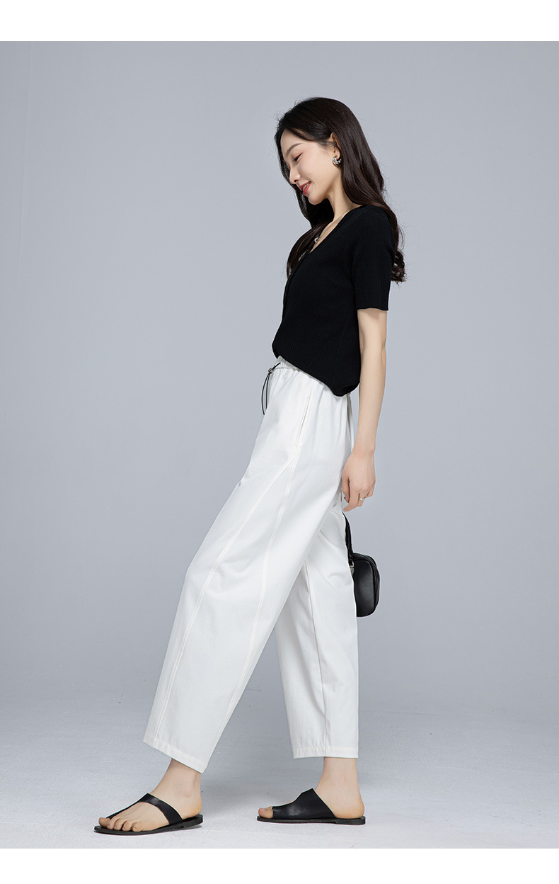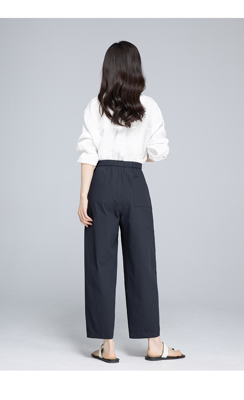鑫閣チベット青カジュアルパンツ女2024新作夏の白いひもがカジュアルな9分のおばあさんのズボンの風船のズボンを緩めます。