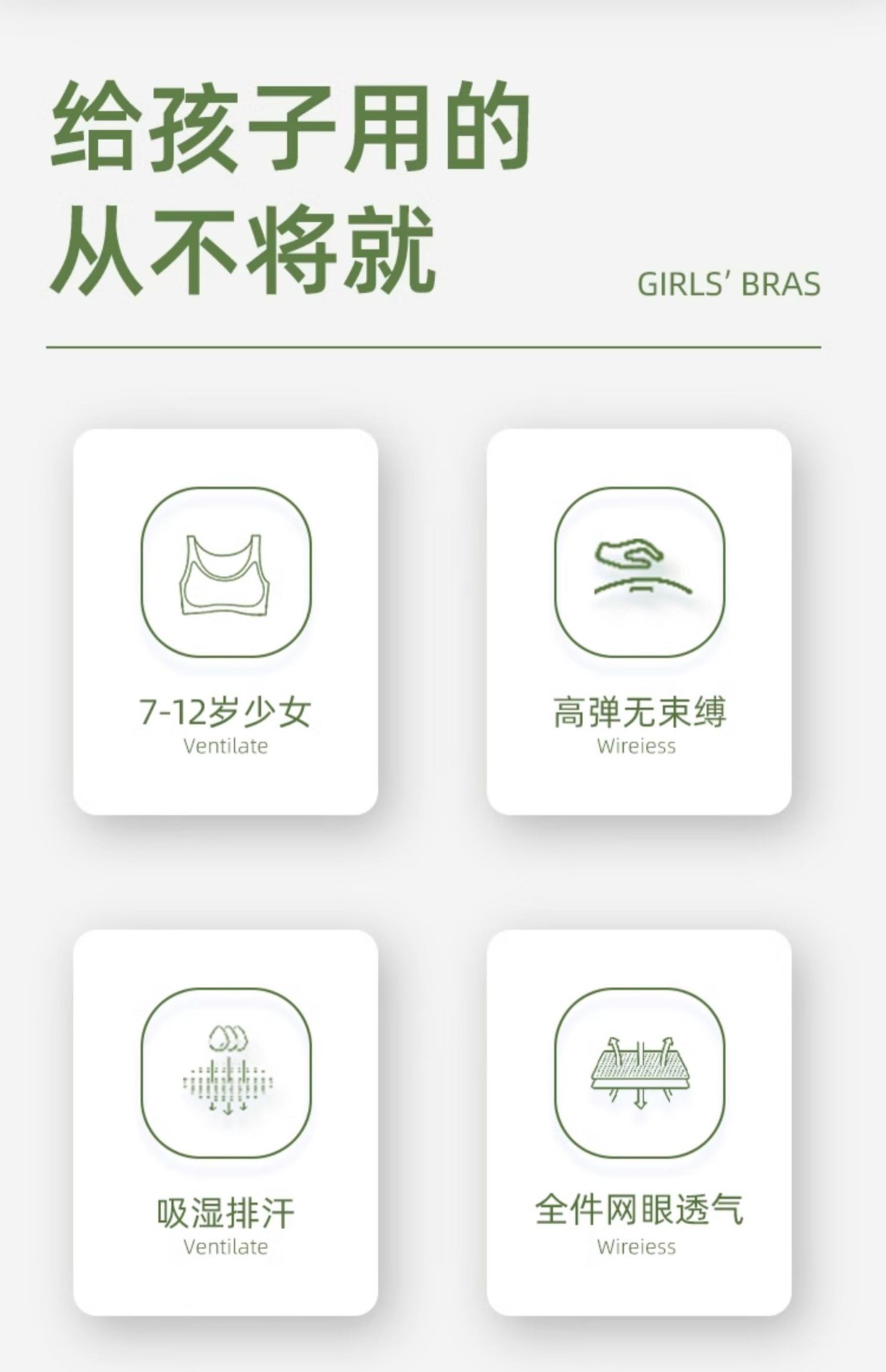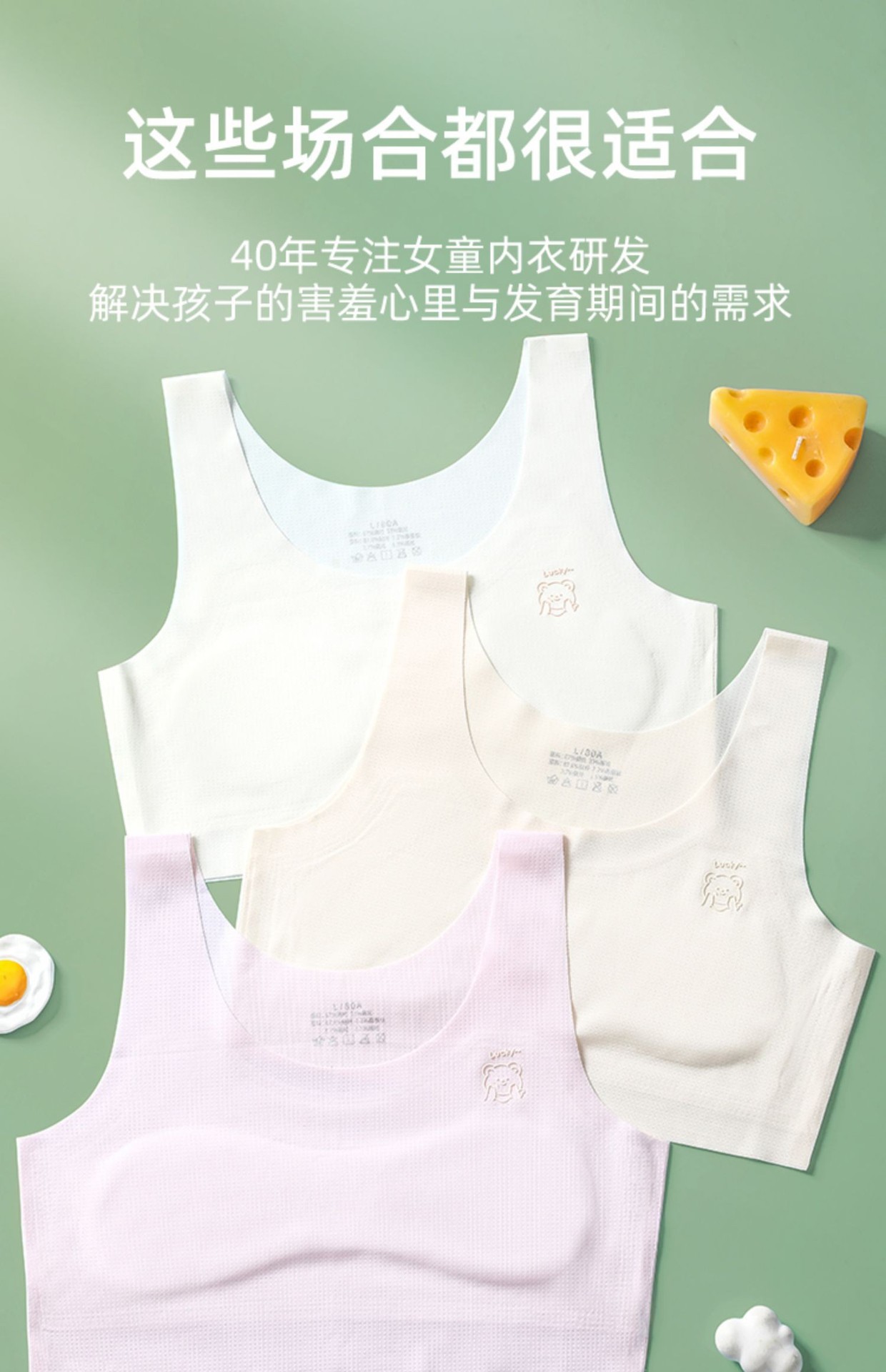 女の子の下着の発育期の12歳の薄いタイプの8-14歳の小学生の子供の10女の子の第1段階の小さいベスト