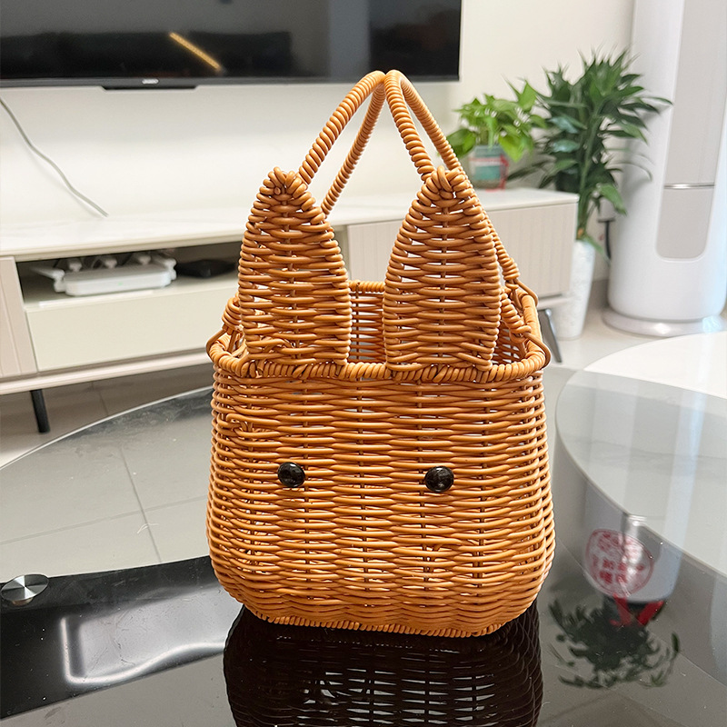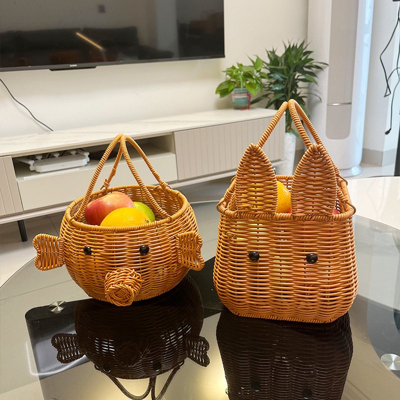 藤の工芸の新型の円形の手提げのウサギのブタのかごの手作りの編み物のかごのおもちゃの野菜の果物の収納かご