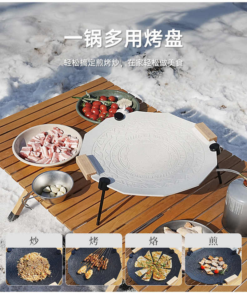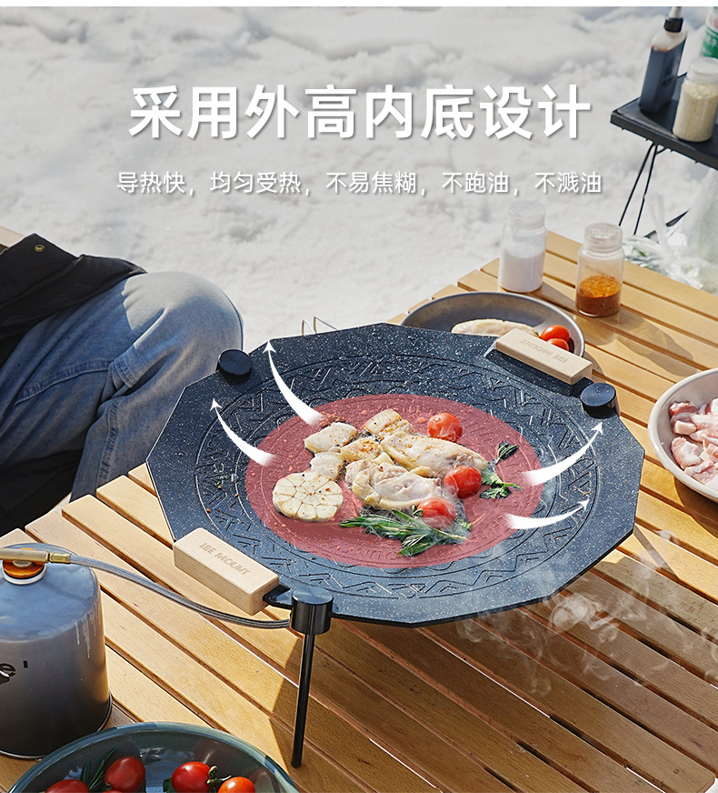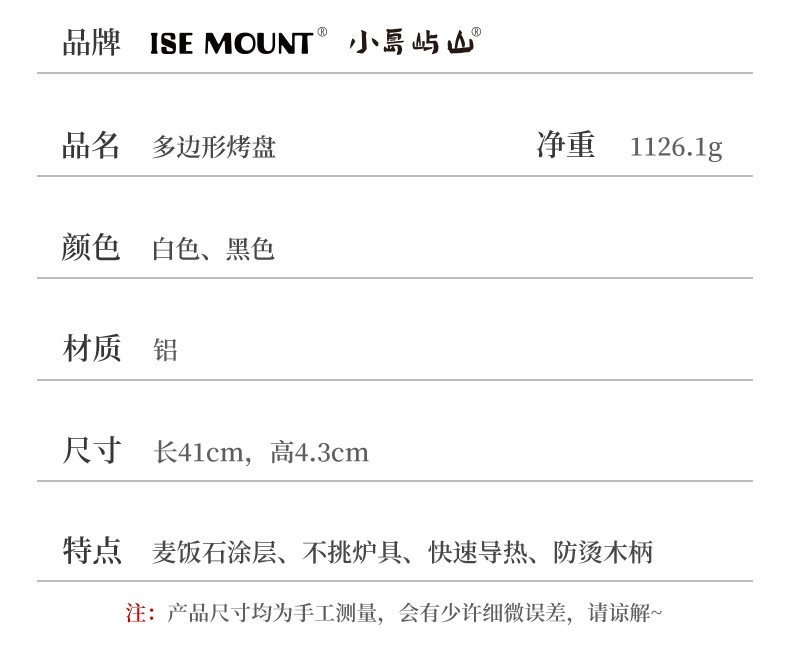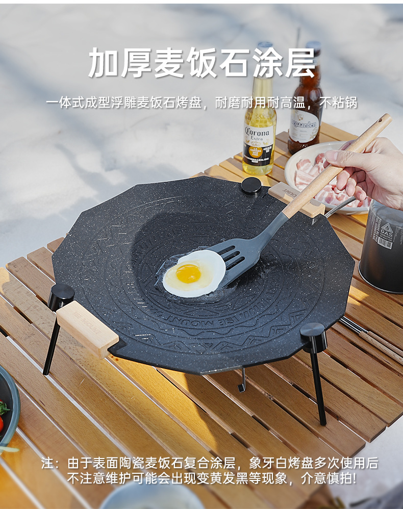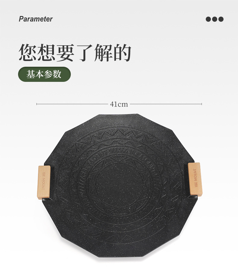 ISE MOUNT屋外麦飯石多角形焼肉皿厚さコーティング41cm多機能鍋焼き皿