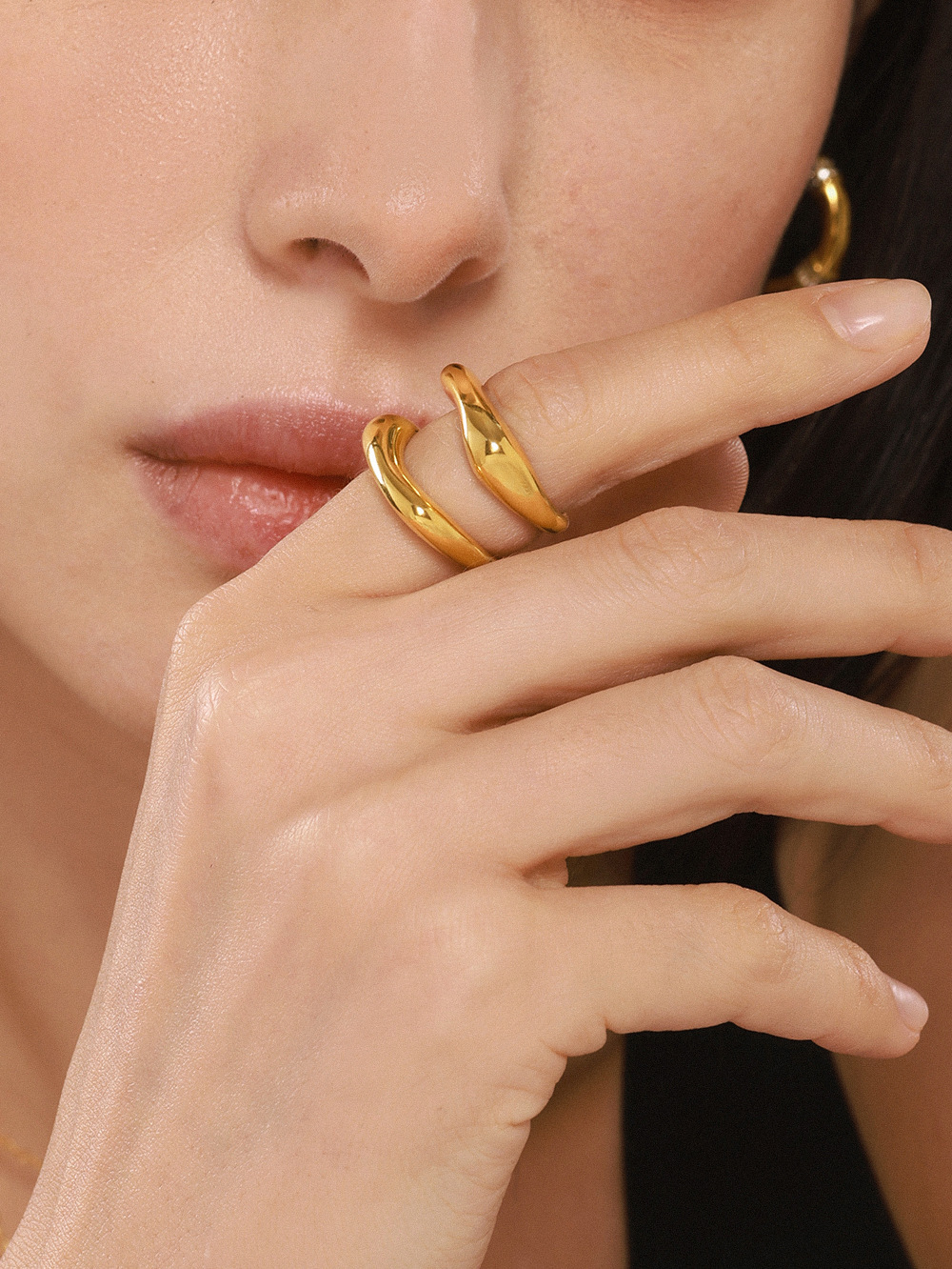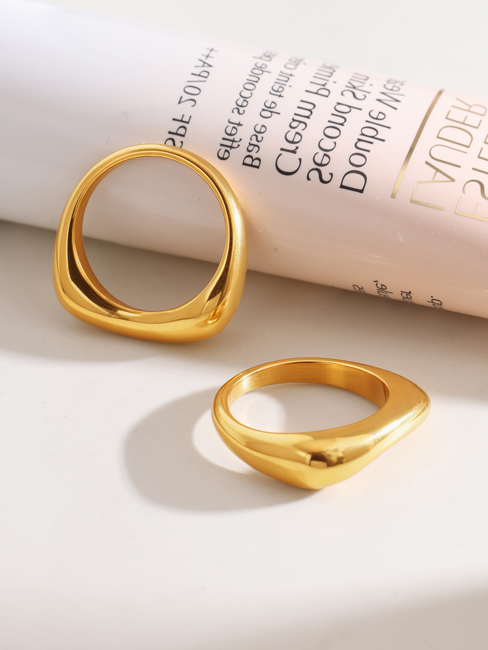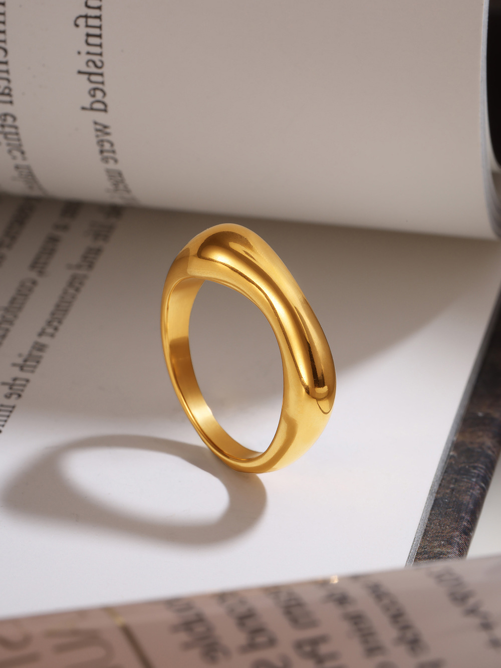 鑫芸鑫ins国境を越えたステンレス材質の幾何学的不規則な指輪の女性は18k金をメッキして色を落とさない指輪卸売りをしている
