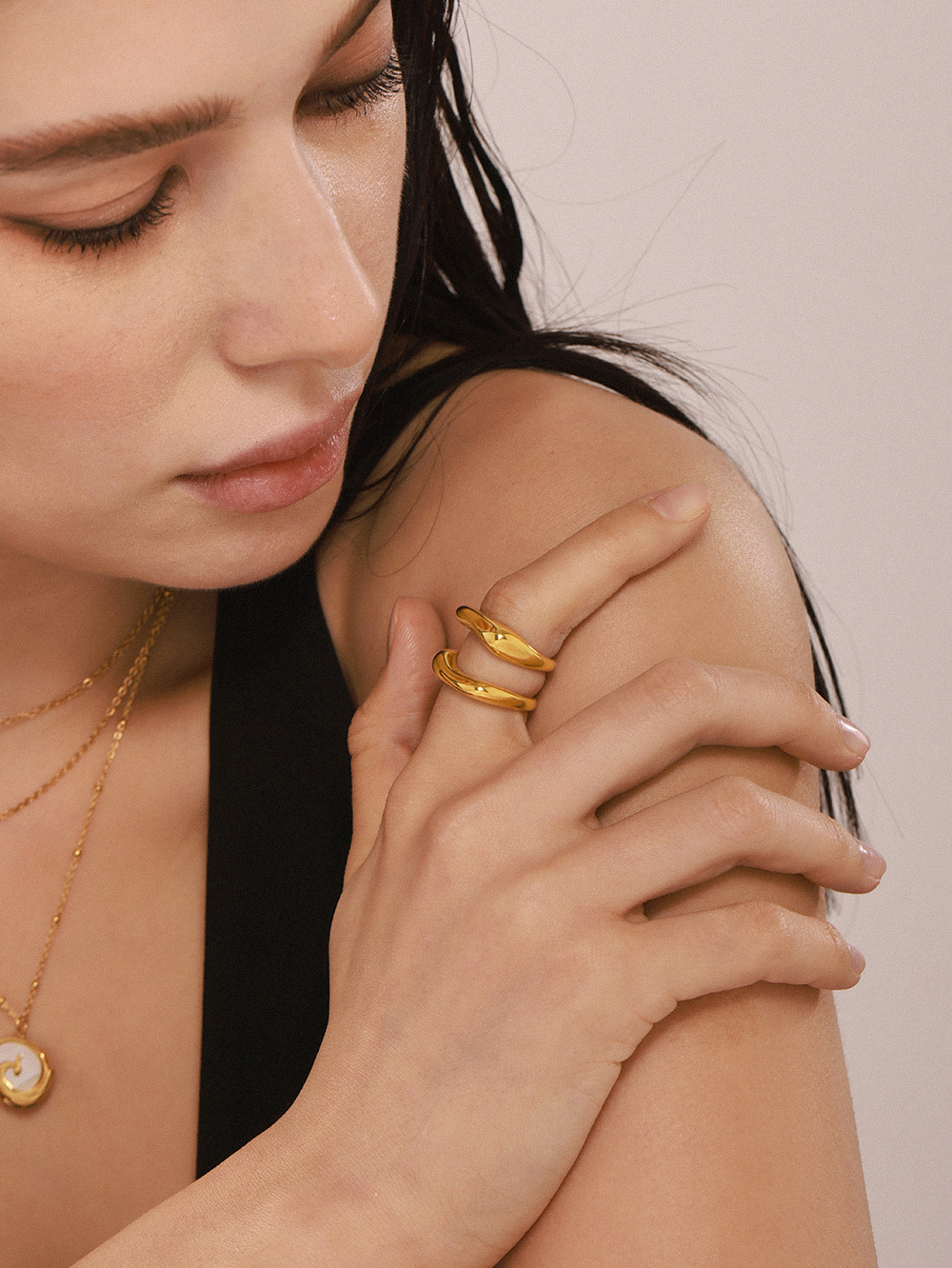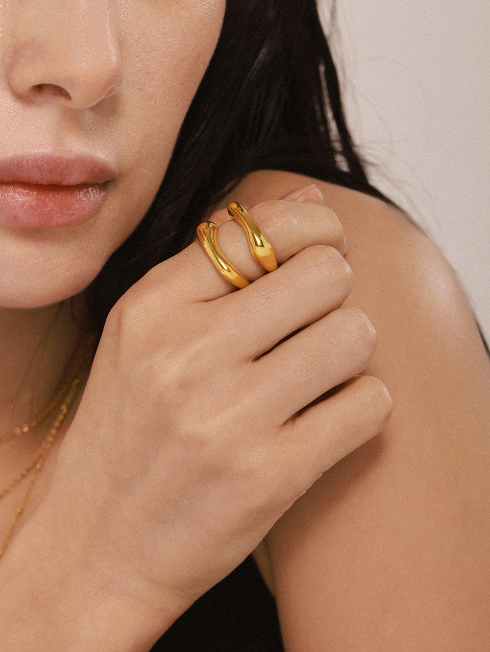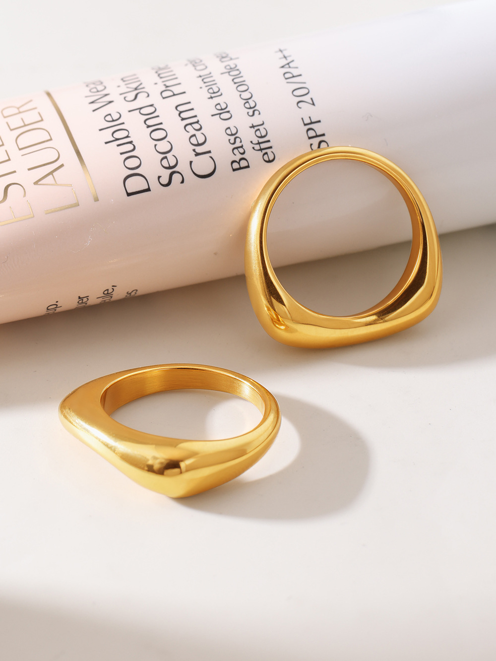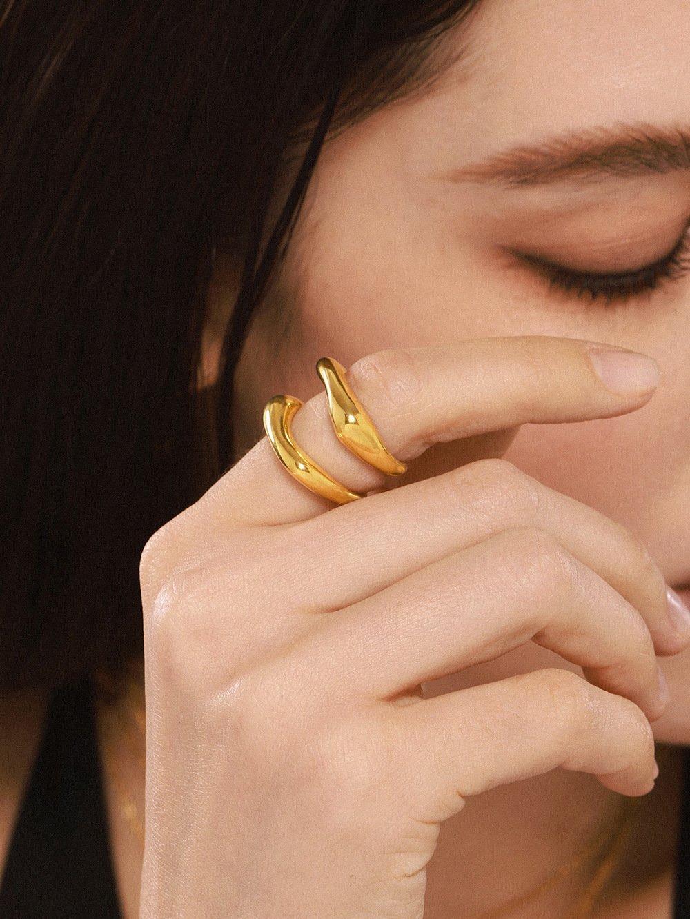 鑫芸鑫ins国境を越えたステンレス材質の幾何学的不規則な指輪の女性は18k金をメッキして色を落とさない指輪卸売りをしている
